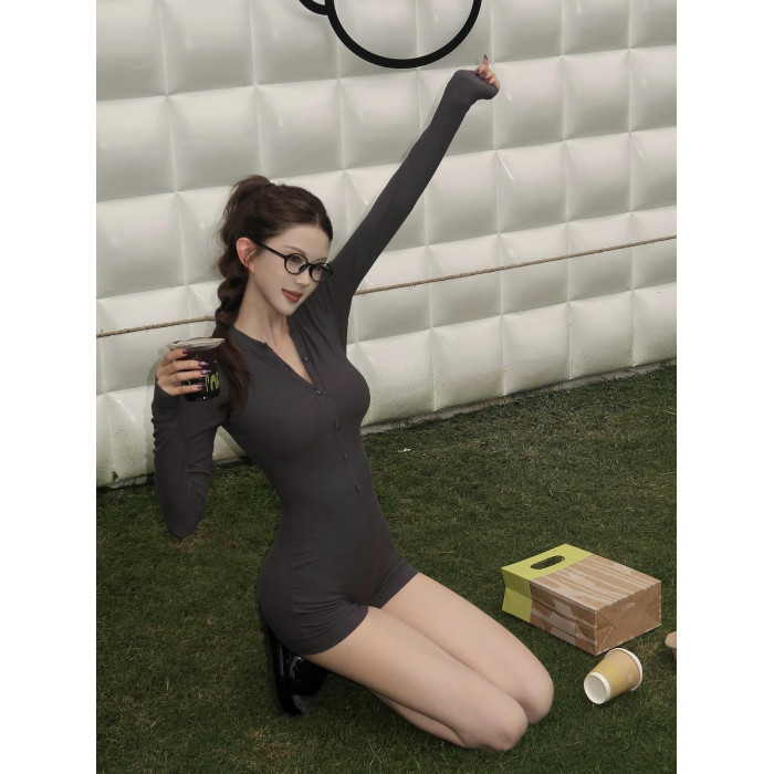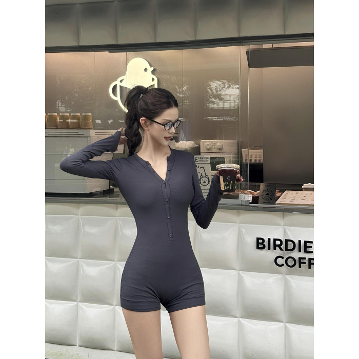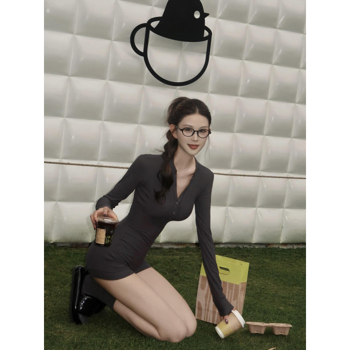歐美辣妹風休閒運動長袖連體衣女2025新款性感修身包臀連身短褲