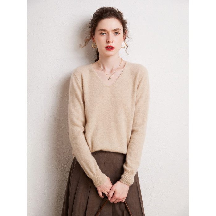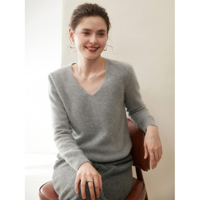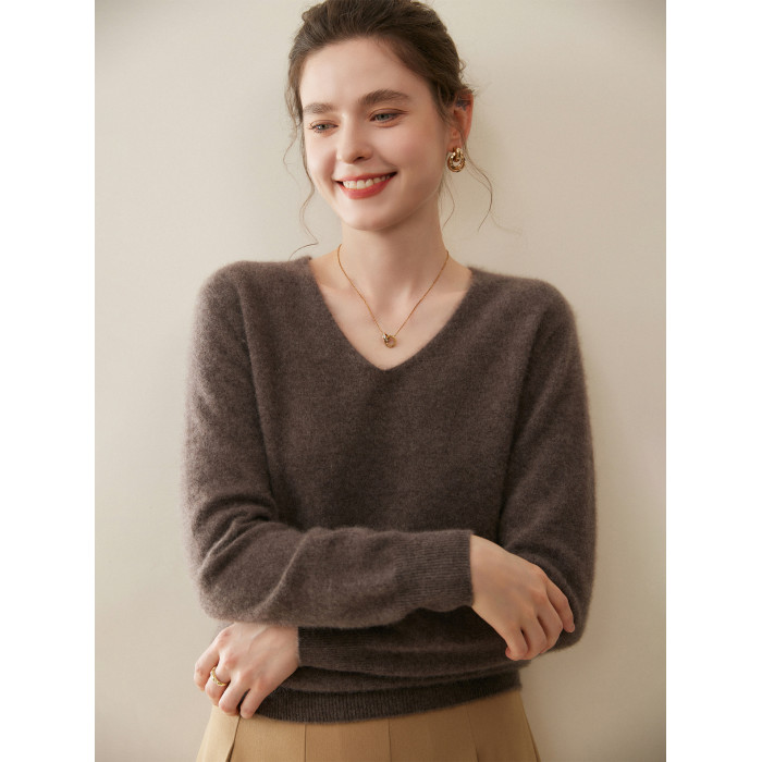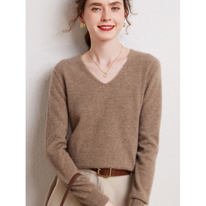 爆款~無縫一體100%純山羊絨衫女v領毛衣套頭秋冬季寬松針織打底衫