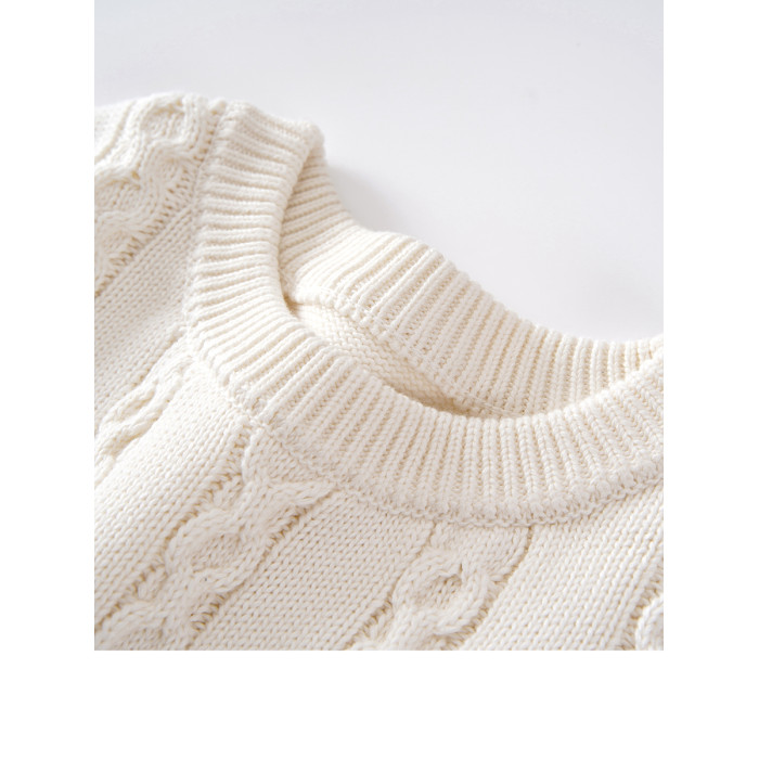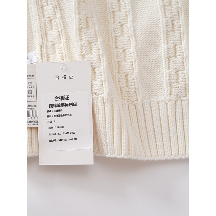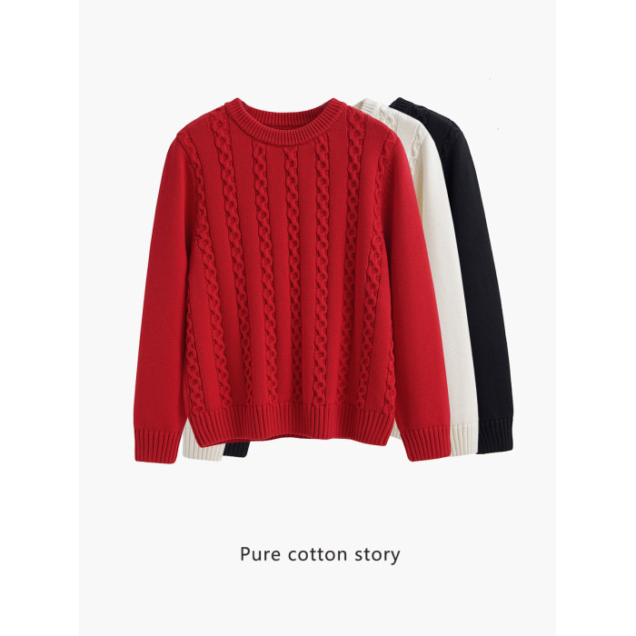 粗線厚款 100%棉 圓領麻花毛衣女士打底衫套頭針織衫寬松 無靜電