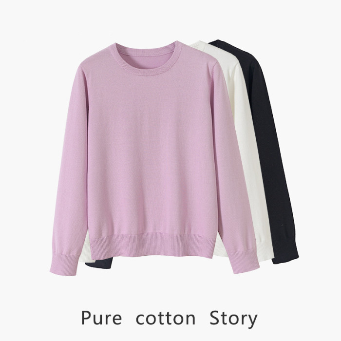 100%長絨棉 14針精紡 薄款毛衣女士打底衫春秋內搭針織衫 更舒適
