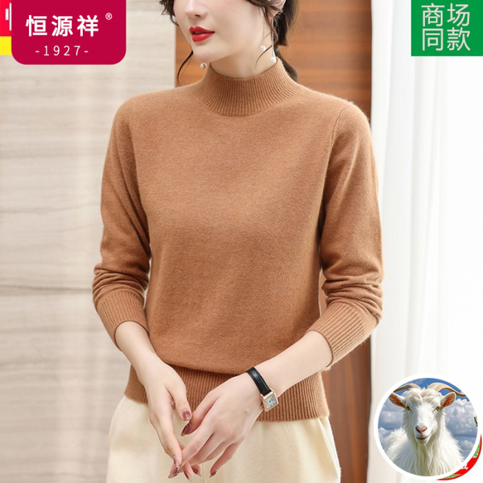 恒源祥羊毛衫女純羊毛絨衫冬季新品半高領毛衣軟糯內搭短款打底衫