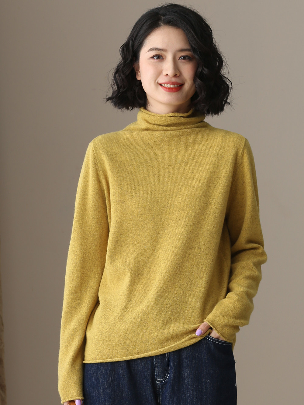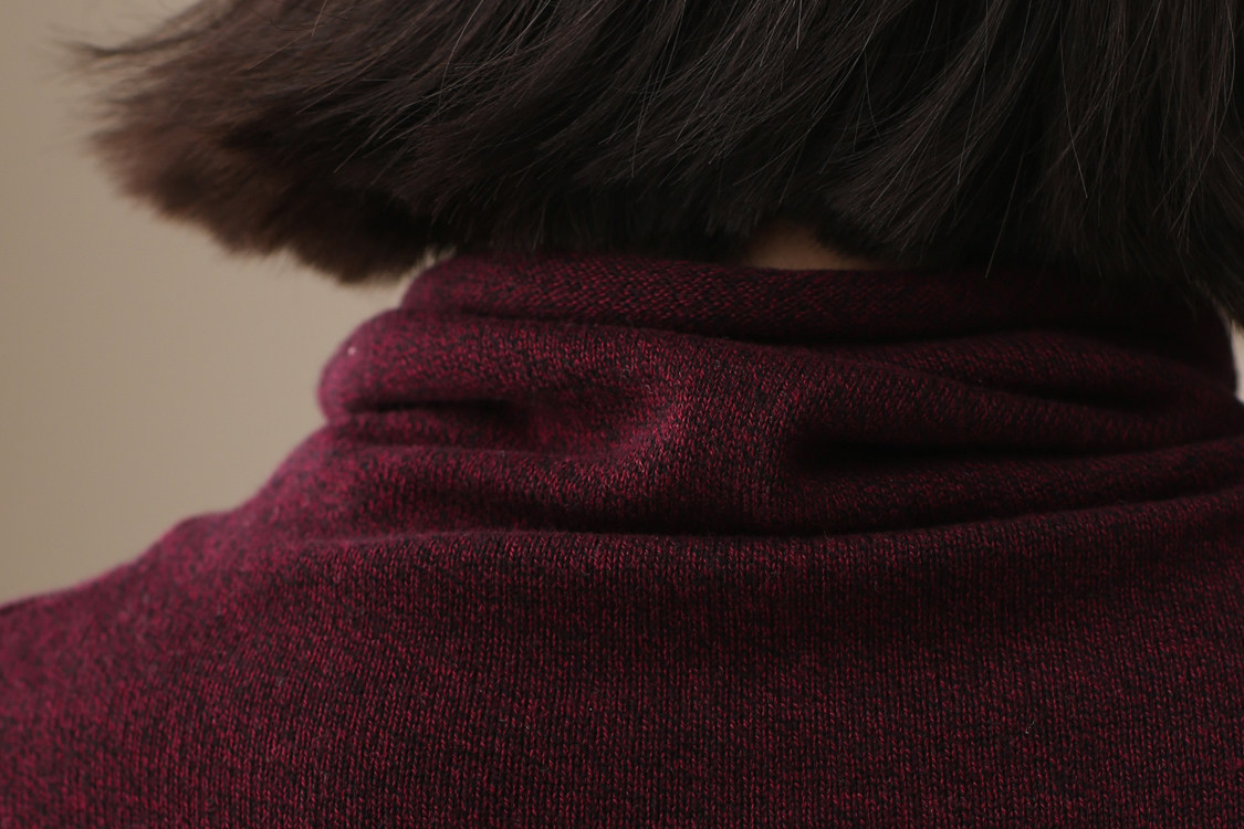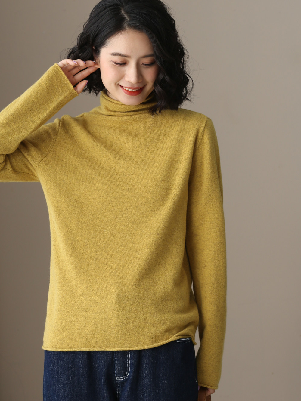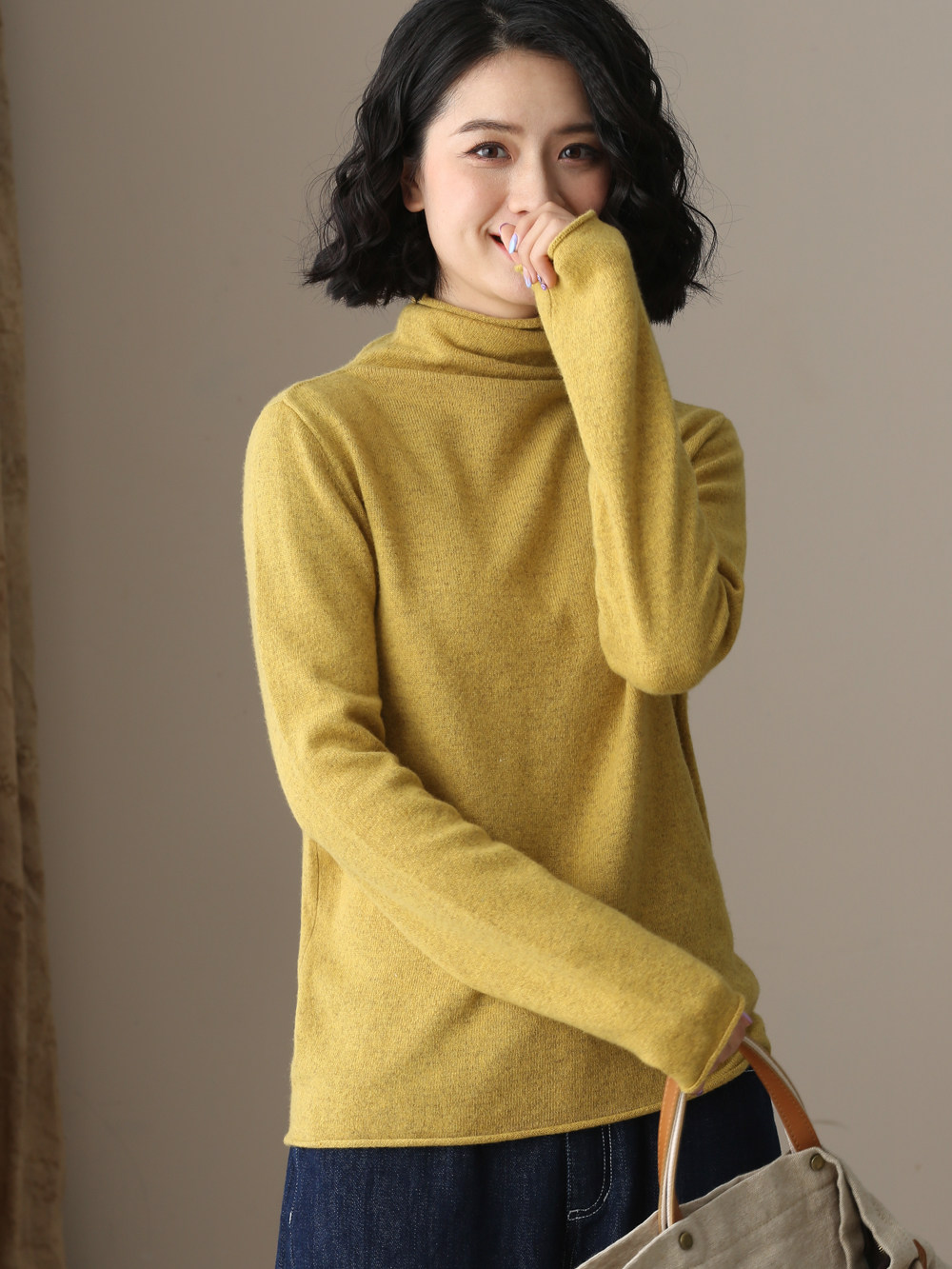 不起球 純棉針織衫女高領原創文藝寬鬆休閒打底衫堆堆領毛衣