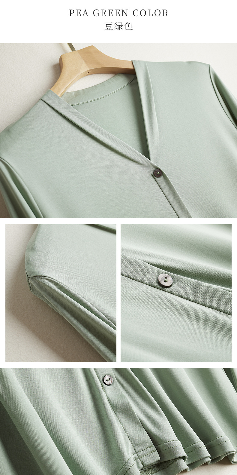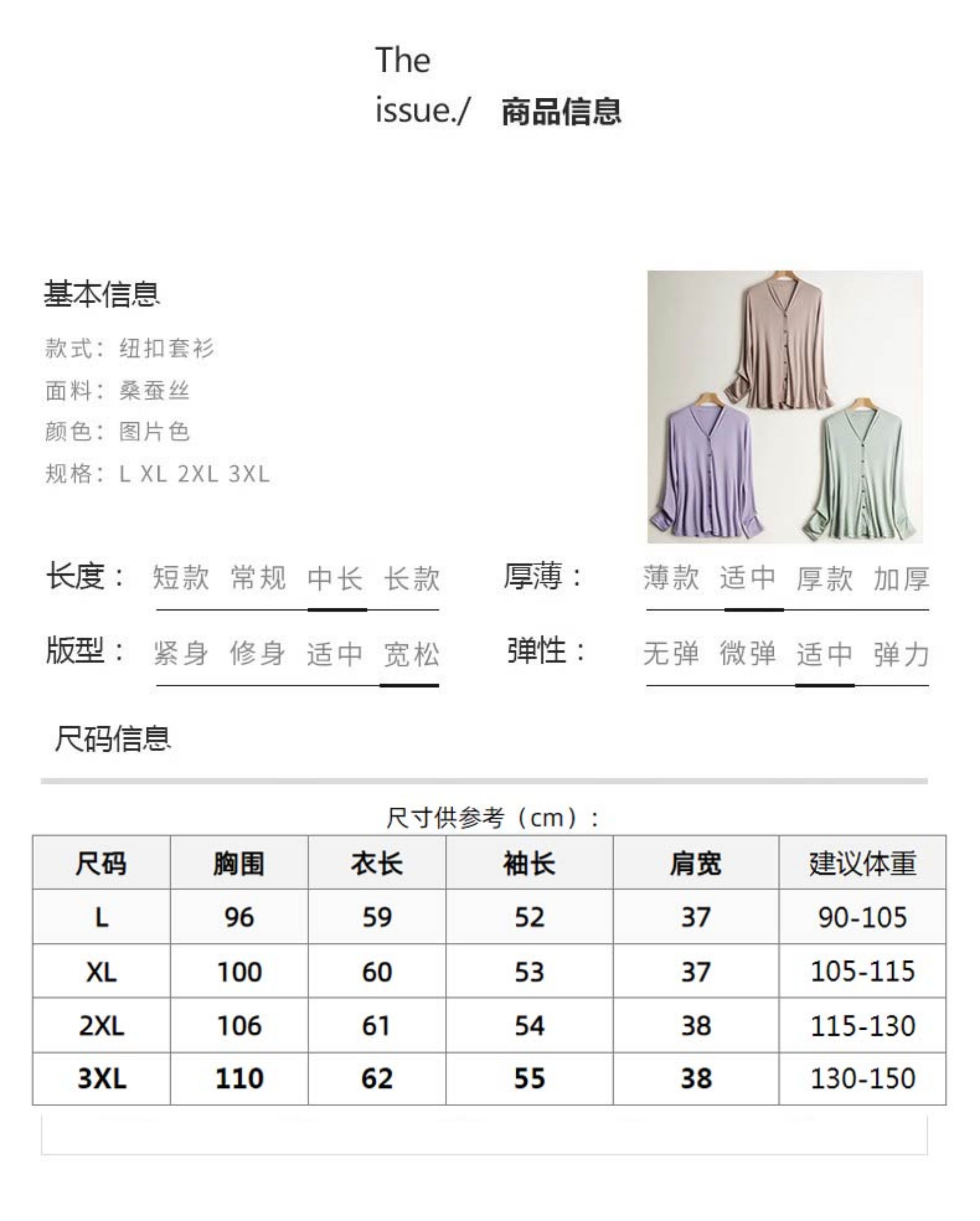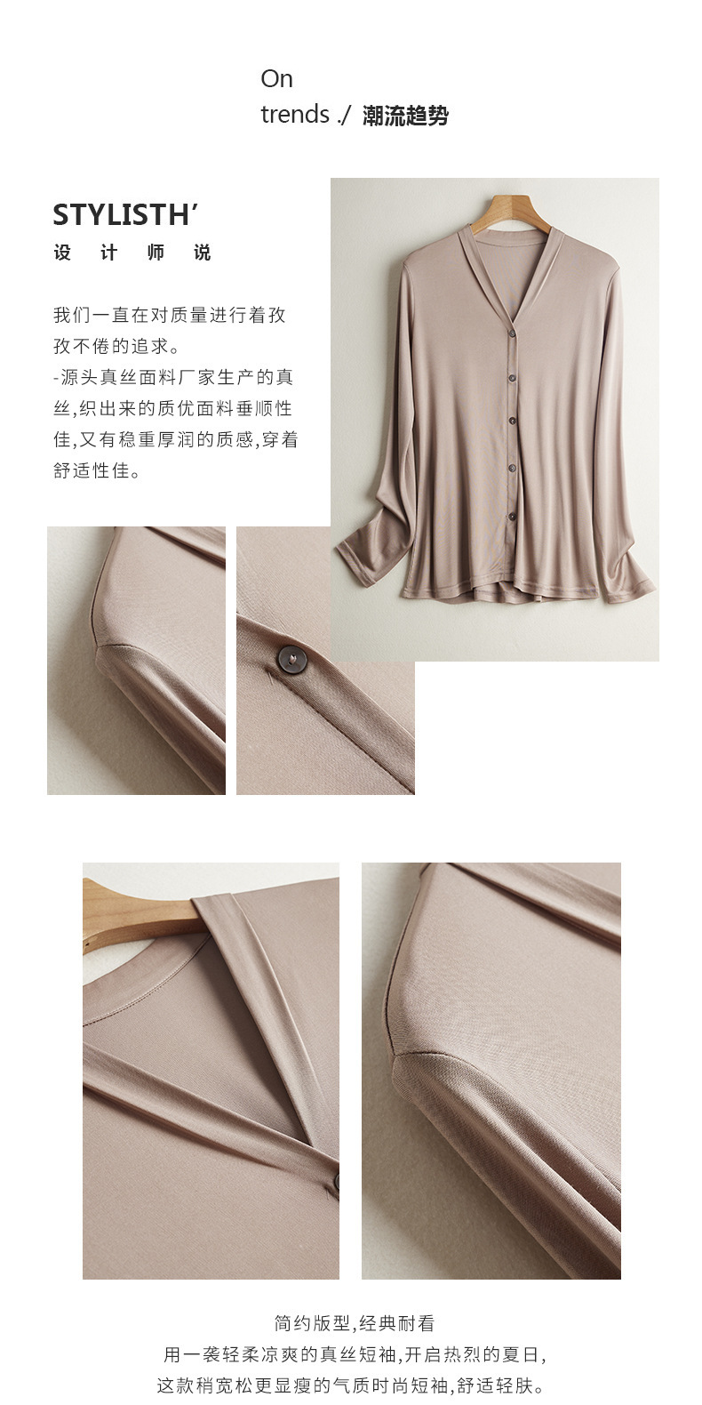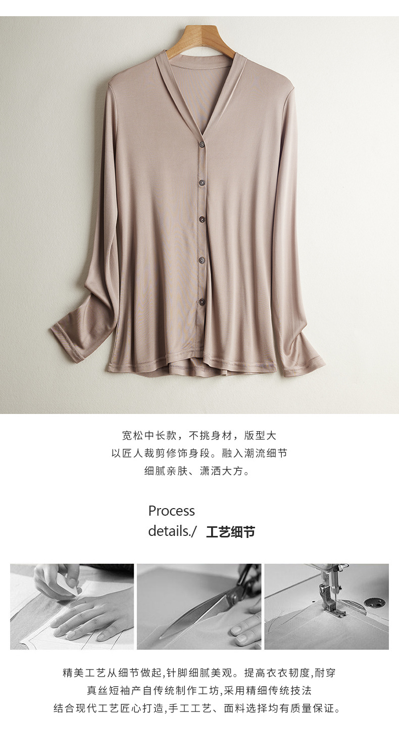 雙面針織桑蠶絲長袖打底衫黑色單排鈕釦外穿V領套頭衫真絲肌底衣