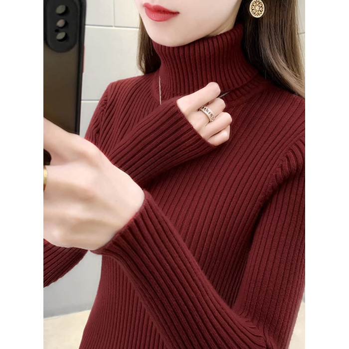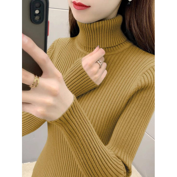 灰色高領修身長袖內搭針織打底衫女春季2025新款慵嬾加厚加絨毛衣