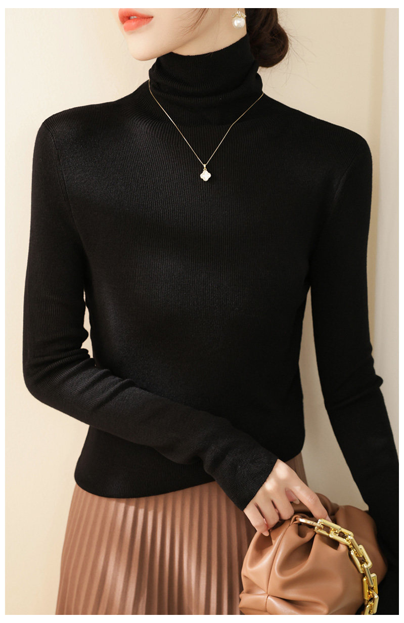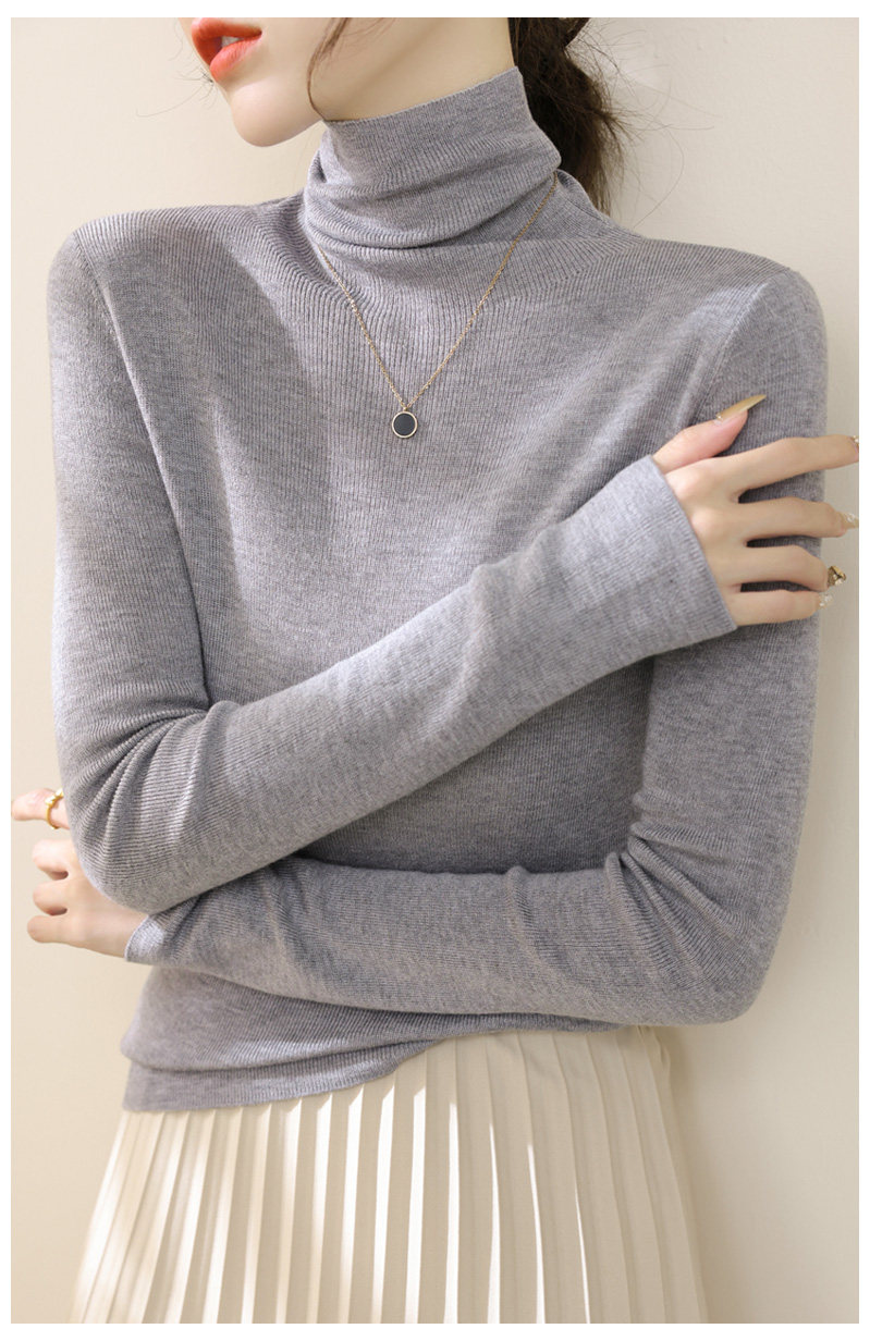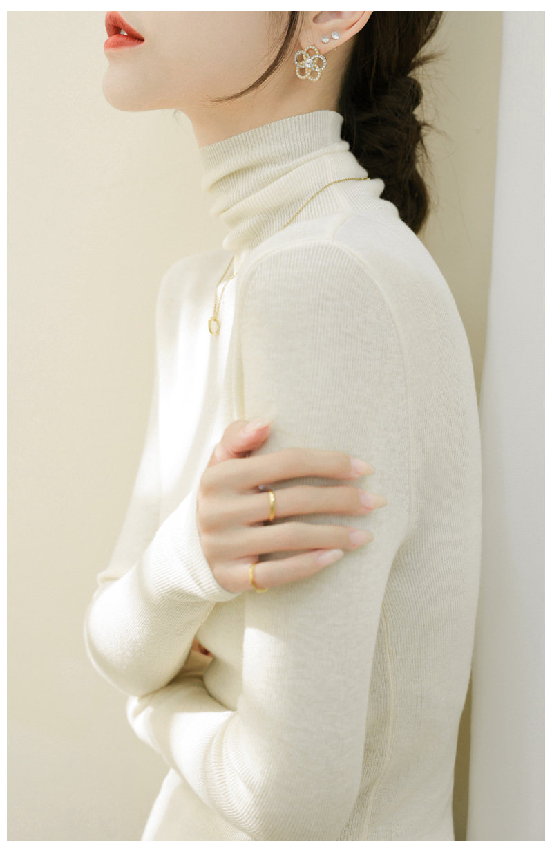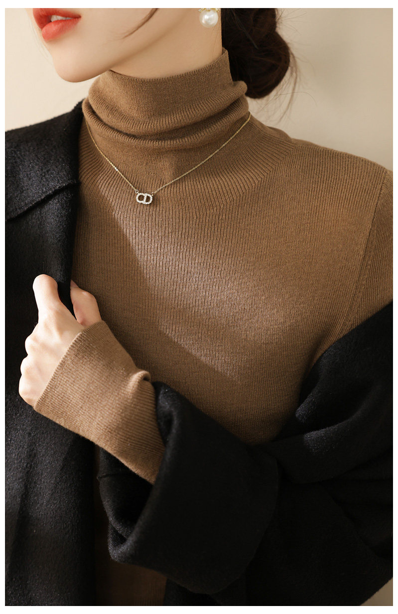高級感堆堆領內搭羊毛長袖針織打底衫女秋冬2024新款流行漂亮上衣