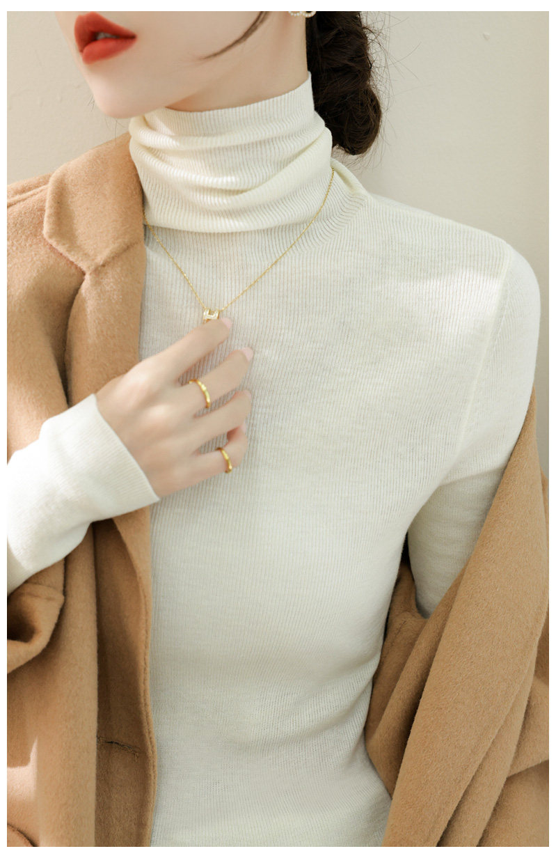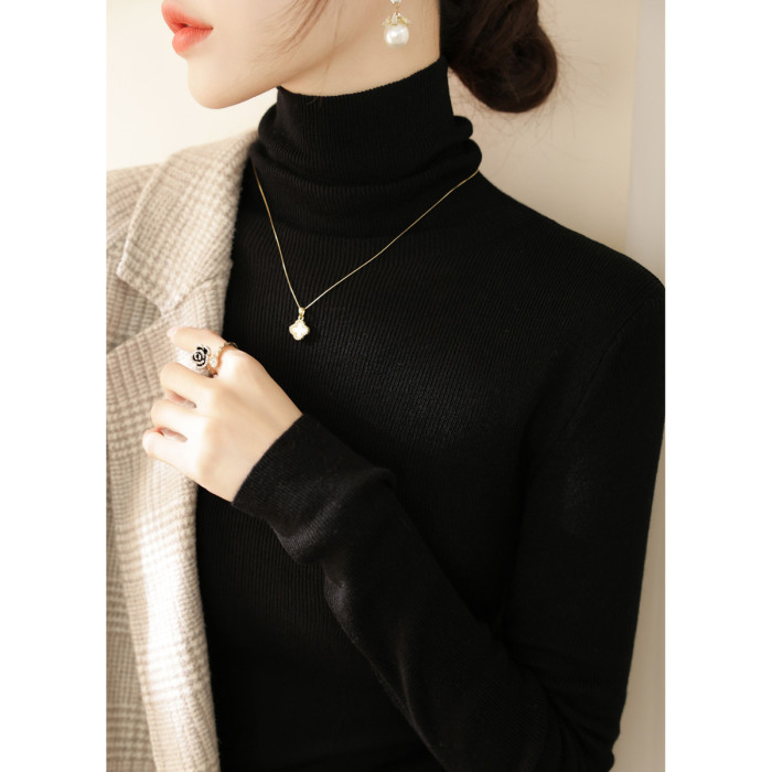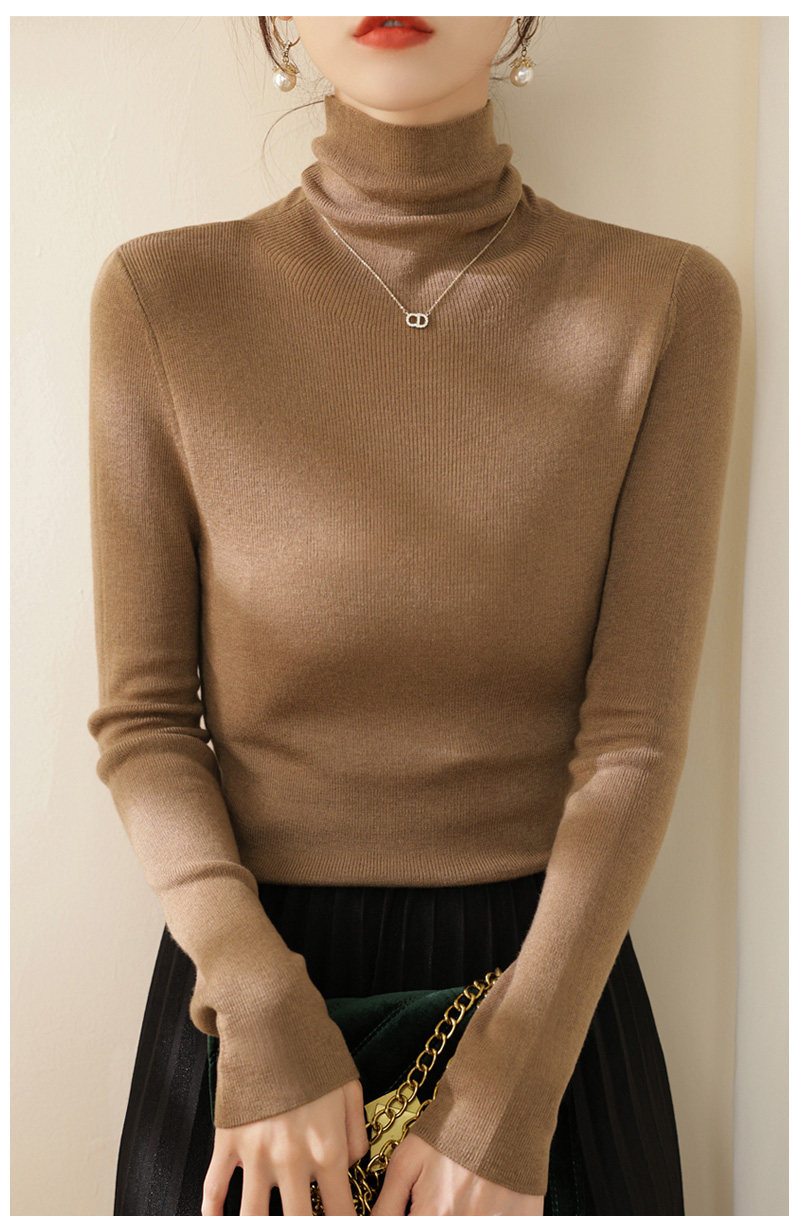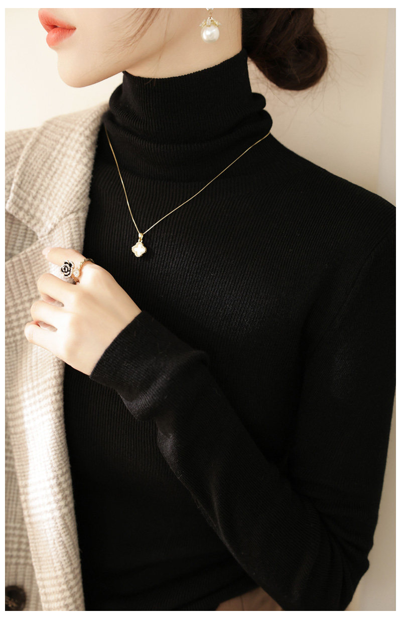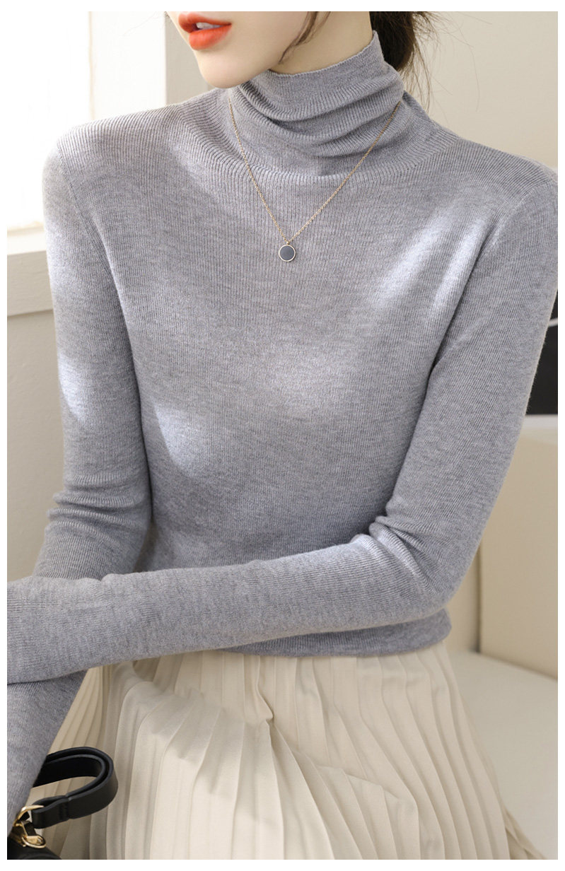 高級感堆堆領內搭羊毛長袖針織打底衫女秋冬2024新款流行漂亮上衣