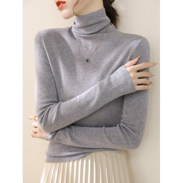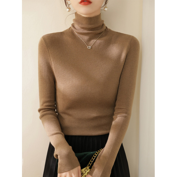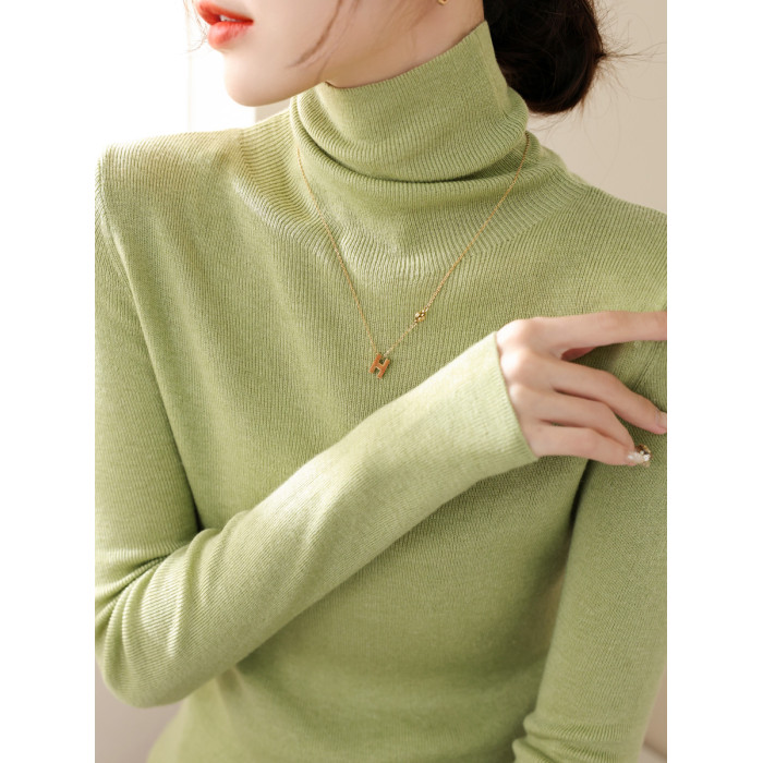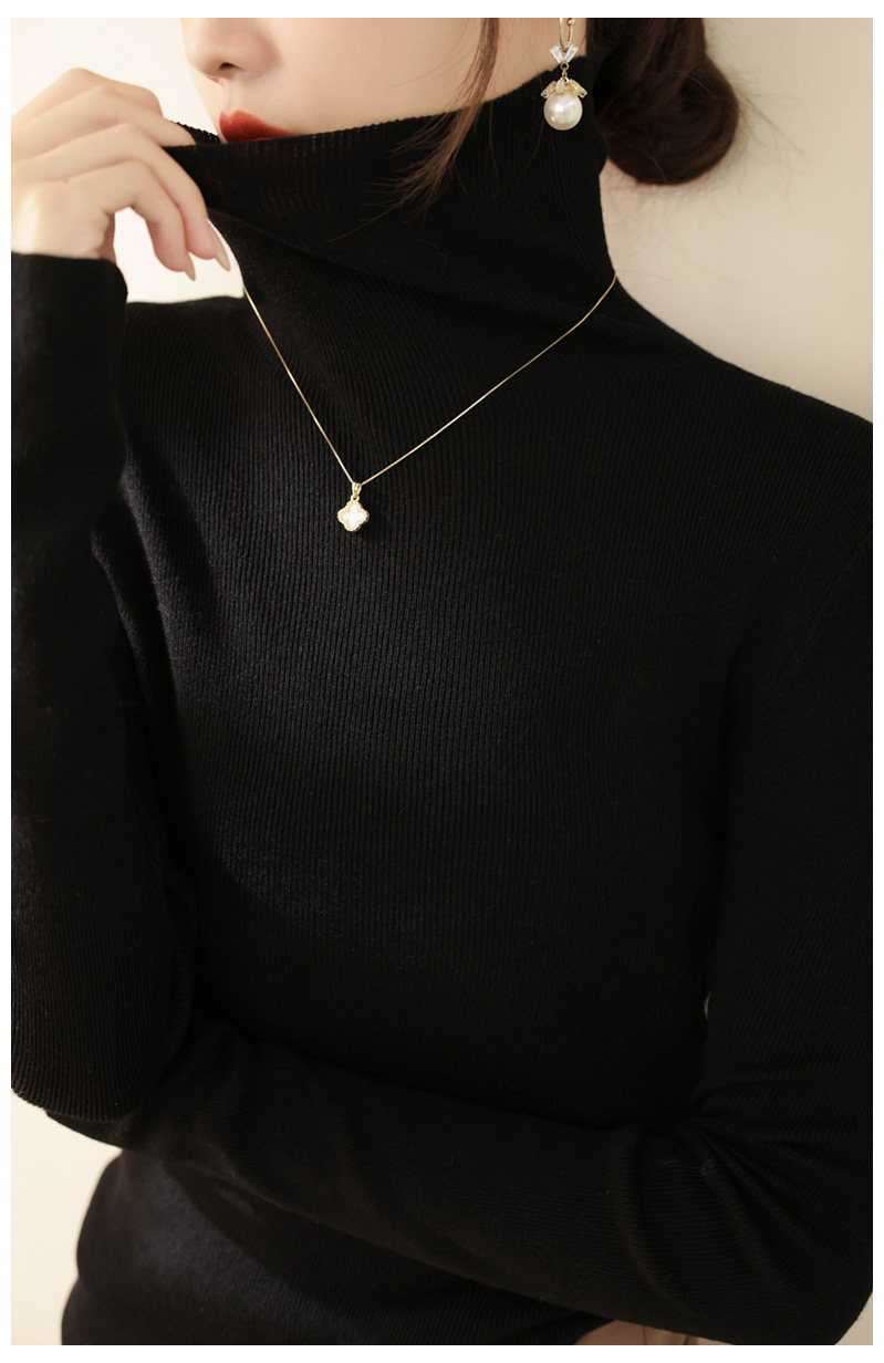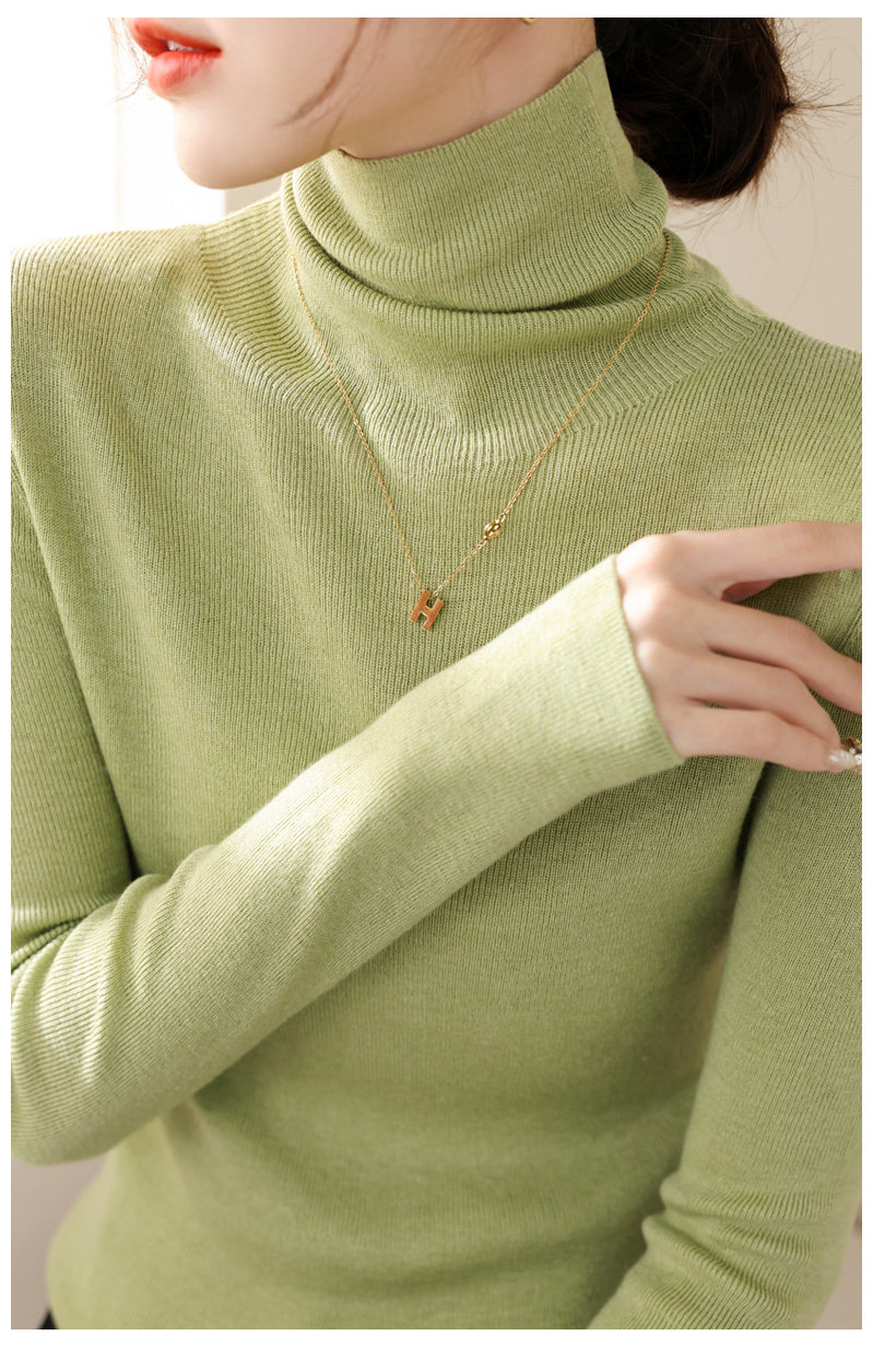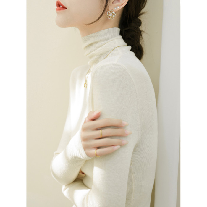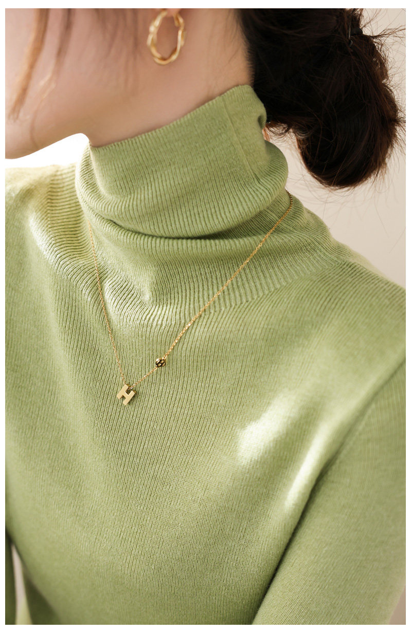 高級感堆堆領內搭羊毛長袖針織打底衫女秋冬2024新款流行漂亮上衣