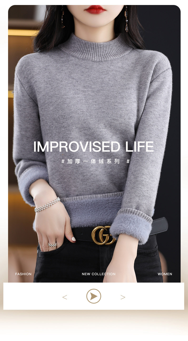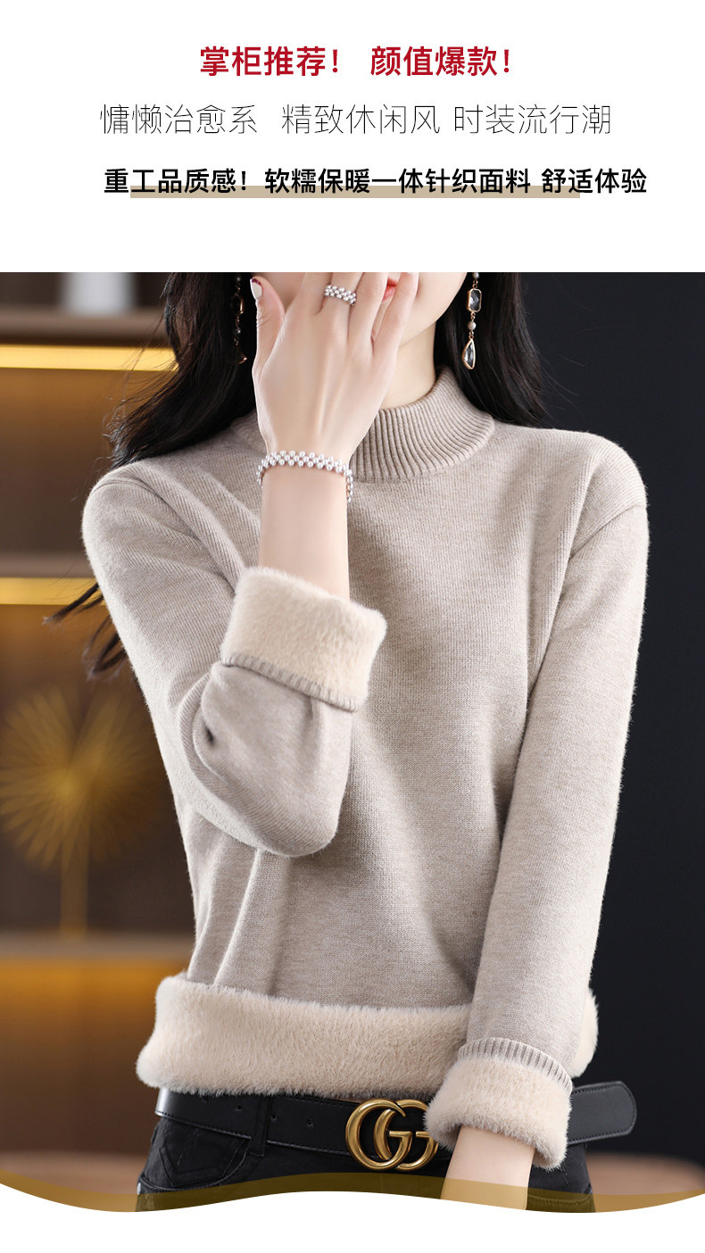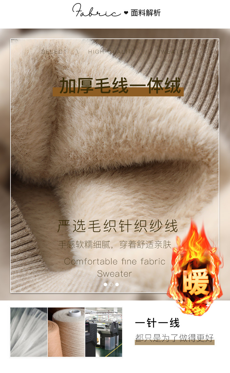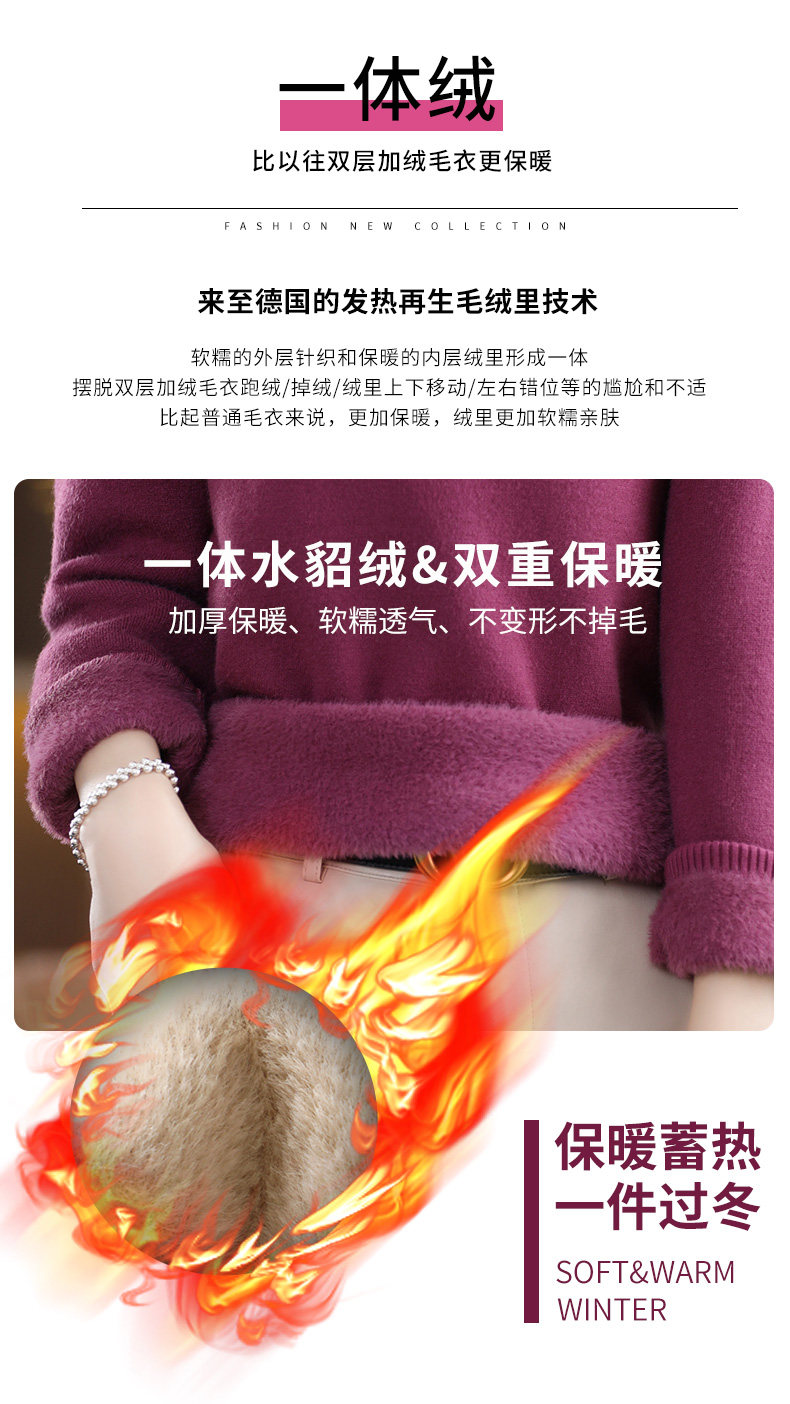 恒源祥彩羊一體絨加絨加厚毛衣女冬季半高領羊毛衫針織保暖打底衫