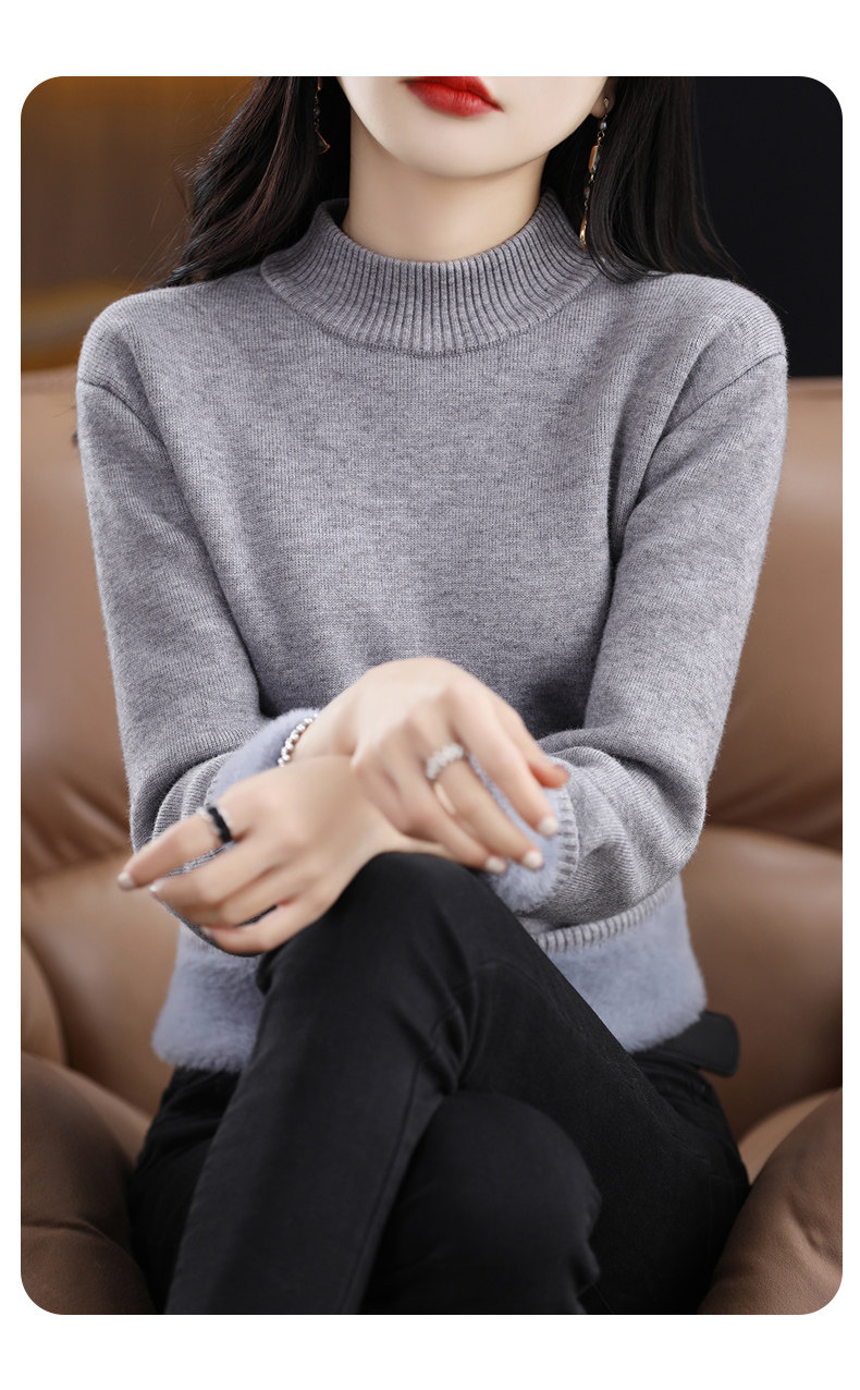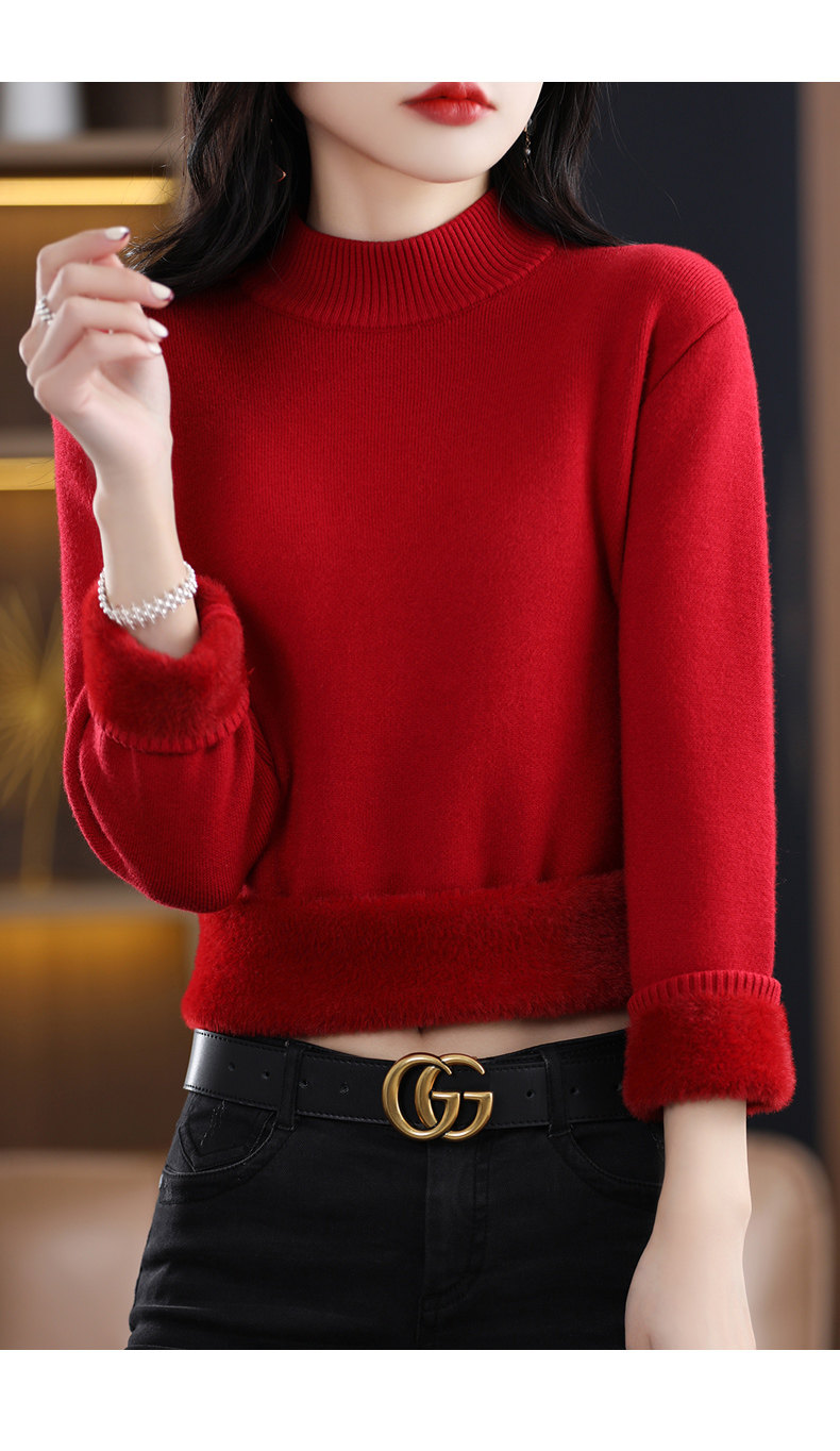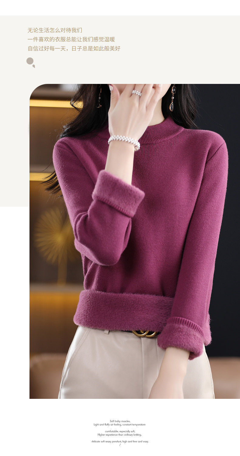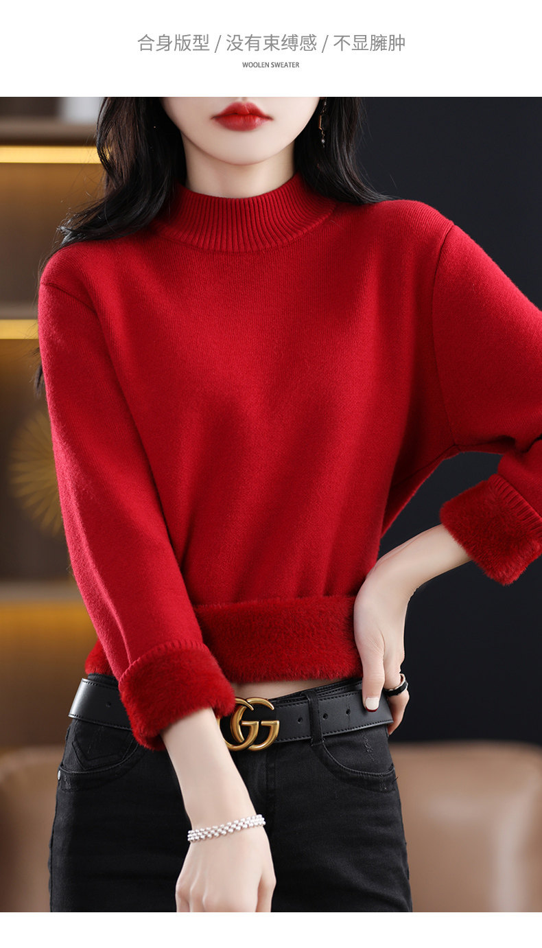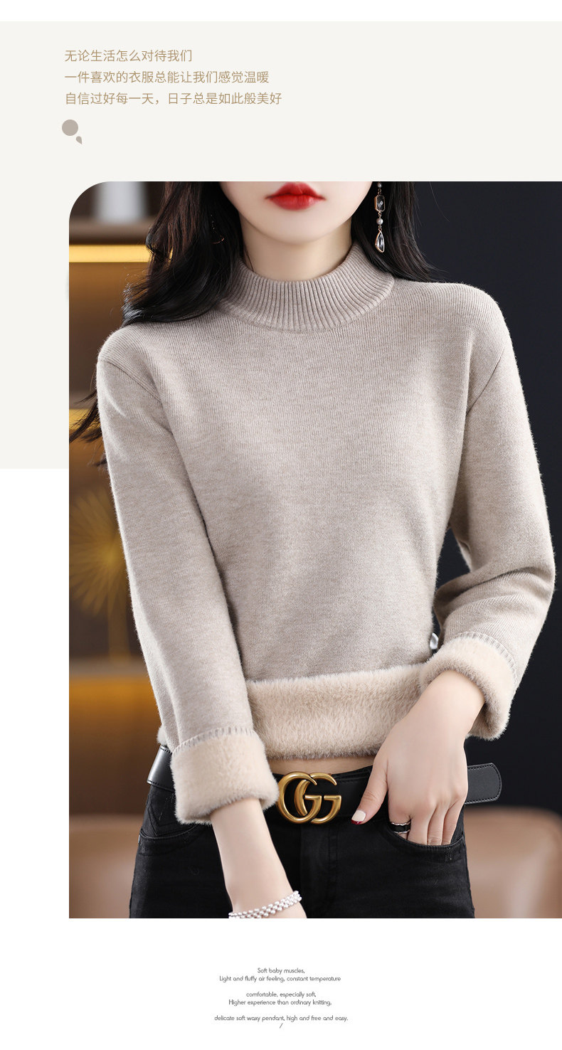 恒源祥彩羊一體絨加絨加厚毛衣女冬季半高領羊毛衫針織保暖打底衫