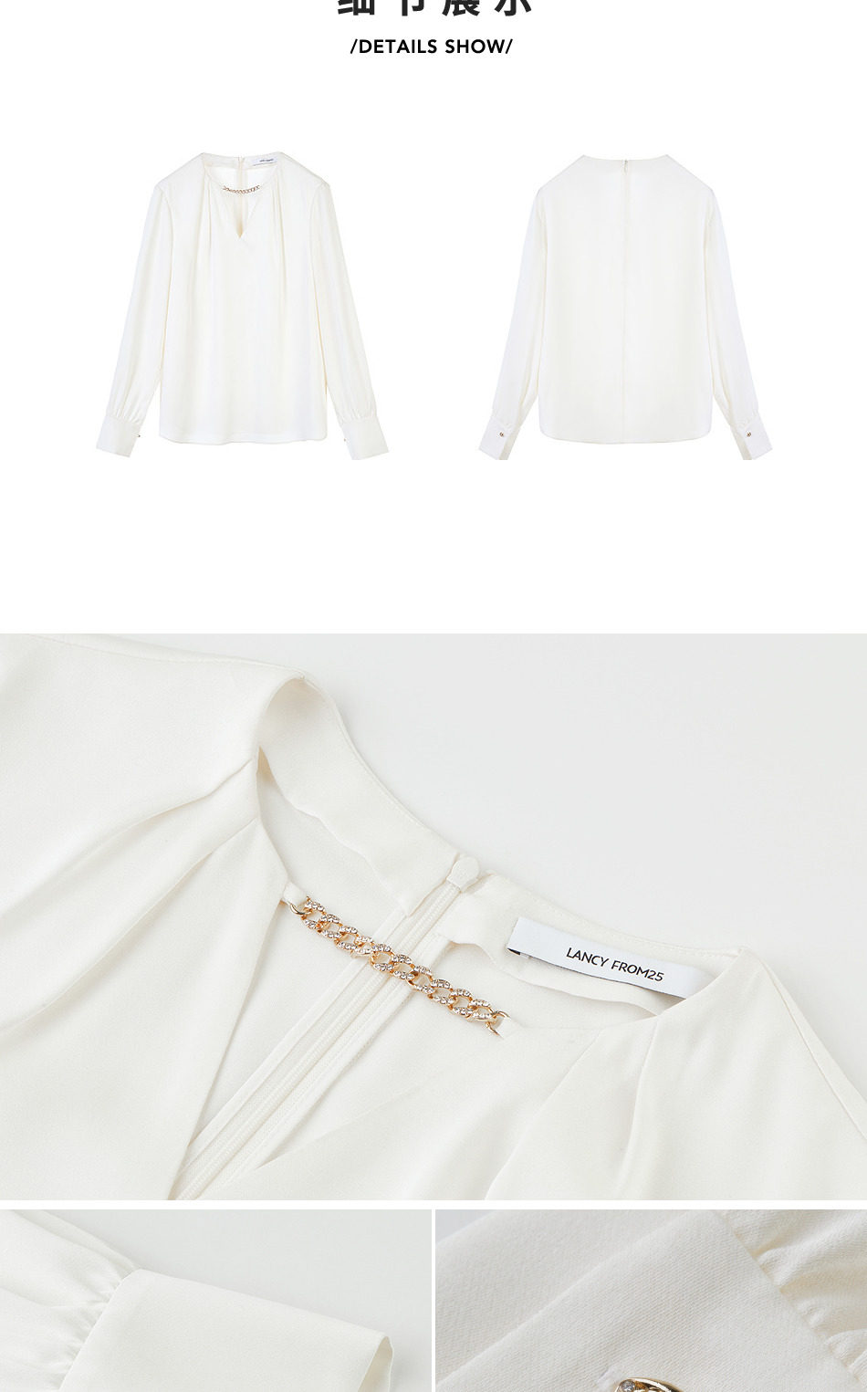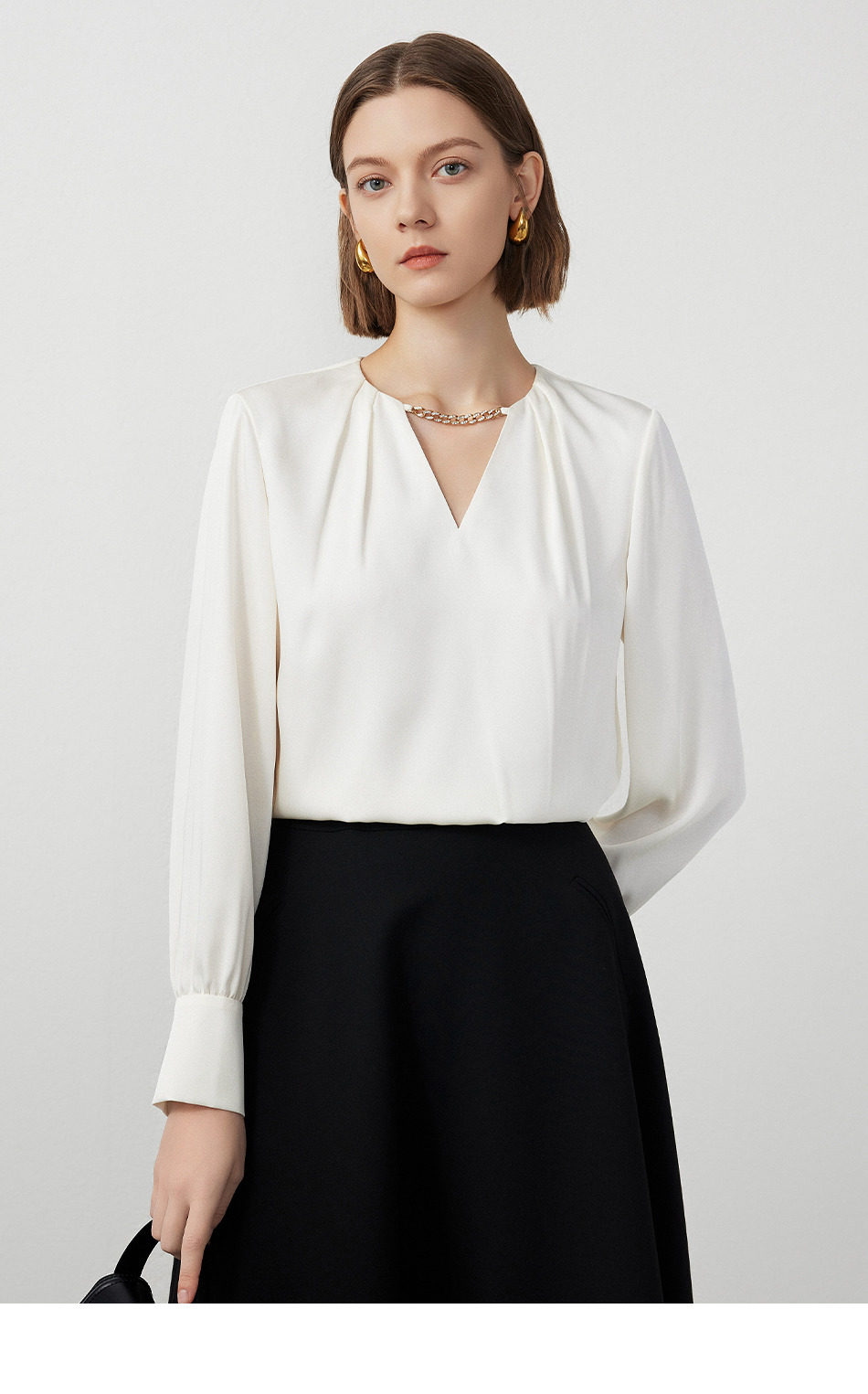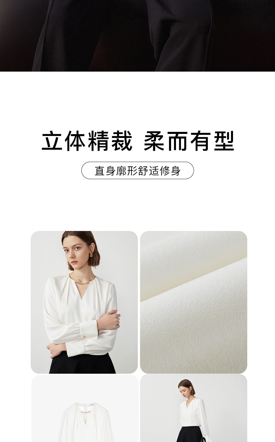 朗姿v領長袖上衣女襯衣氣質通勤高級感2024年春新款法式時尚襯衫