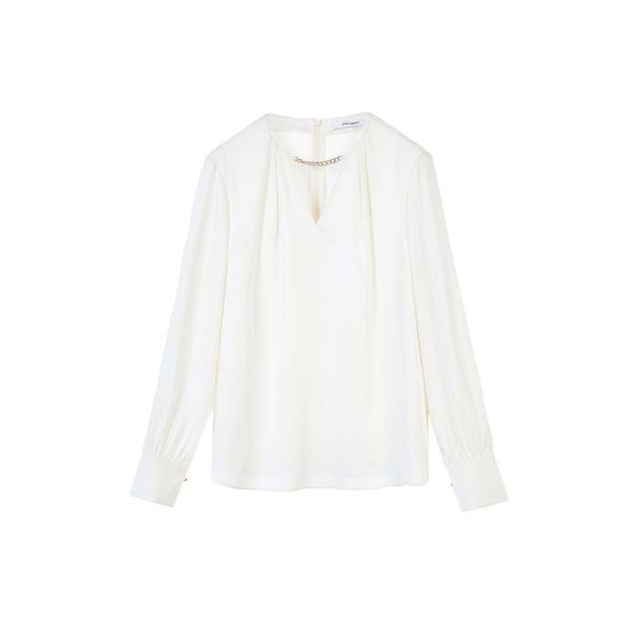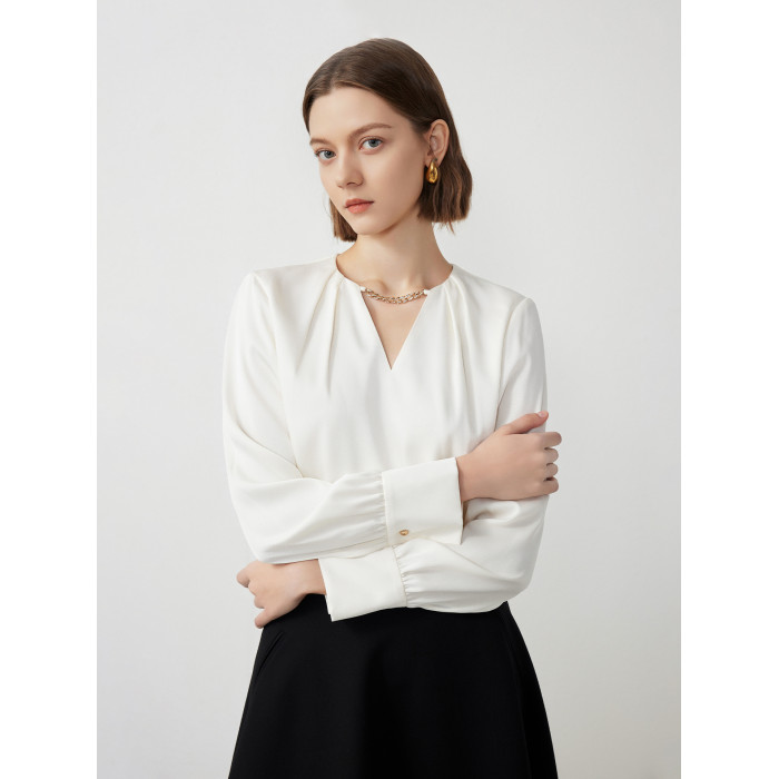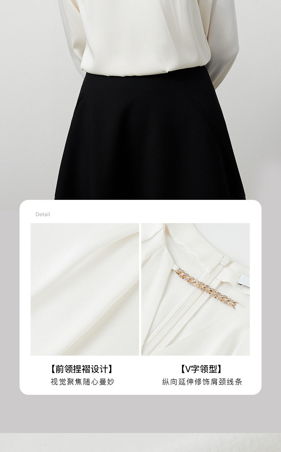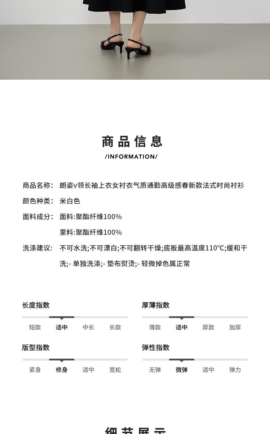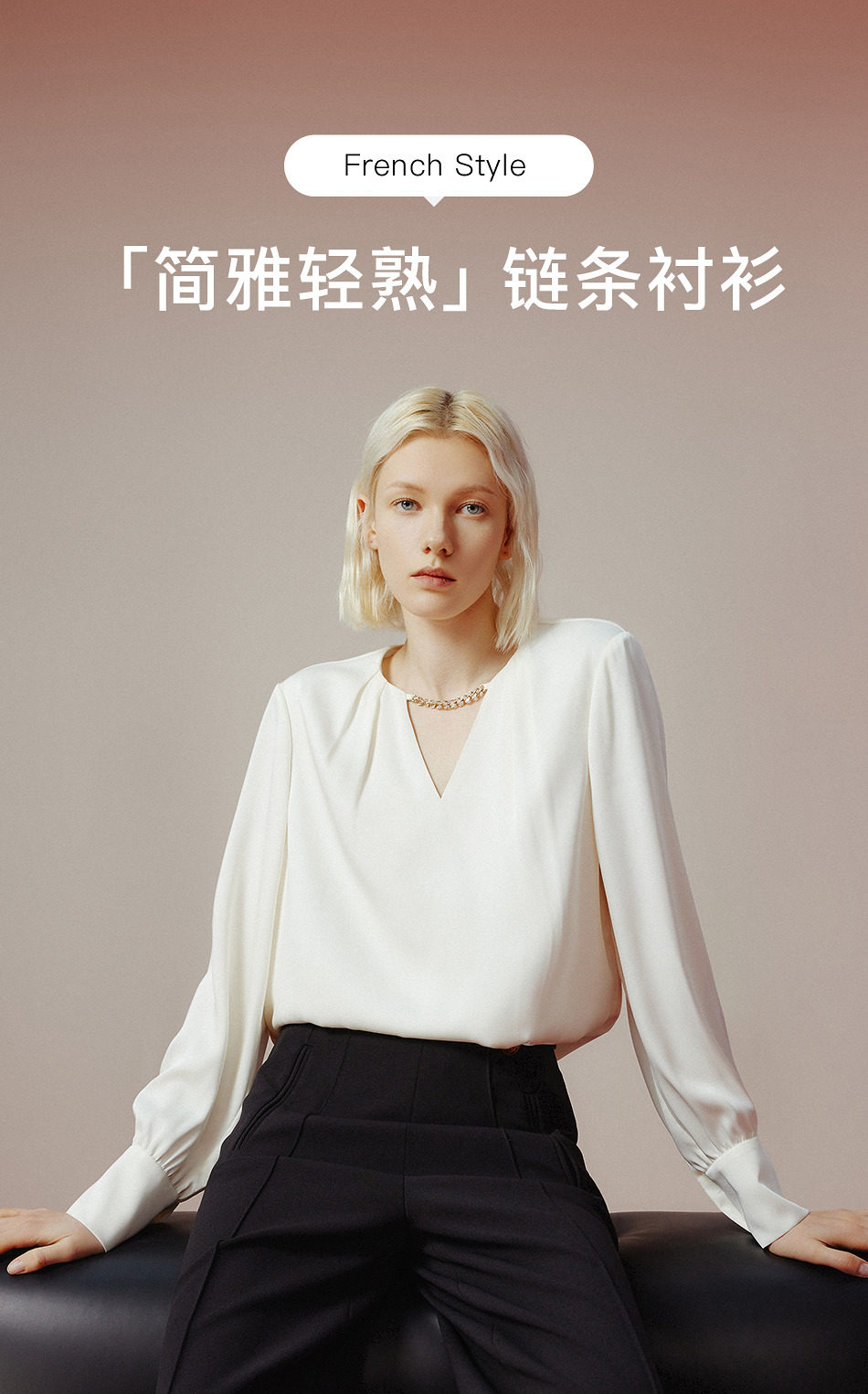 朗姿v領長袖上衣女襯衣氣質通勤高級感2024年春新款法式時尚襯衫