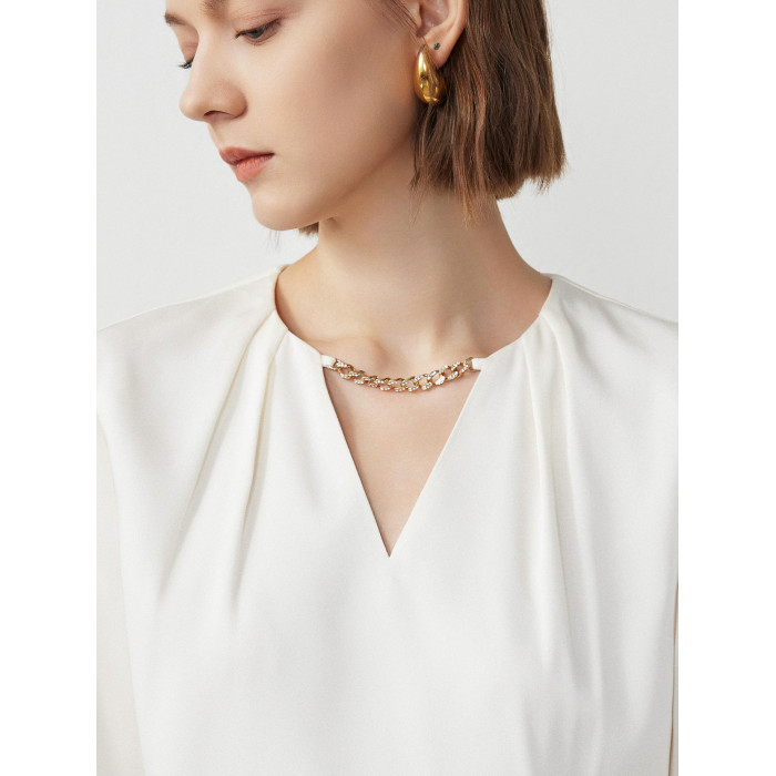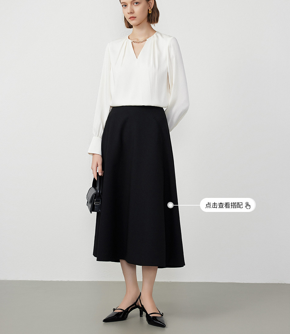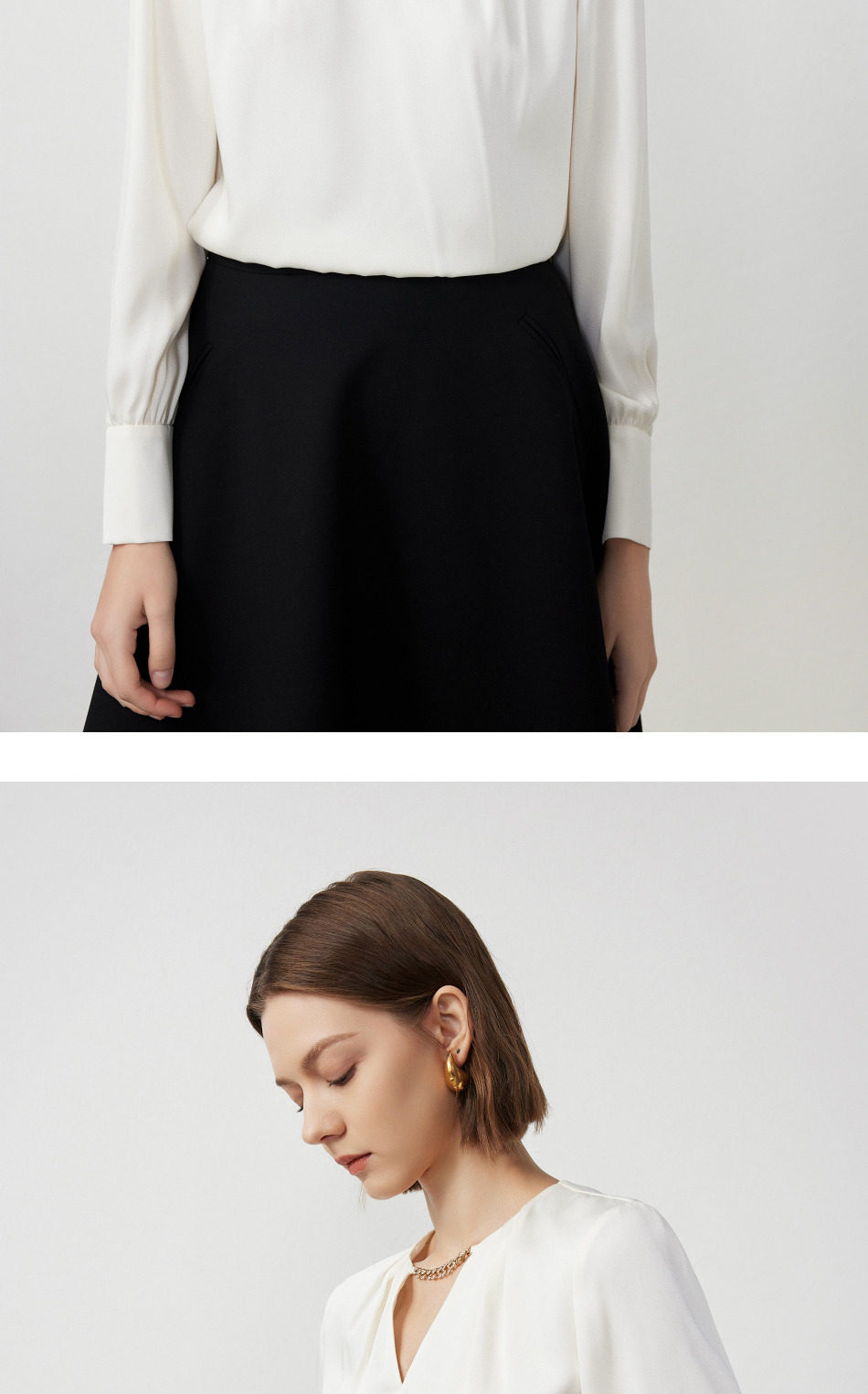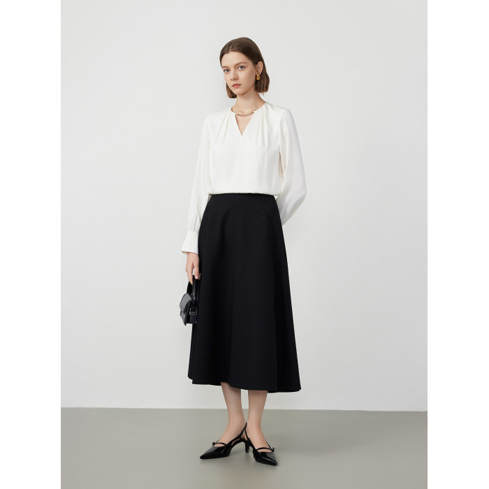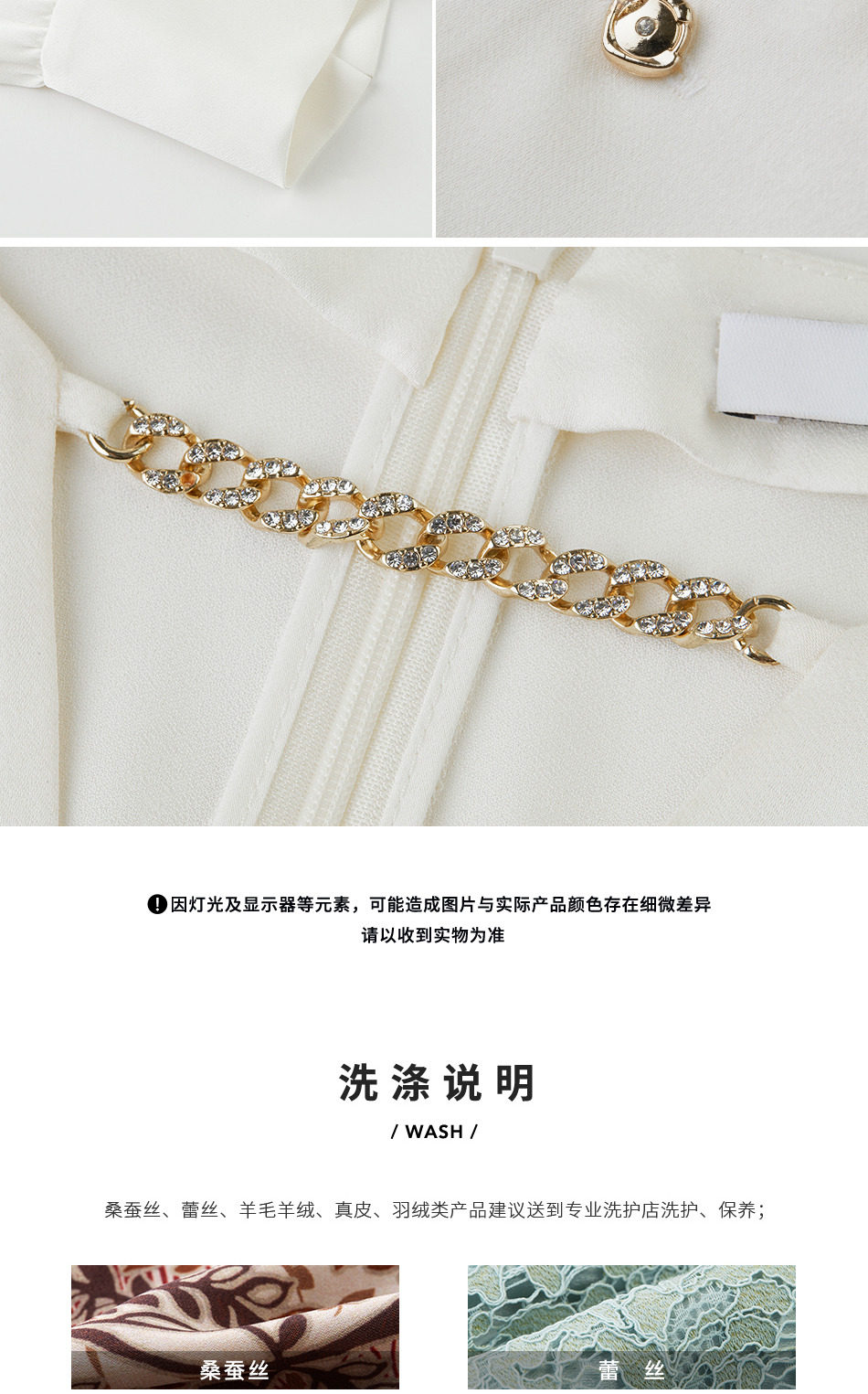 朗姿v領長袖上衣女襯衣氣質通勤高級感2024年春新款法式時尚襯衫