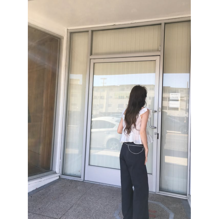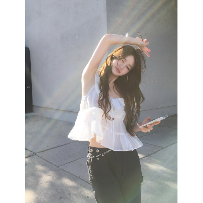 vegettable韓國甜美大圓領荷葉領邊系帶無袖上衣女短襯衫公主小衫