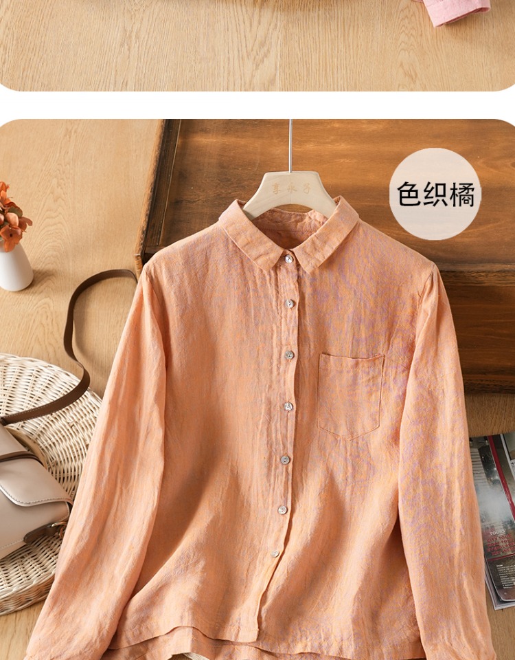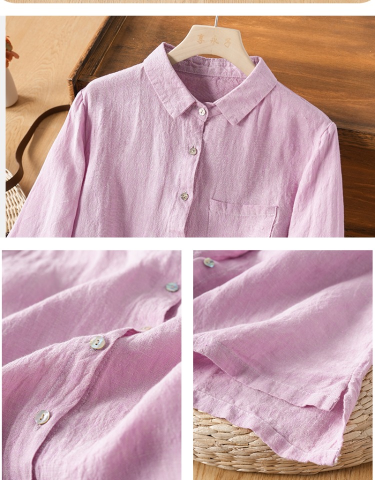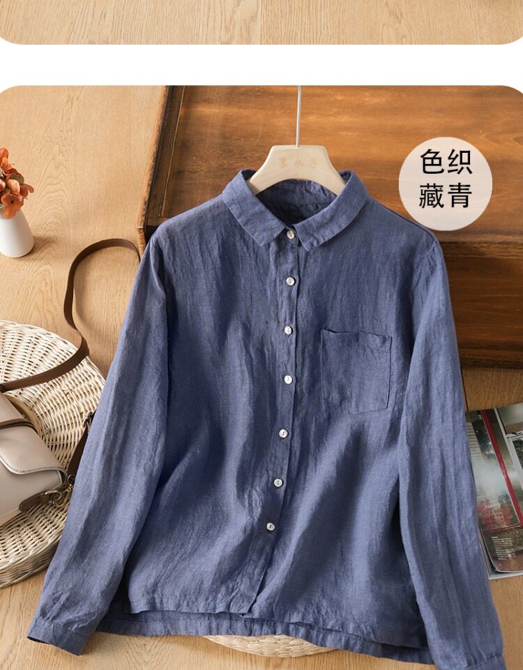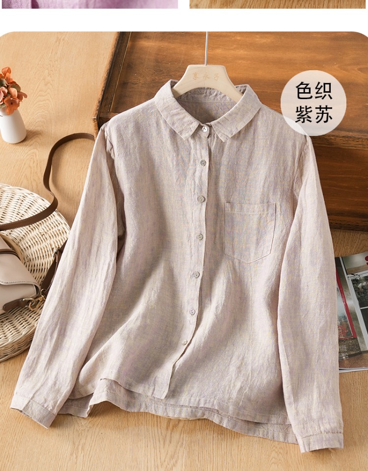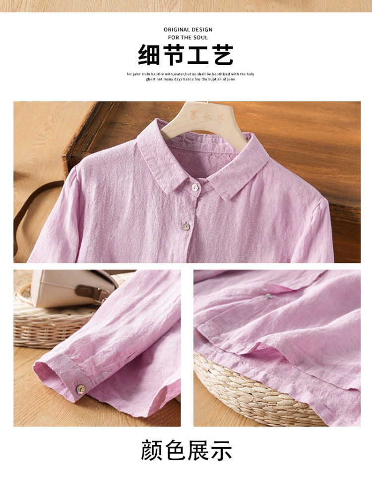 享永子【人靜小庭深院】24支色織漢麻襯衫女文藝復古寬松上衣春夏