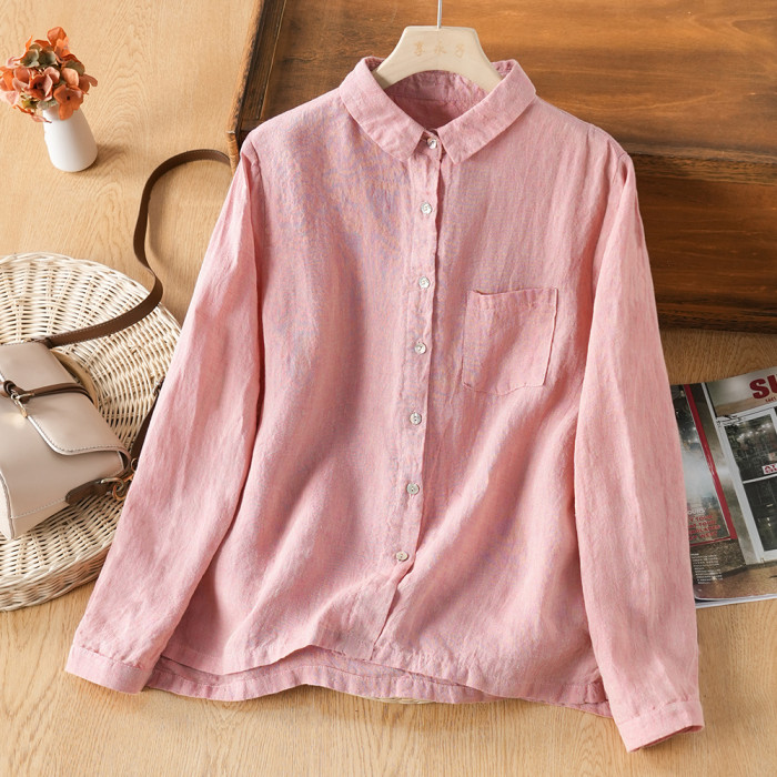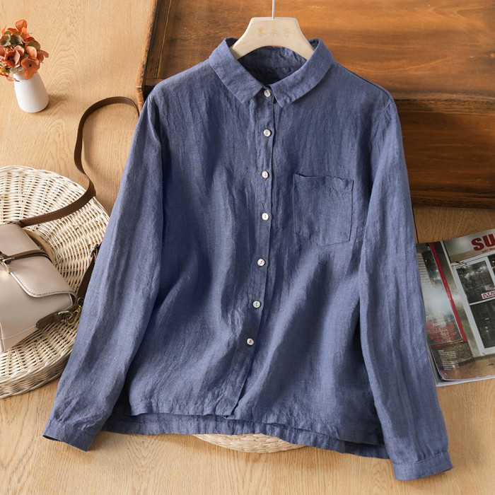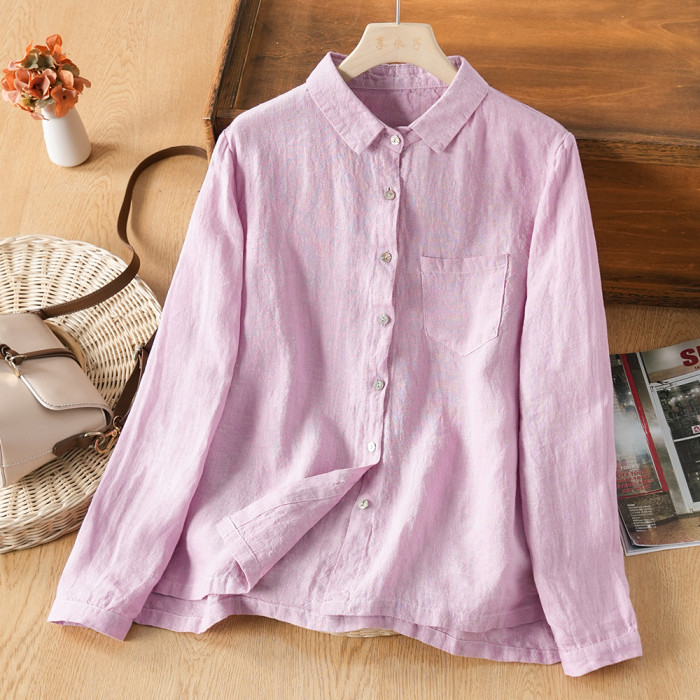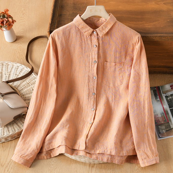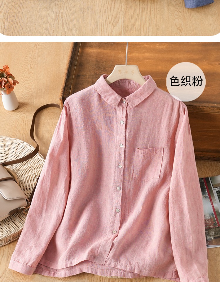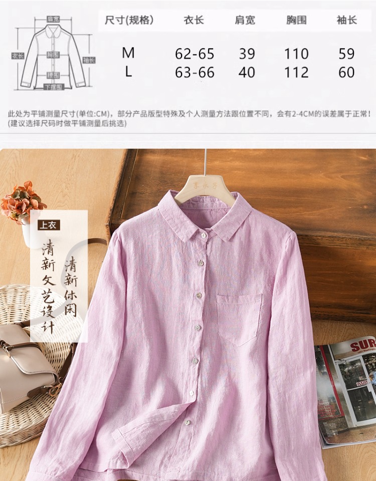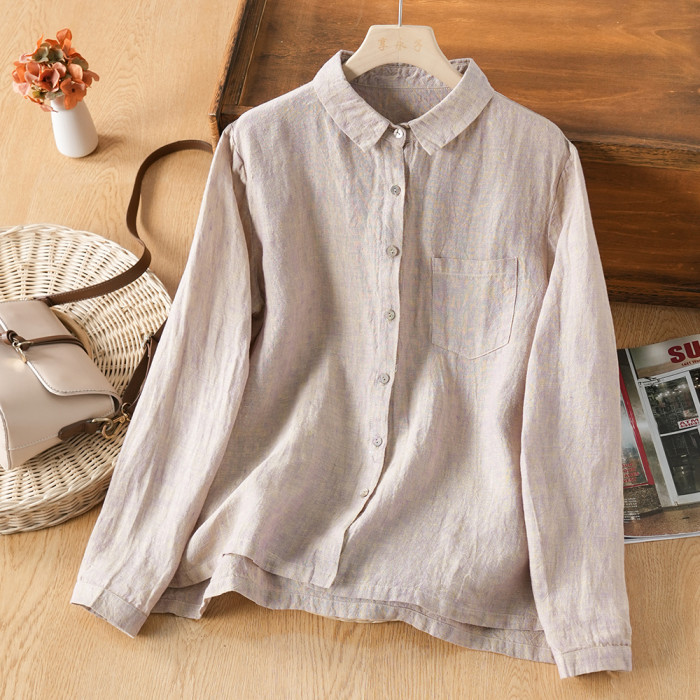 享永子【人靜小庭深院】24支色織漢麻襯衫女文藝復古寬松上衣春夏