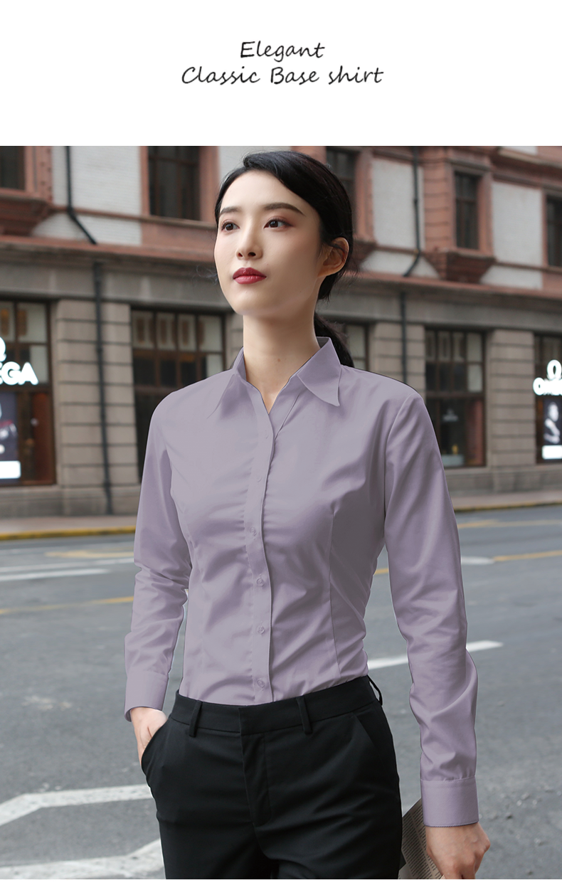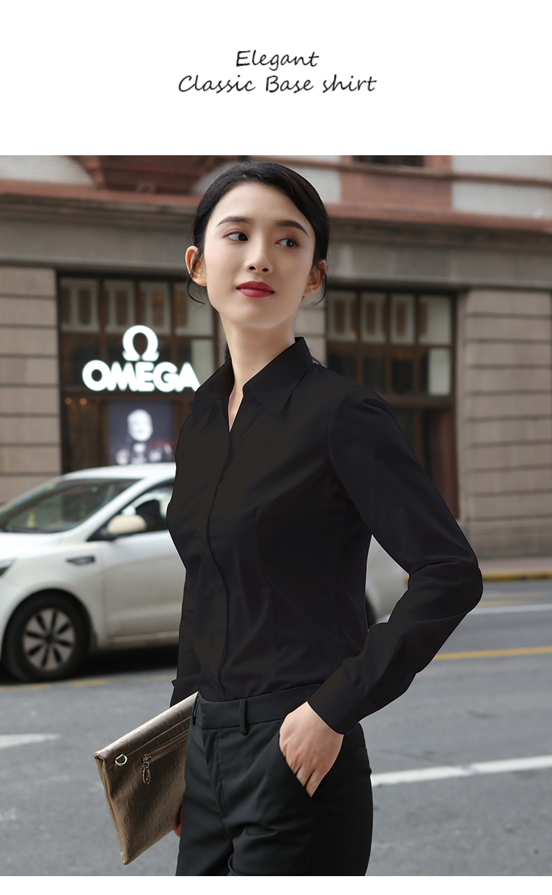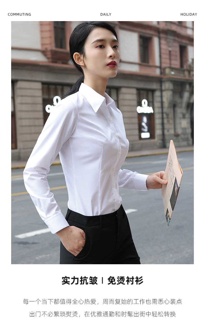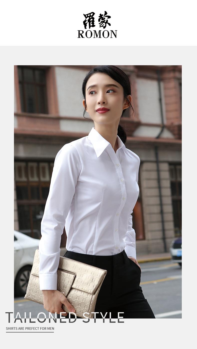羅矇白色襯衫女長袖職業加絨工作服通勤修身工裝V領氣質藍色襯衣