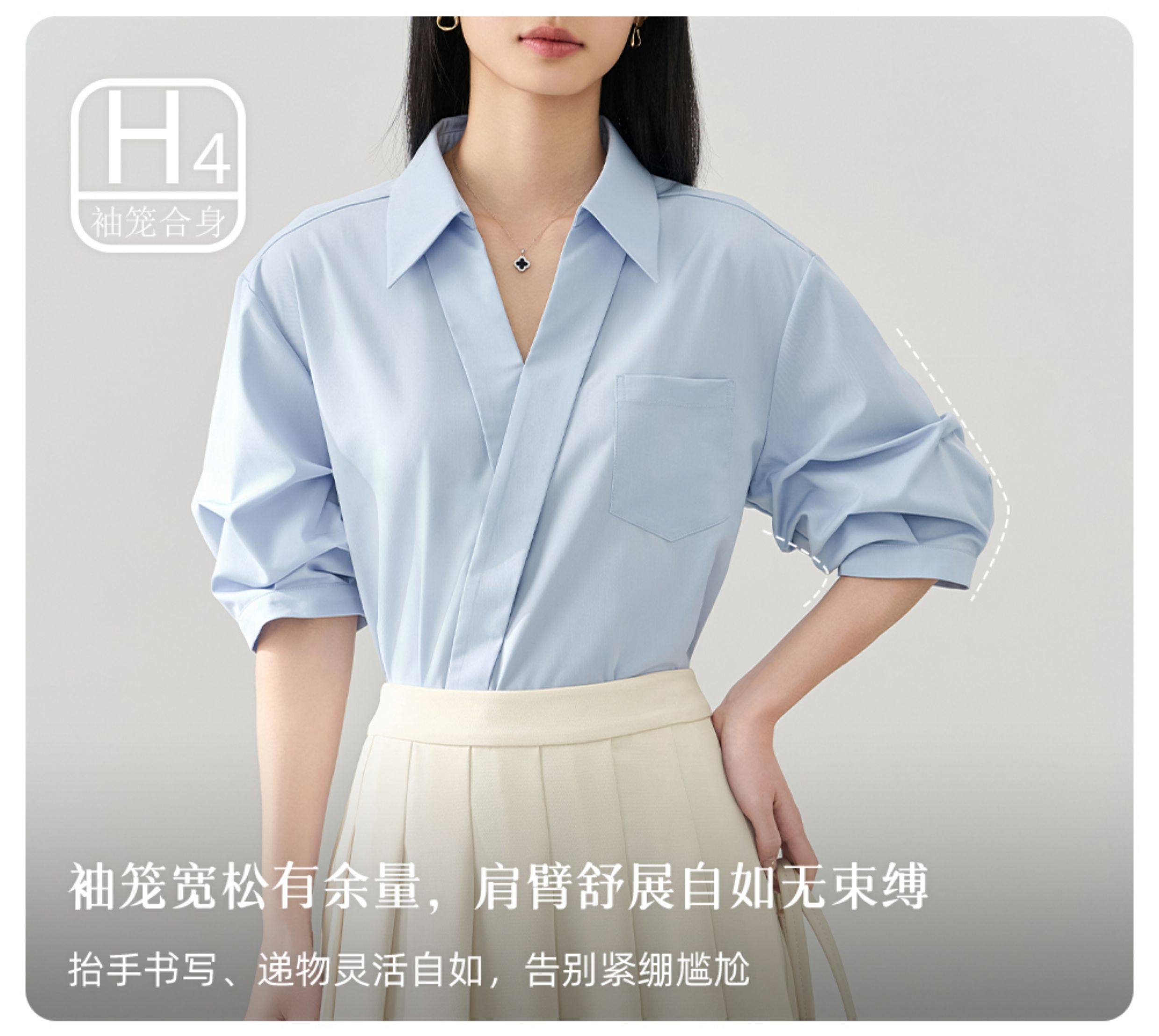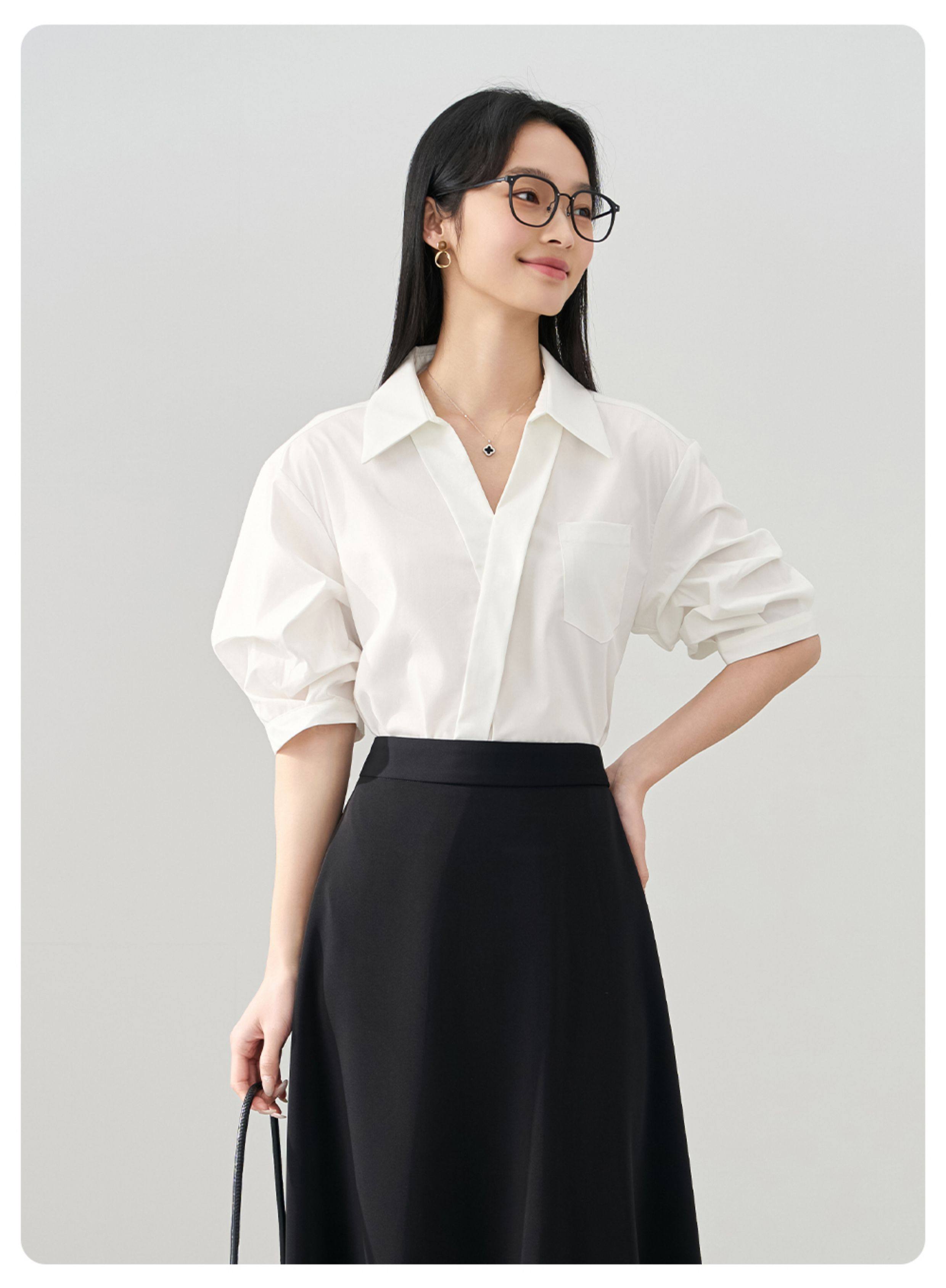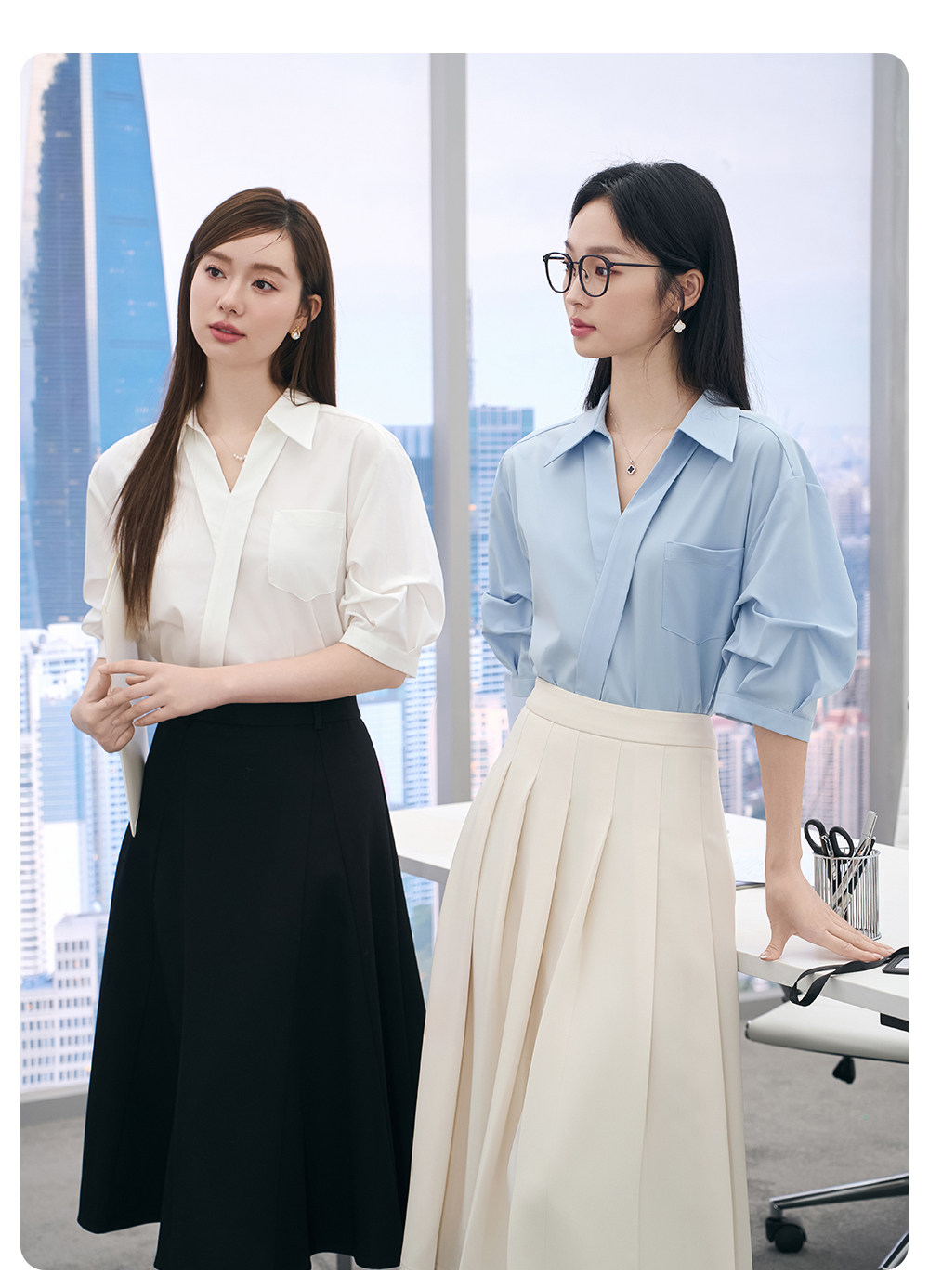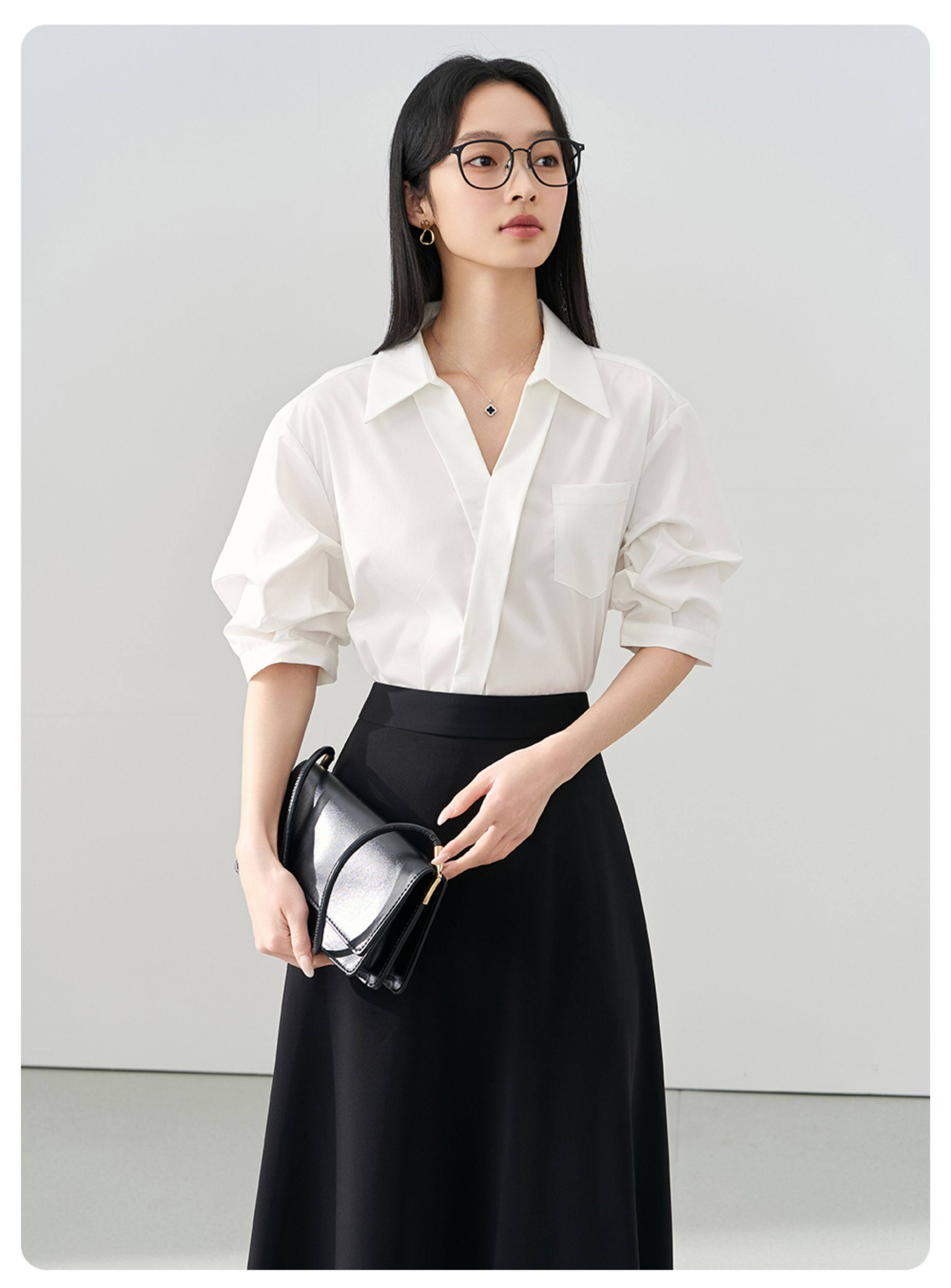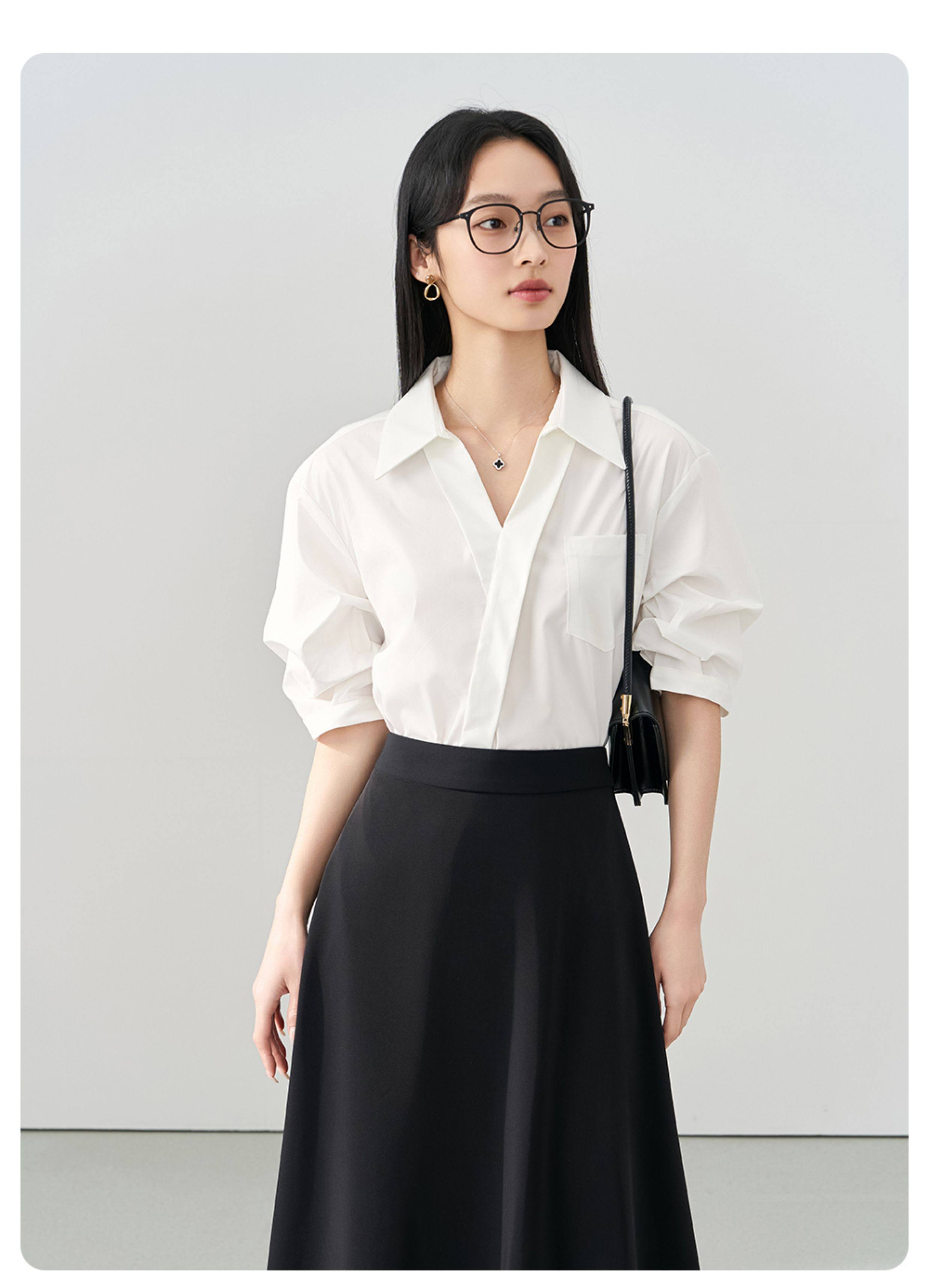 伯德小姐白色v領襯衫女士早秋面試穿搭通勤正裝短袖上衣職業襯衣