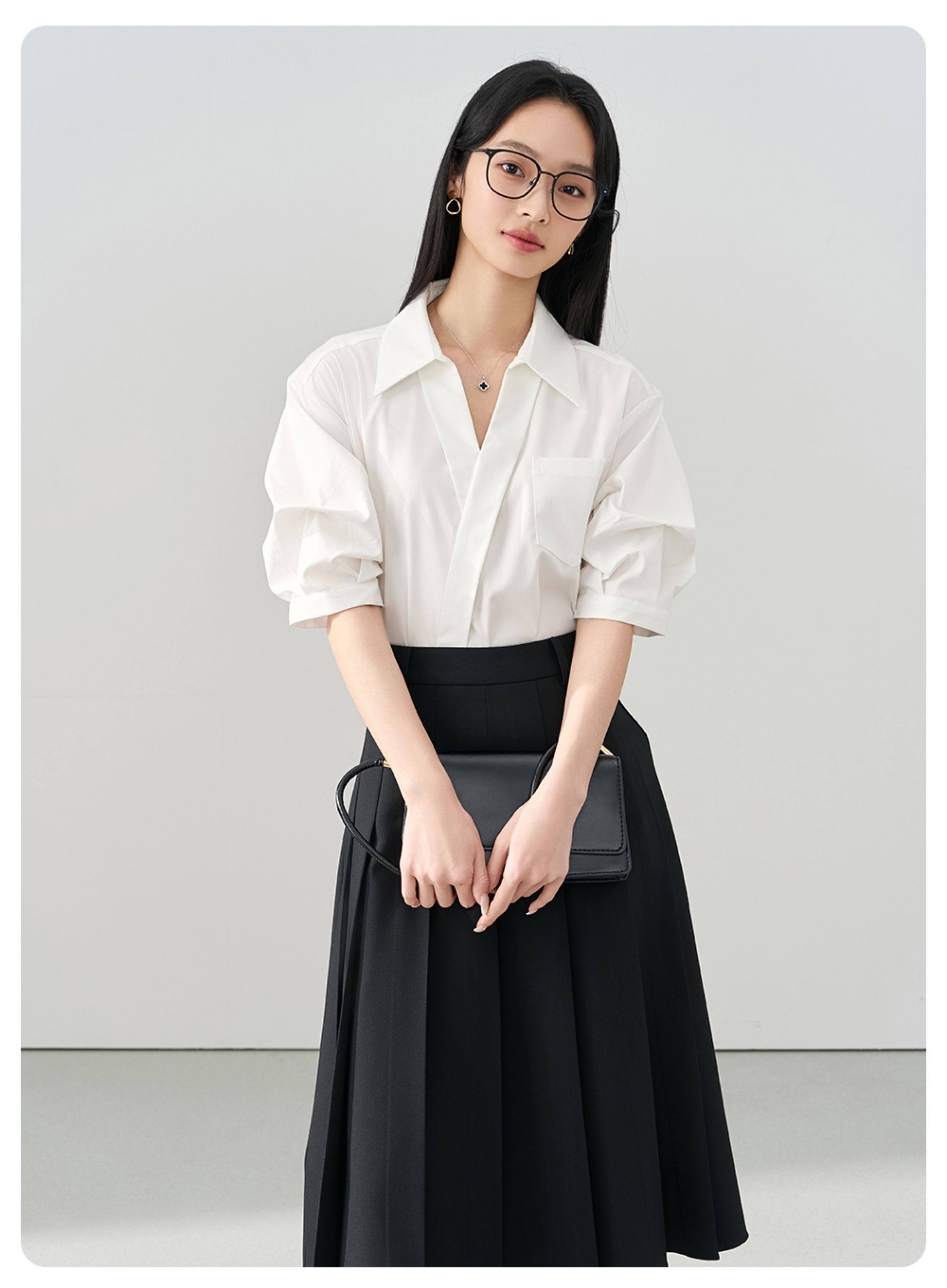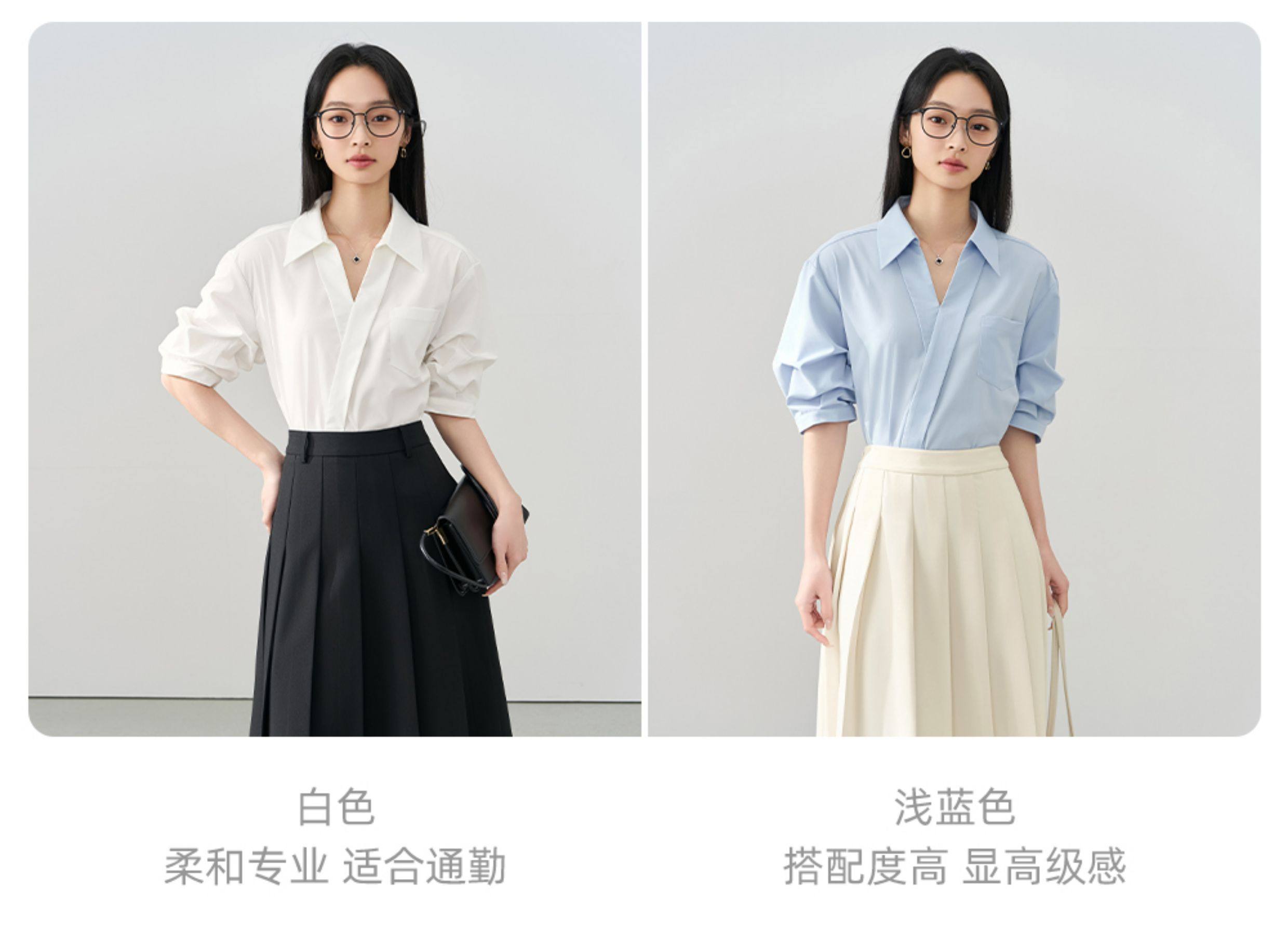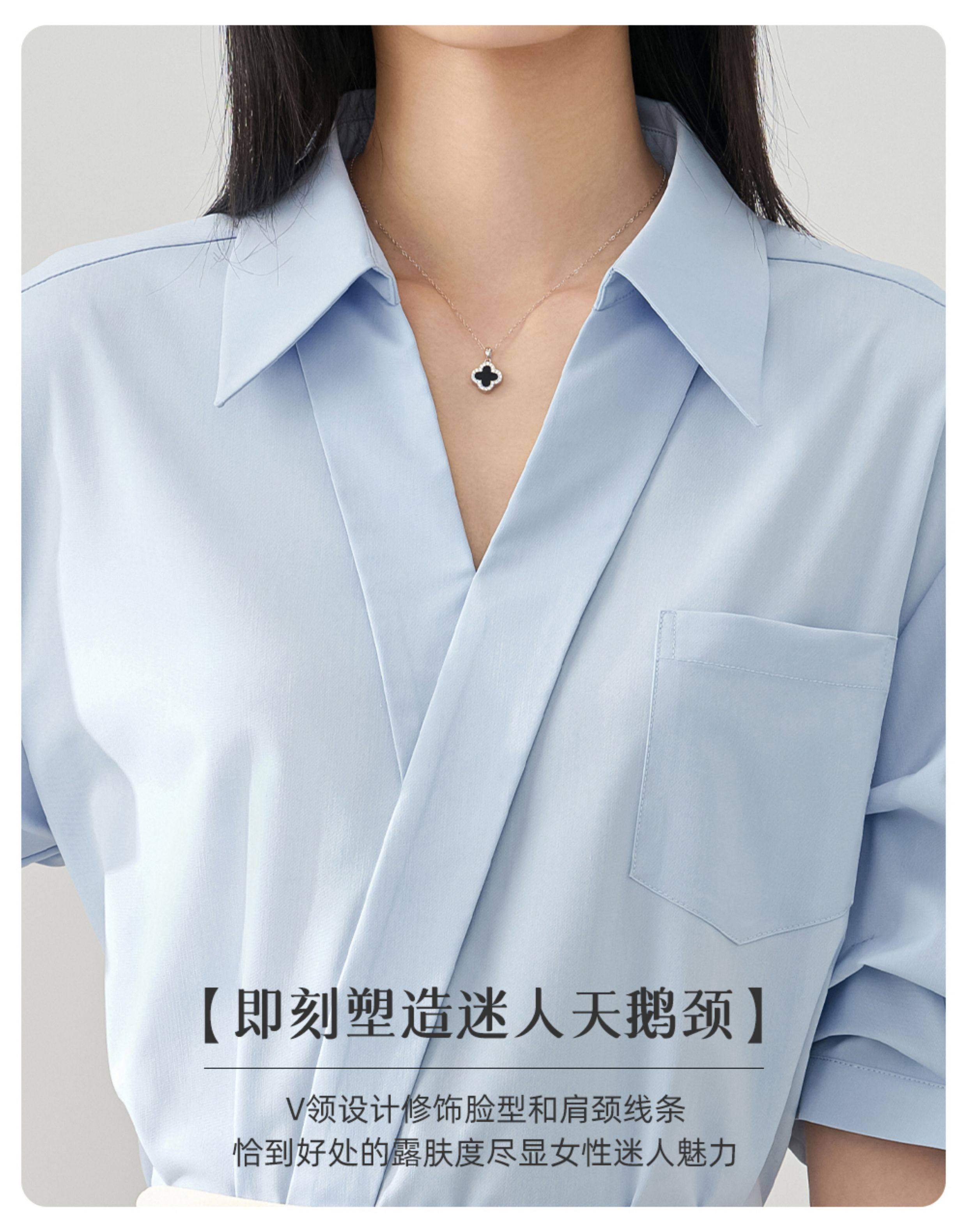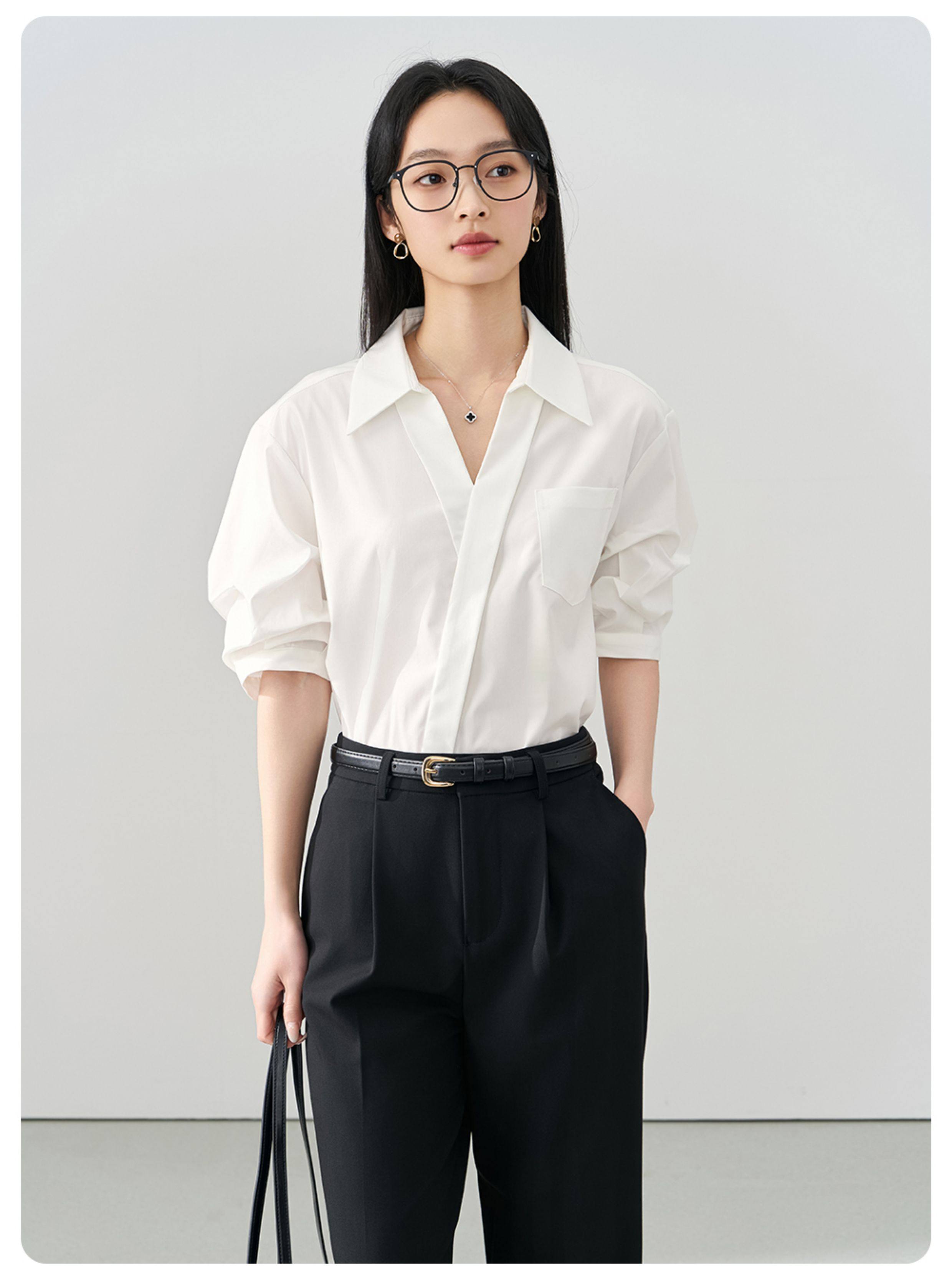 伯德小姐白色v領襯衫女士早秋面試穿搭通勤正裝短袖上衣職業襯衣