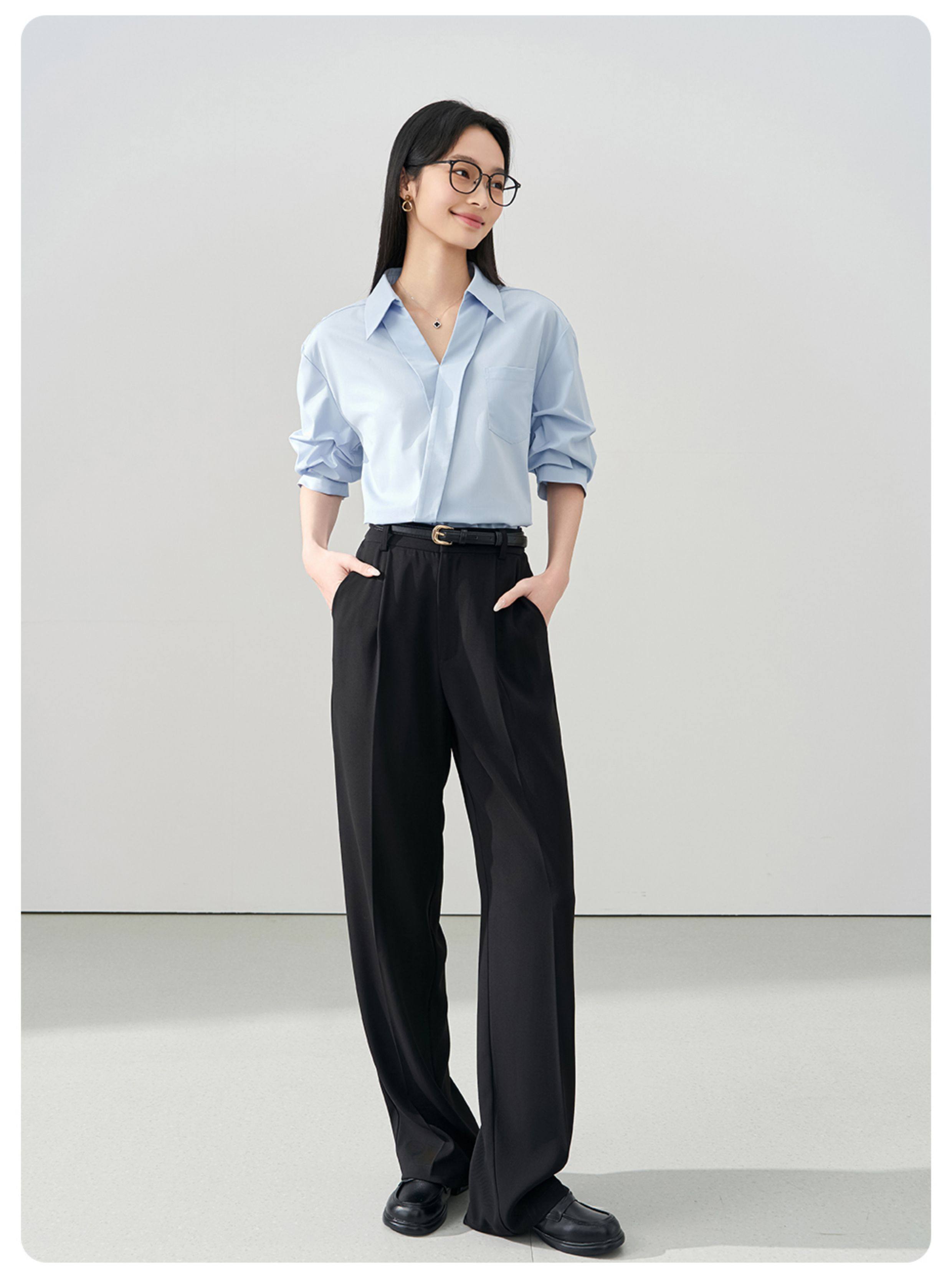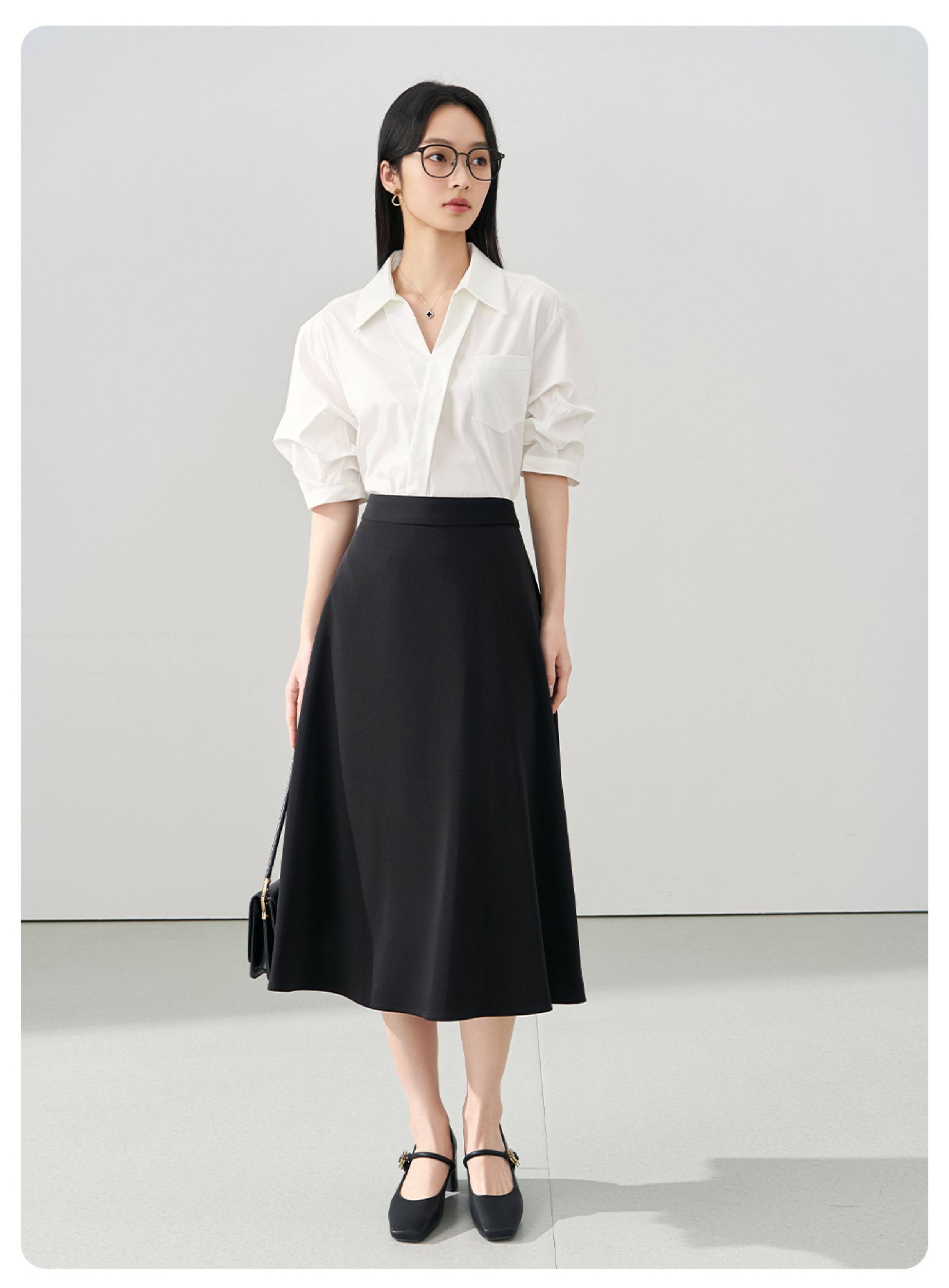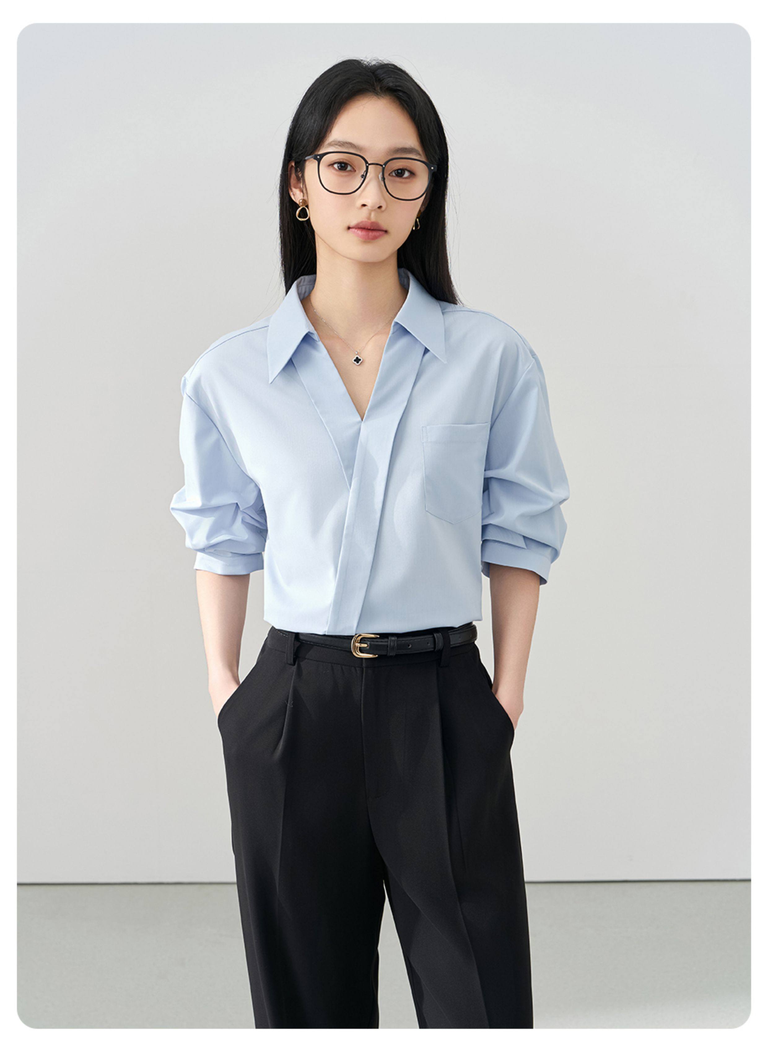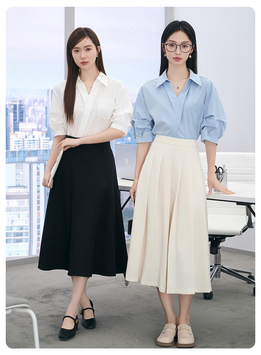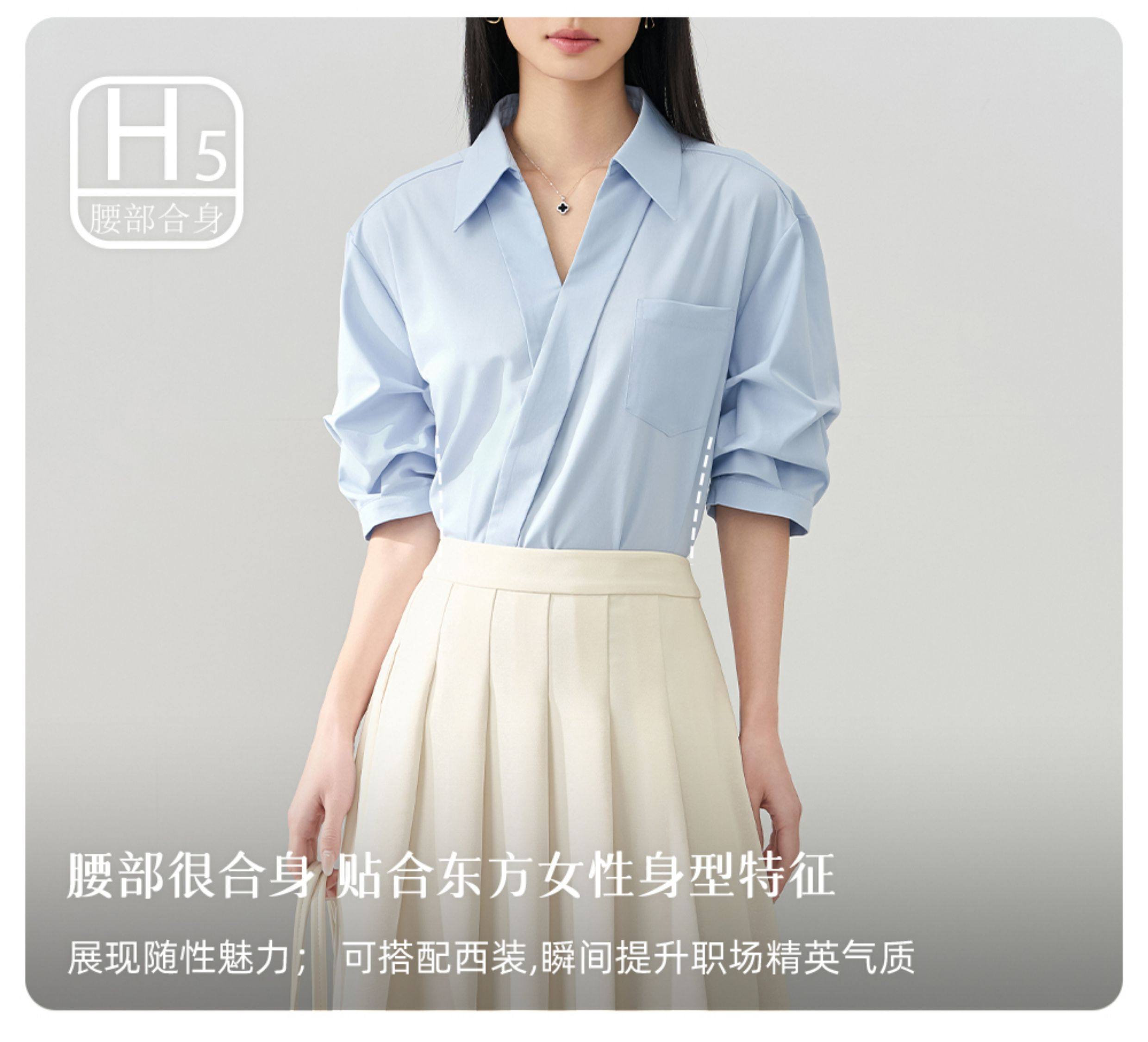 伯德小姐白色v領襯衫女士早秋面試穿搭通勤正裝短袖上衣職業襯衣