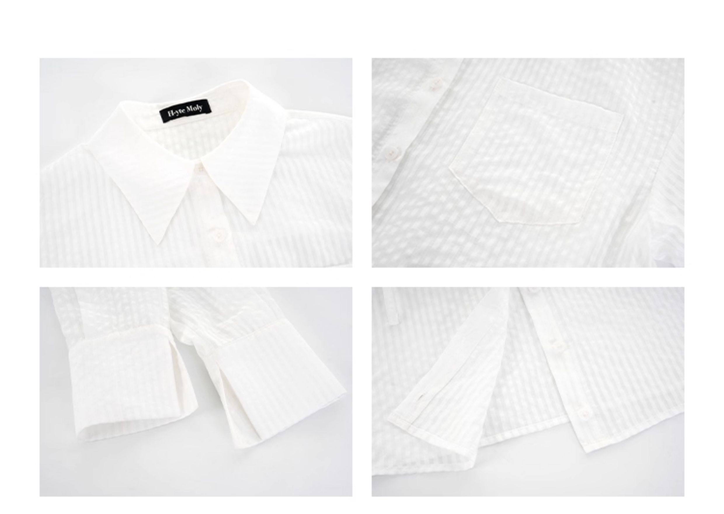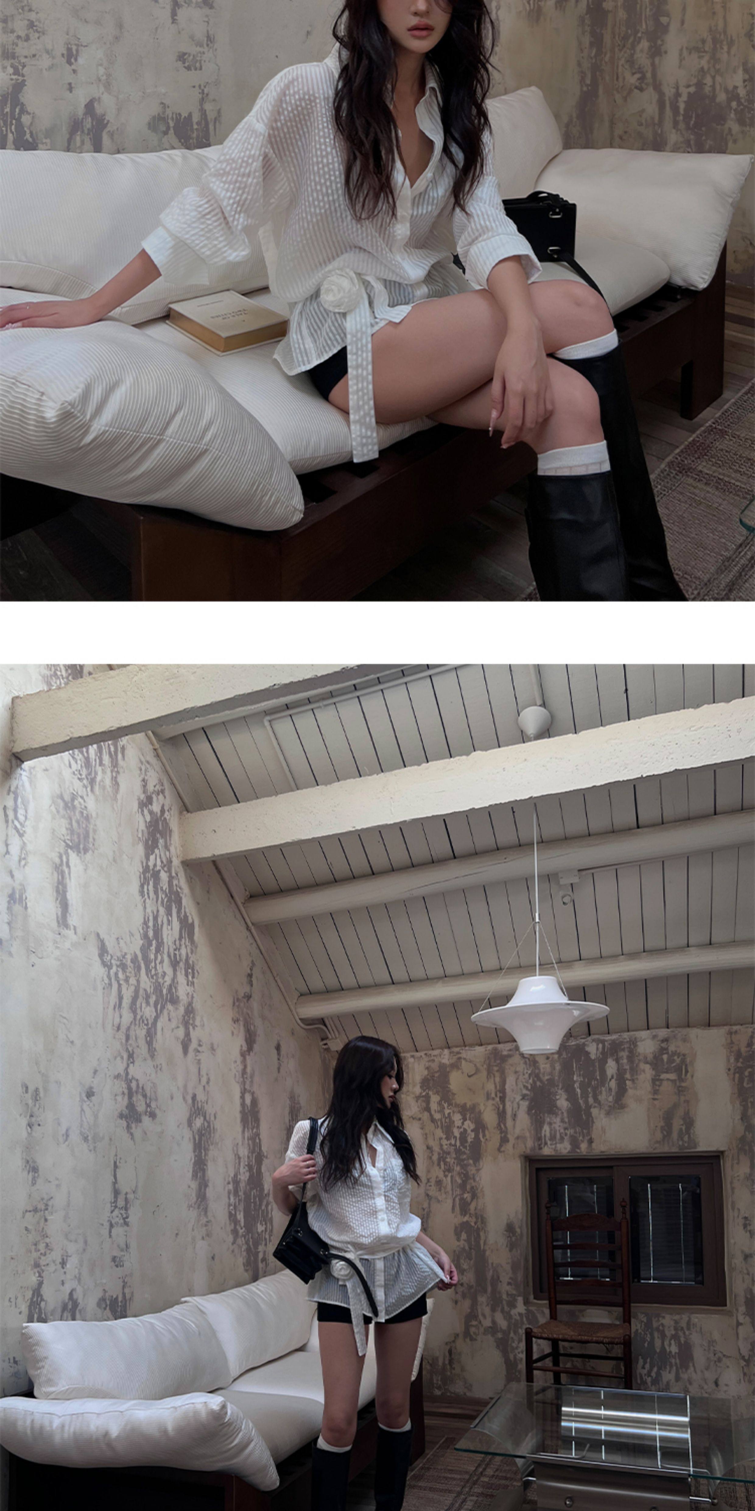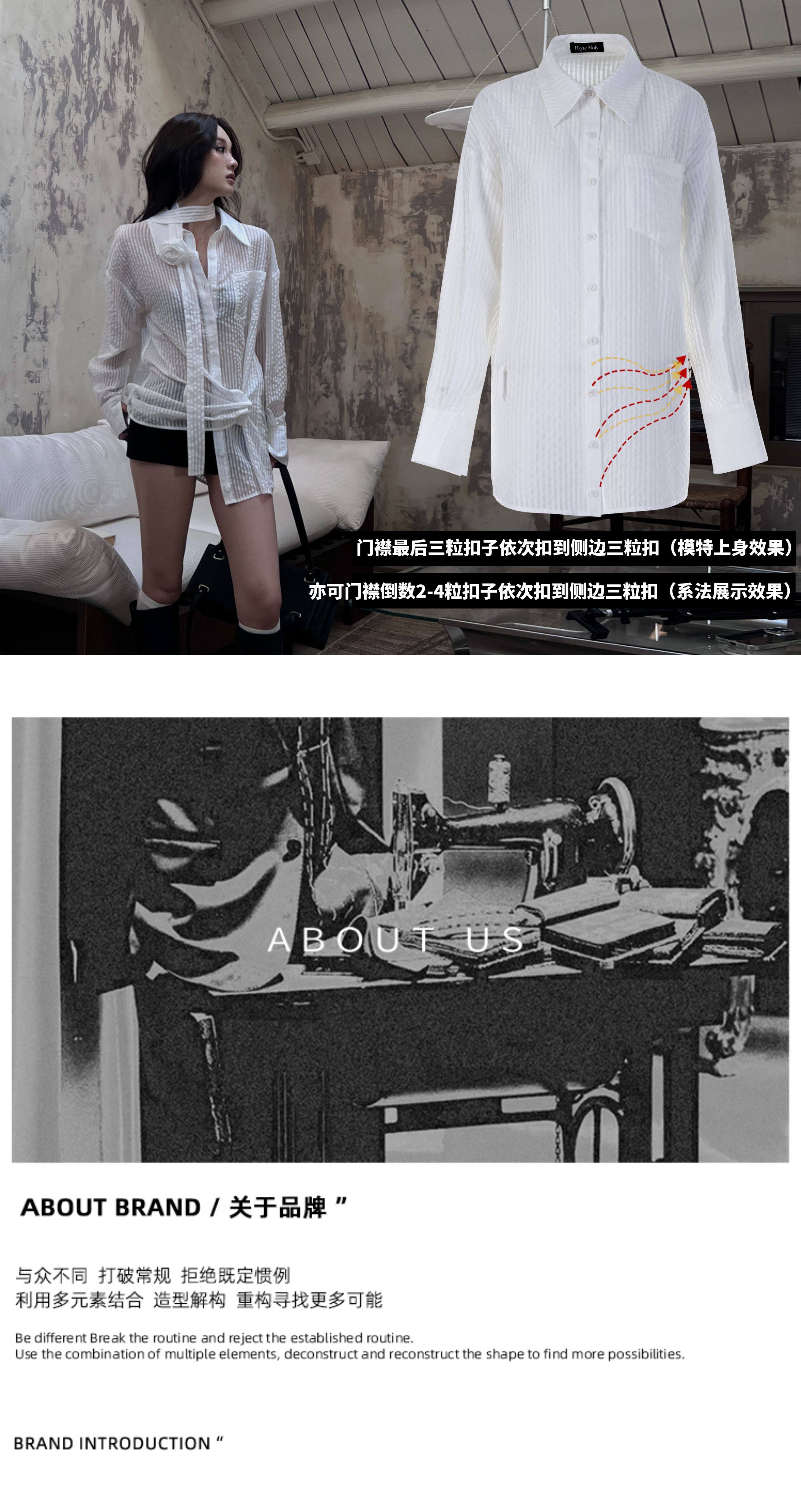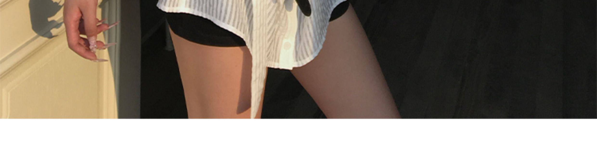 HYTEMOLY手工花朵腰側紐釦多穿法襯衫微透條紋寬鬆防曬長袖襯衣女