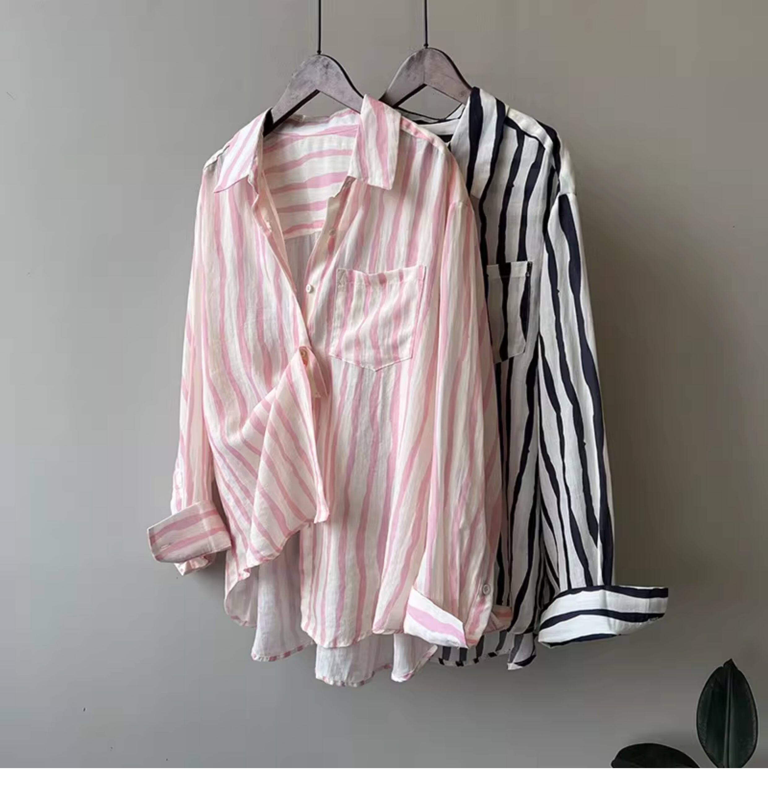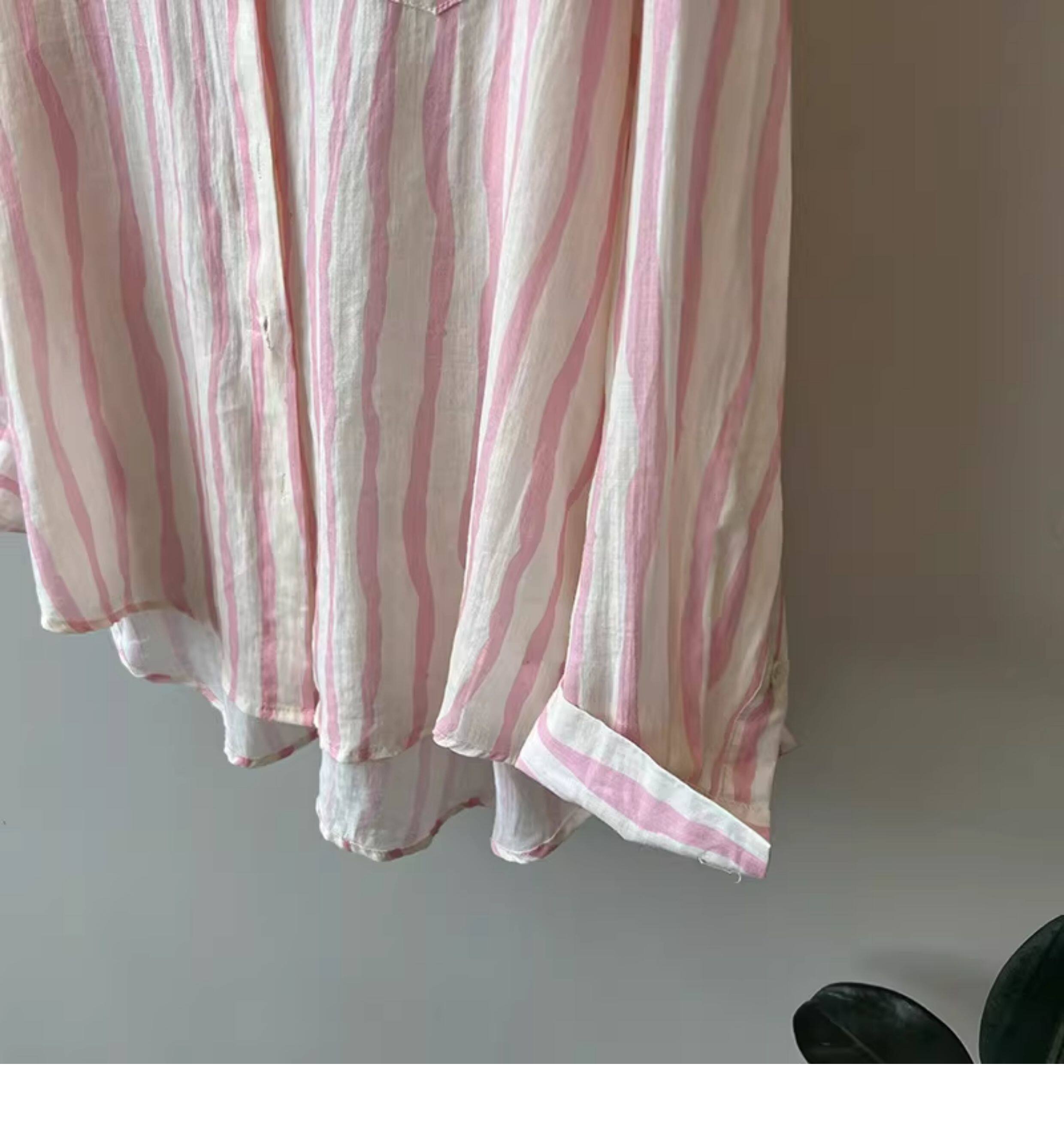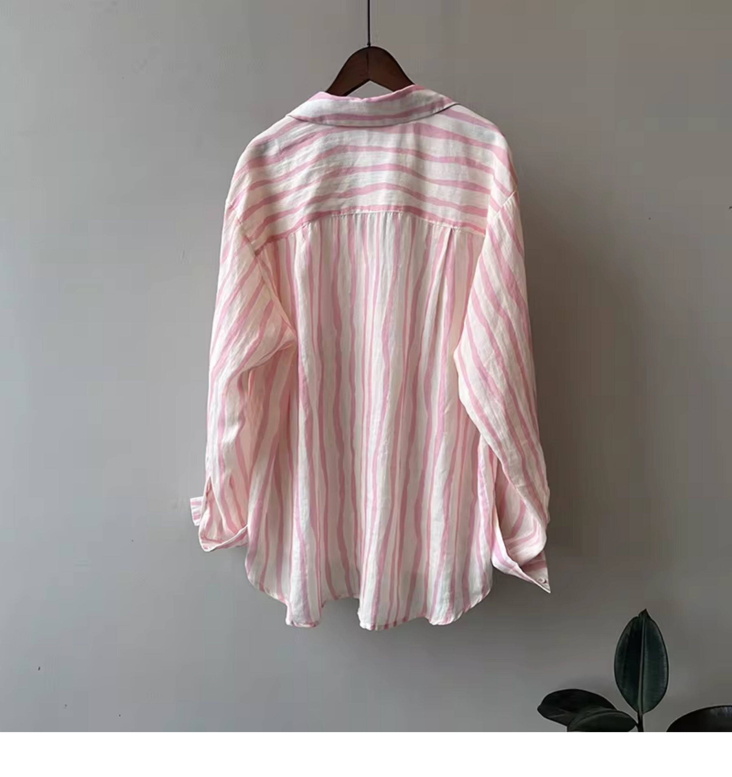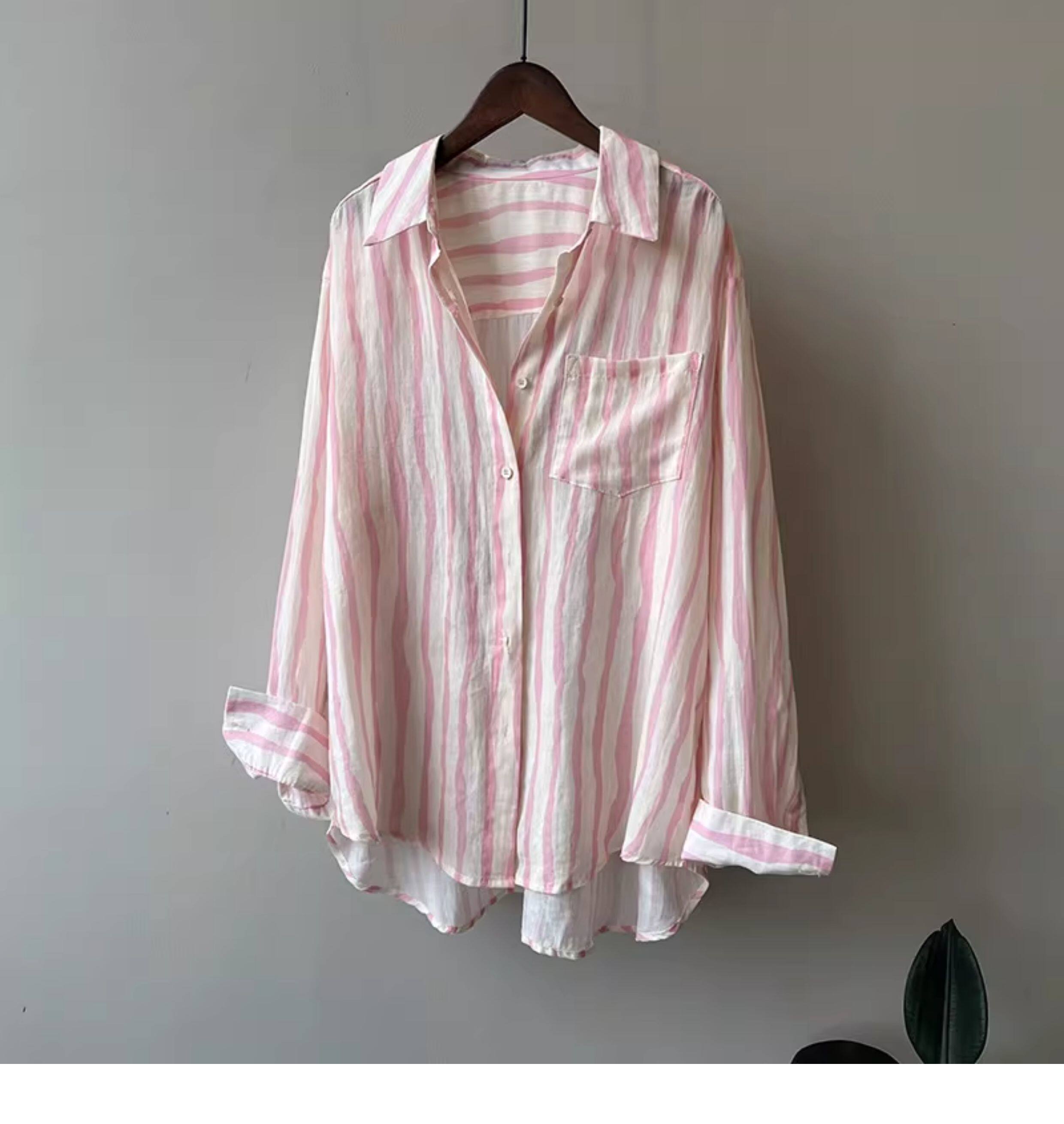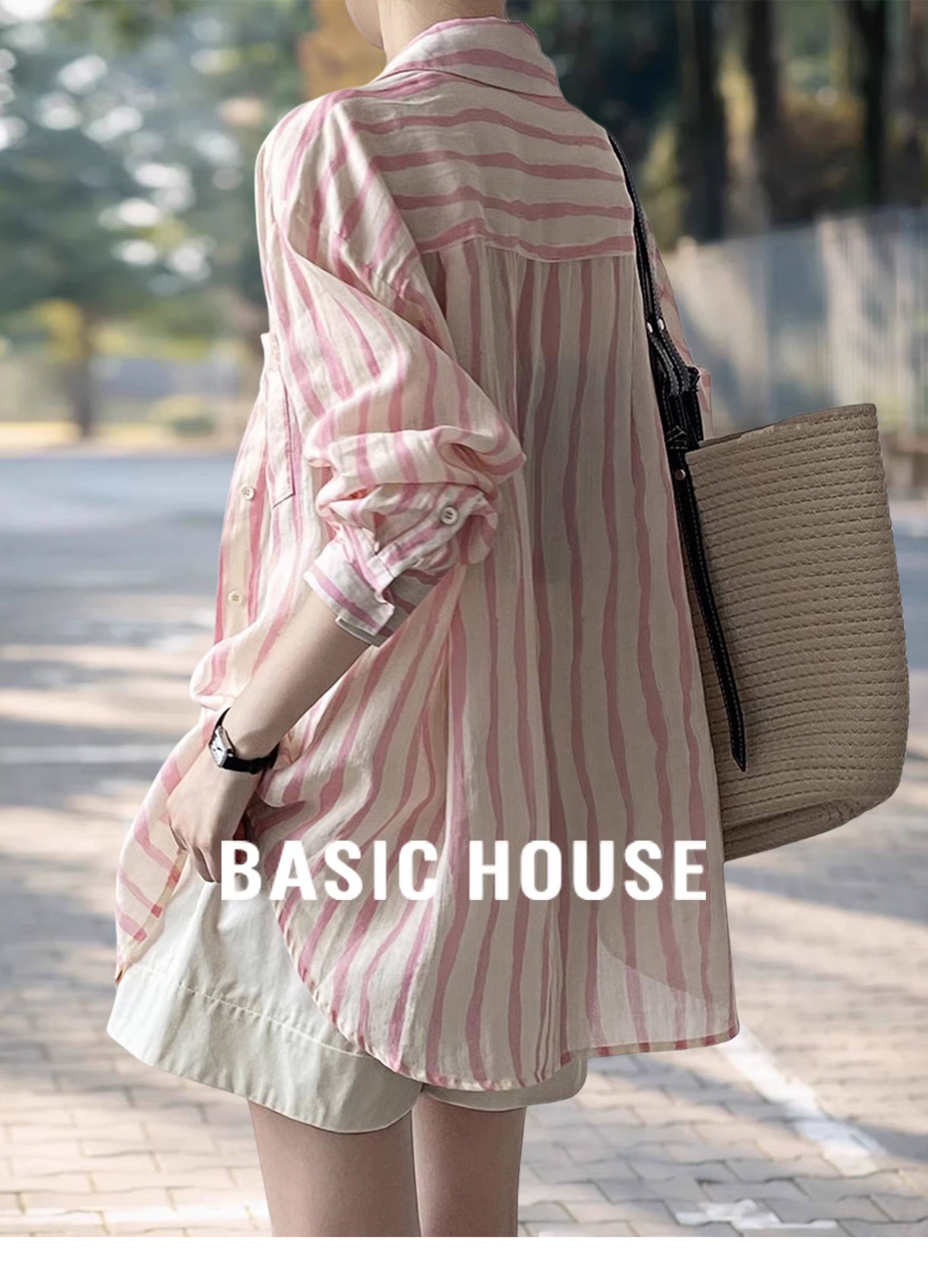 Basic House/百家好慵懶粉色條紋襯衫女2026夏季薄款冰絲防曬襯衣