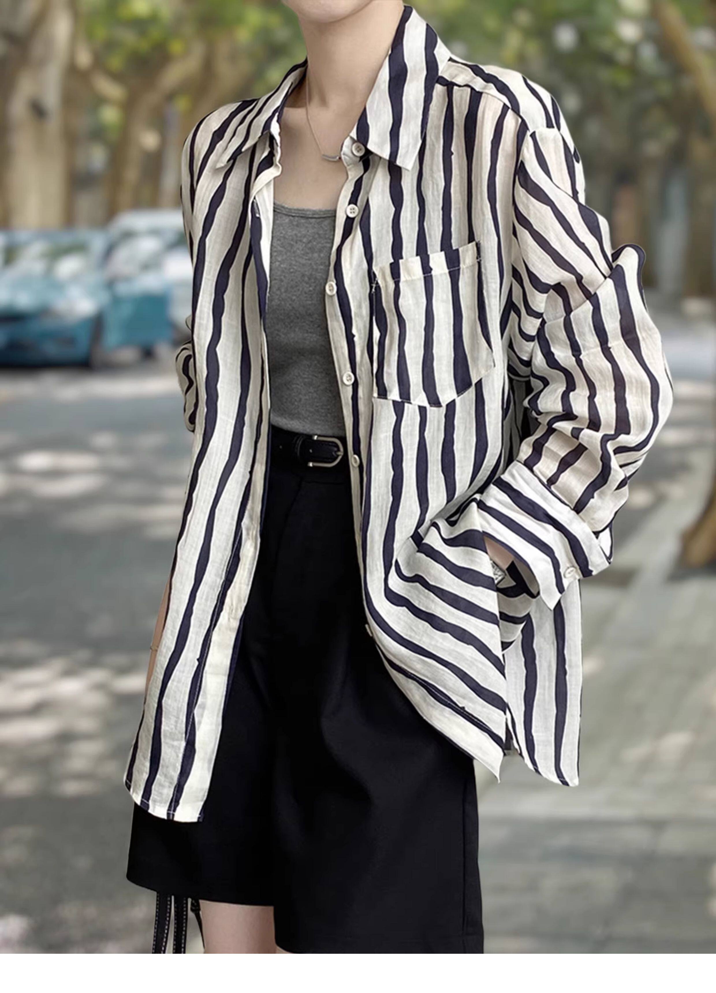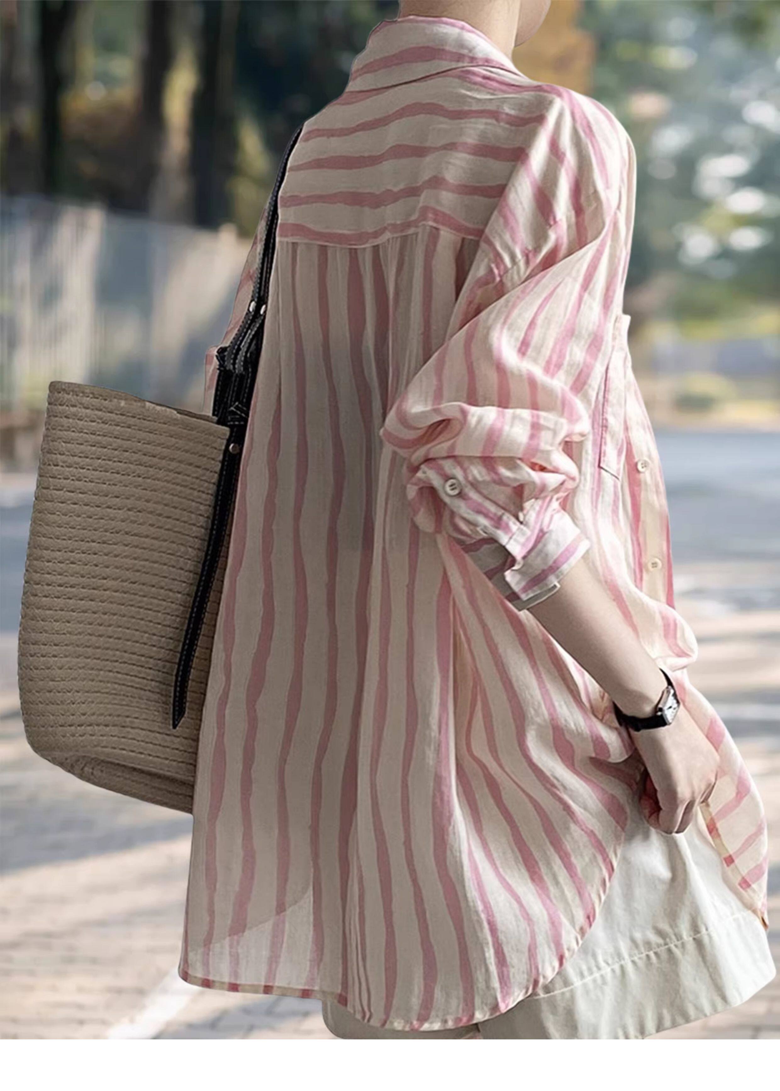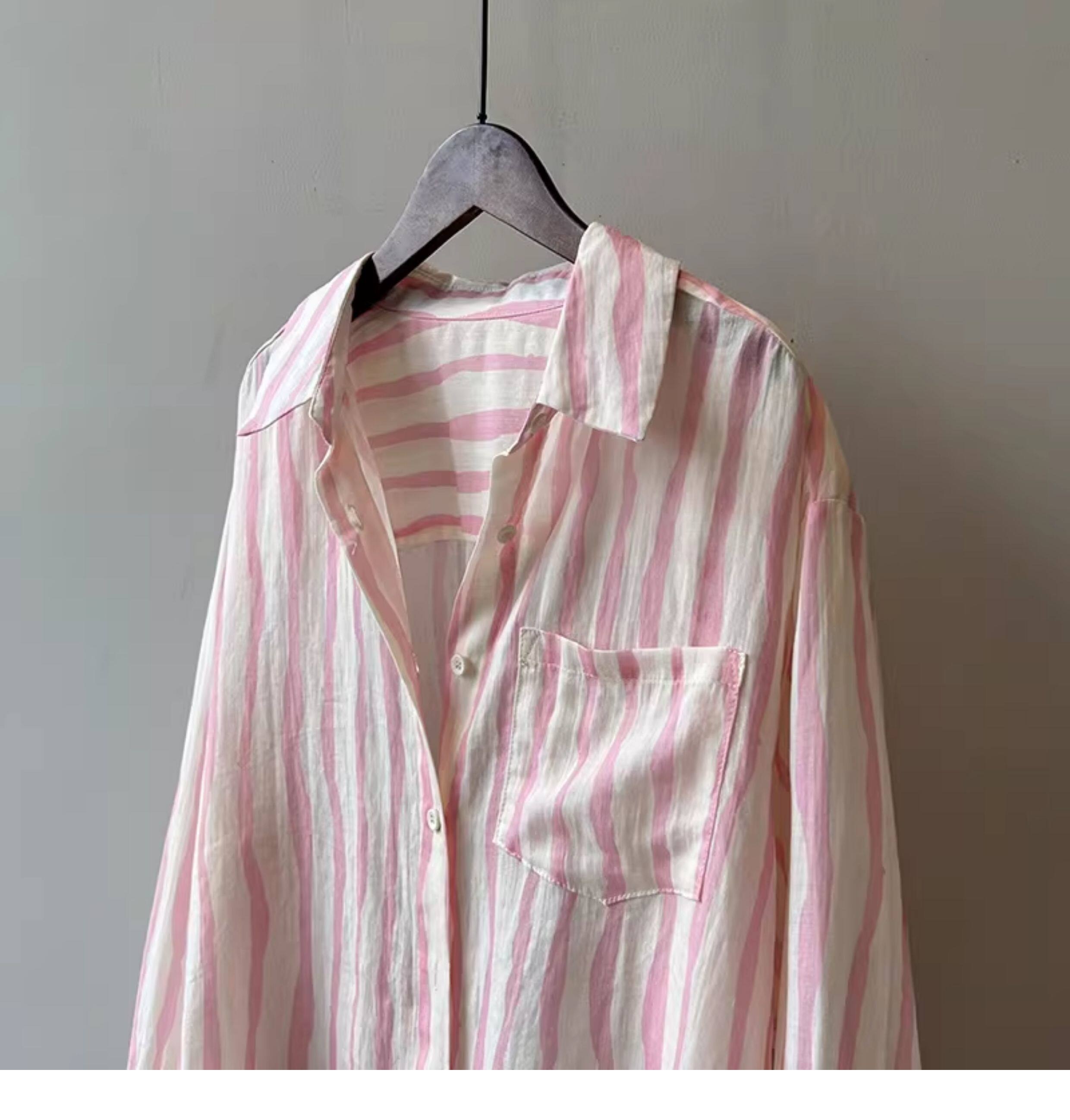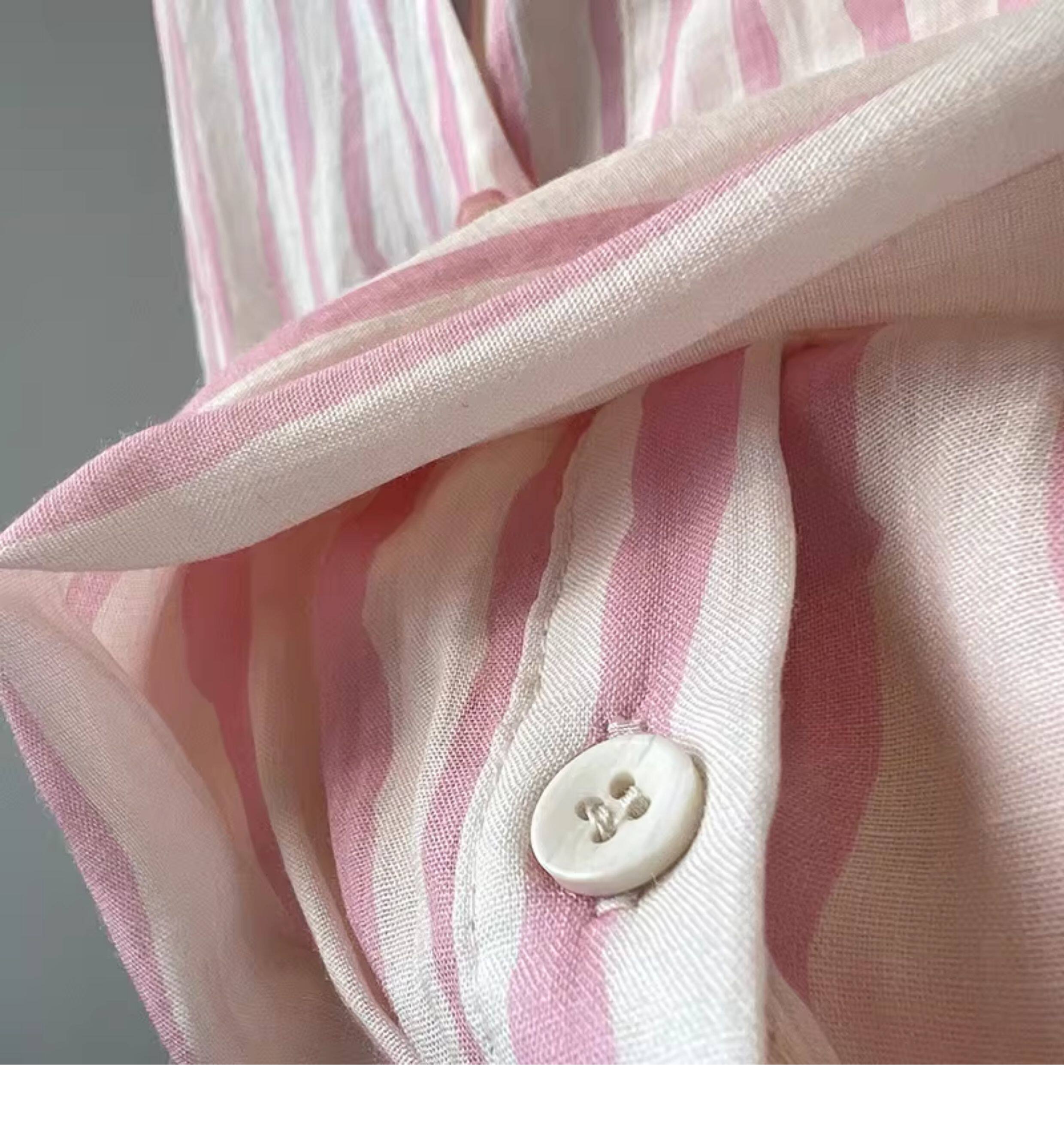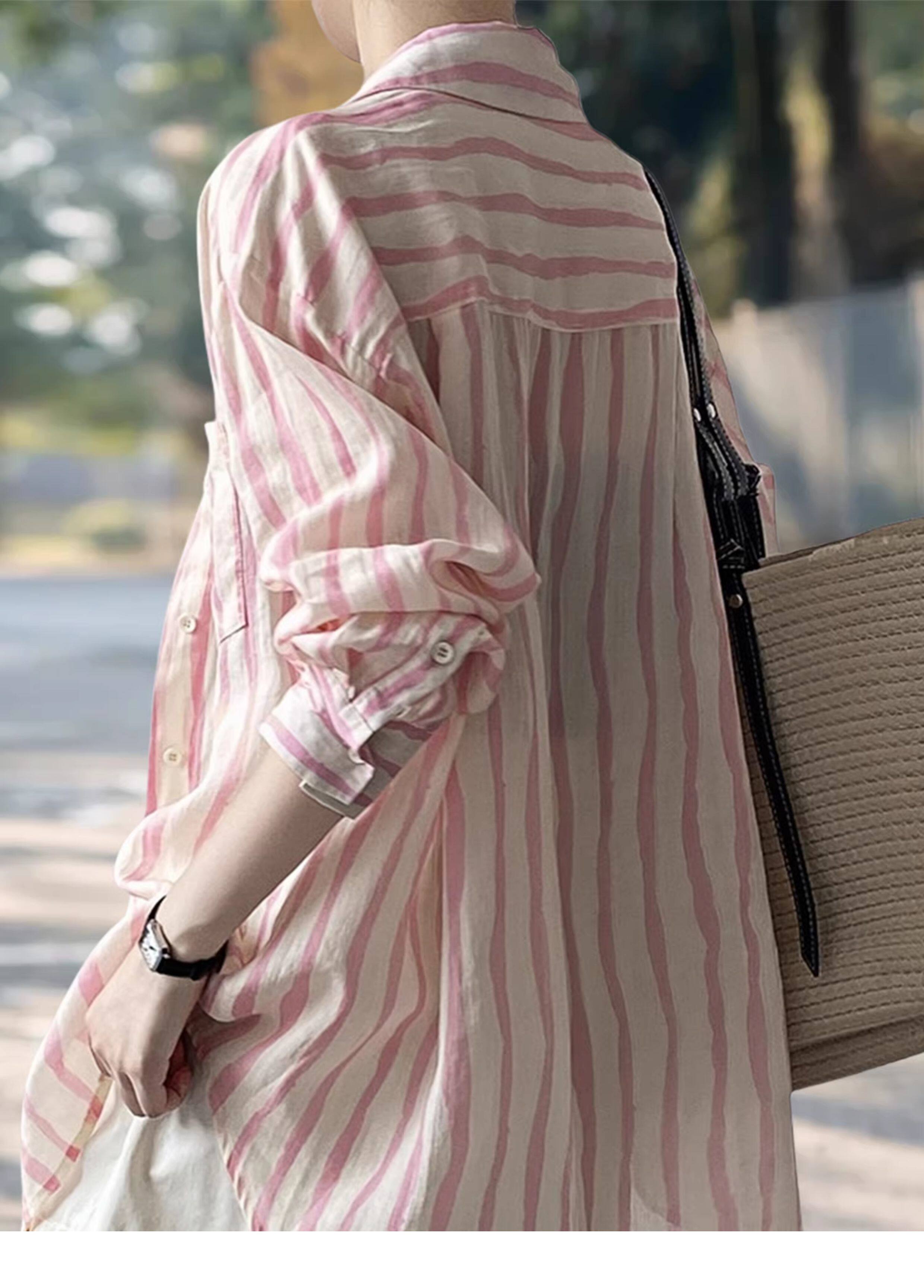 Basic House/百家好慵懶粉色條紋襯衫女2026夏季薄款冰絲防曬襯衣