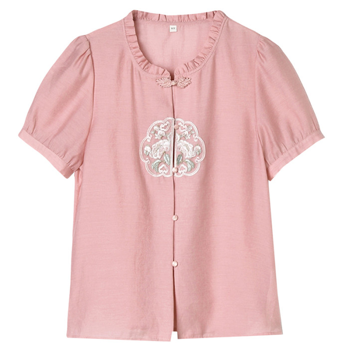 【返場】9魅HH0D0031國風綉花上衣含天絲襯衫專櫃折釦女裝2025夏