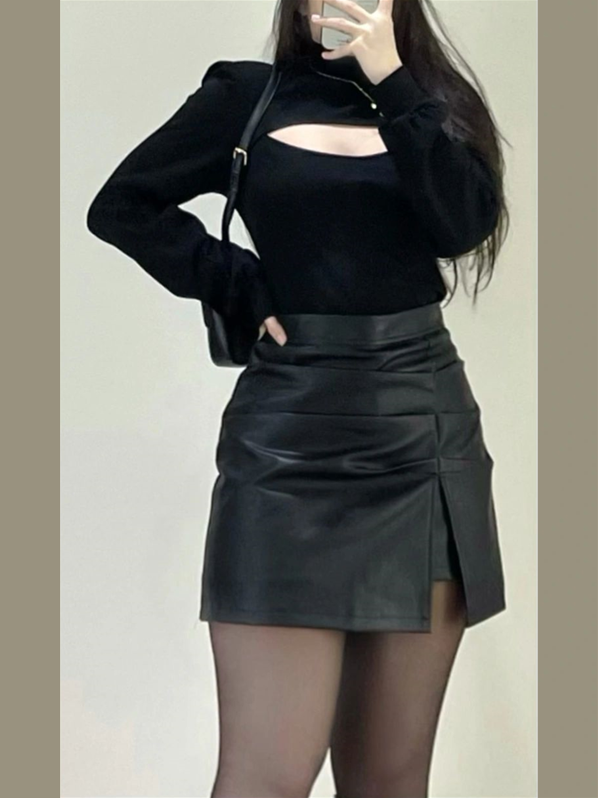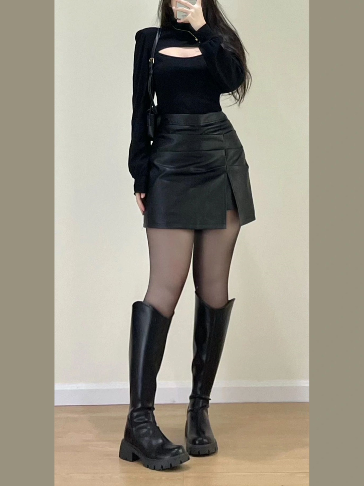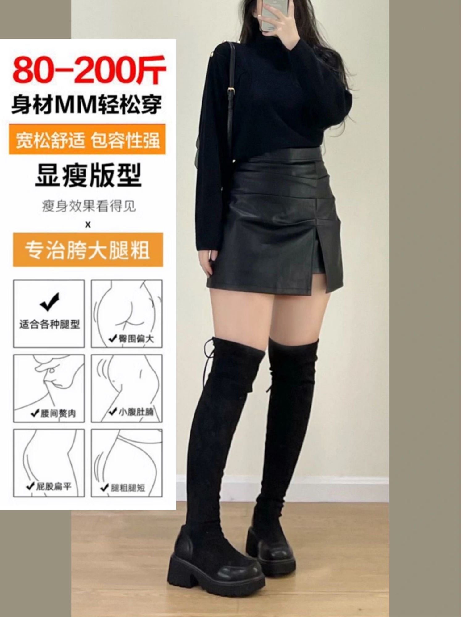 辣妹黑色皮裙褶皺半身裙女春秋大碼胖mm高腰a字設計感PU皮a字短裙