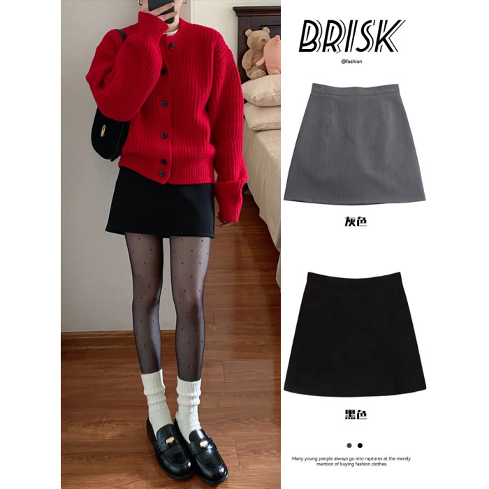 大碼胖M毛呢短裙女小個子褲裙遮胯a字裙顯瘦包臀裙半身裙短款秋冬
