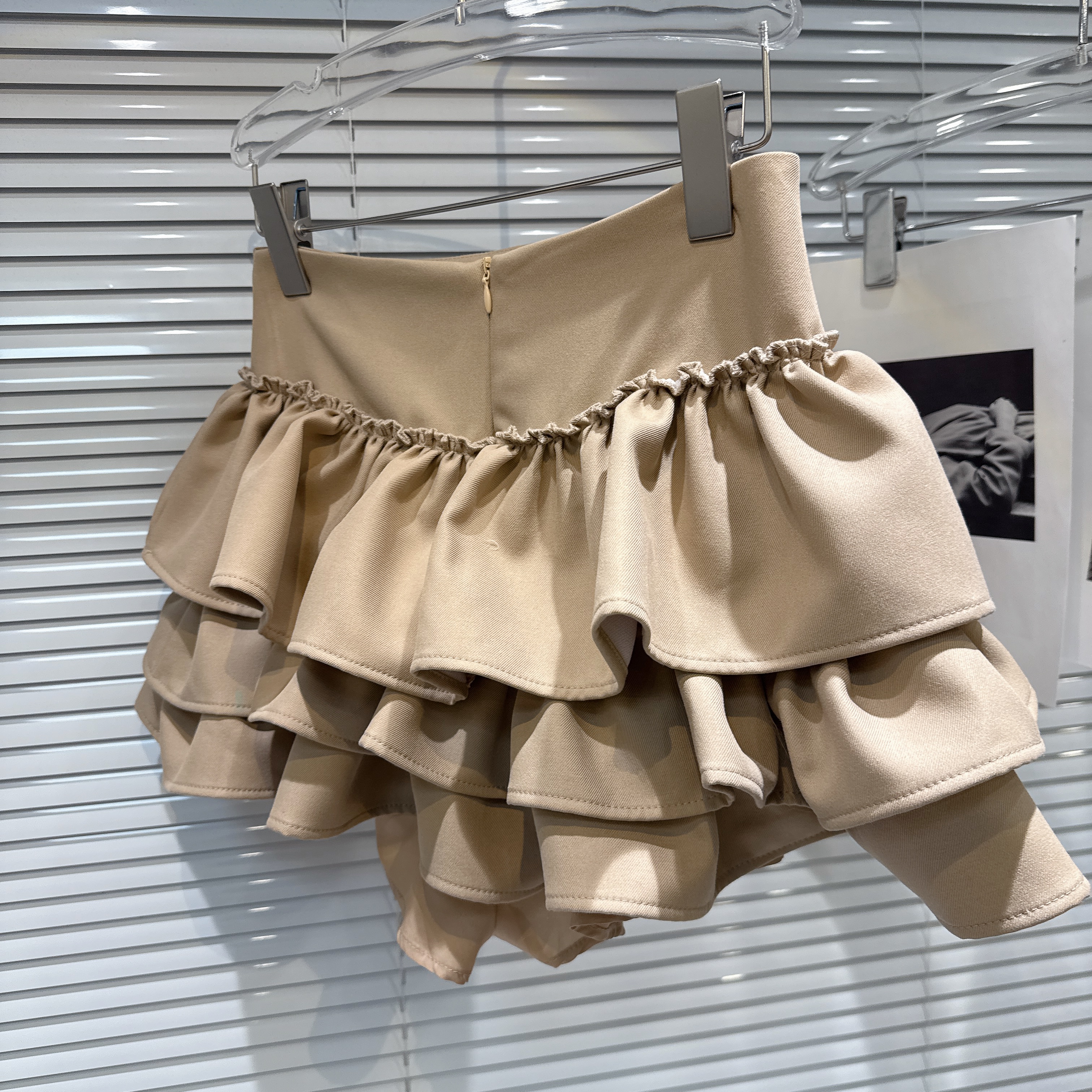 網紅同款2025秋季新款甜辣多層花邊高腰設計蓬蓬裙蛋糕裙小短裙女