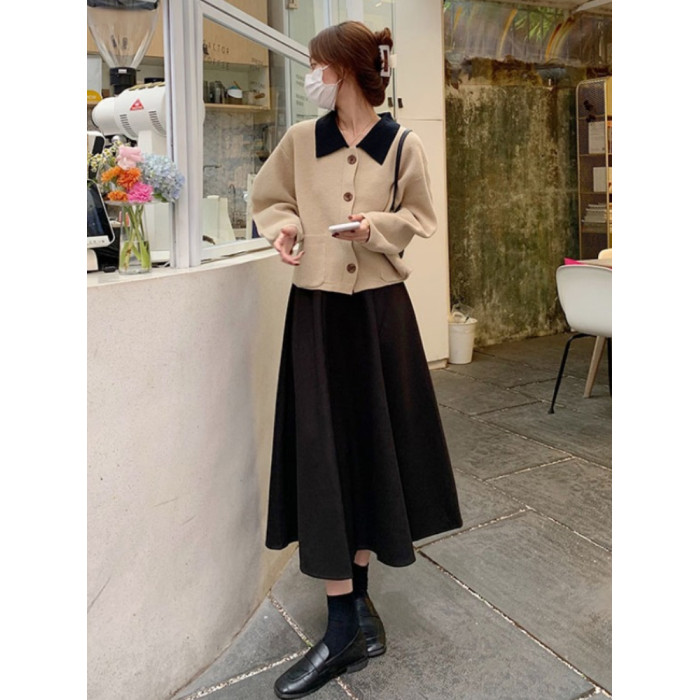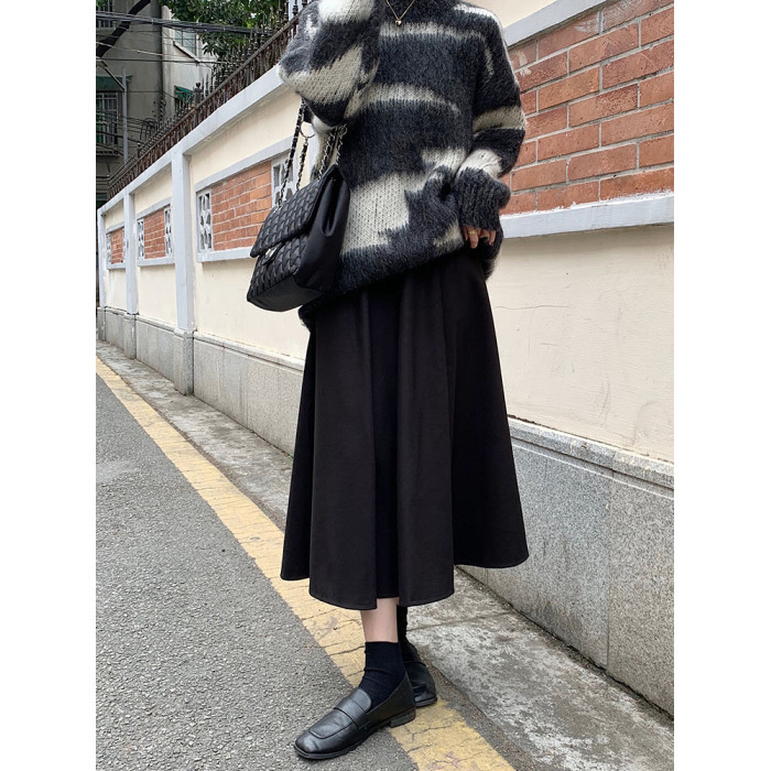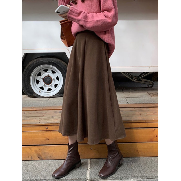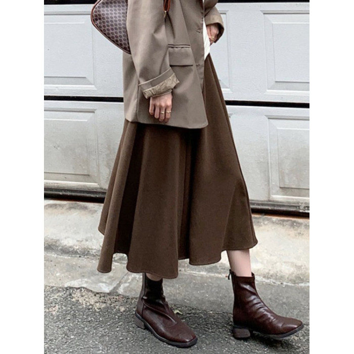 秋冬毛呢咖色半身裙女大碼胖mm微胖棕色美拉德穿搭顯瘦高腰a字裙