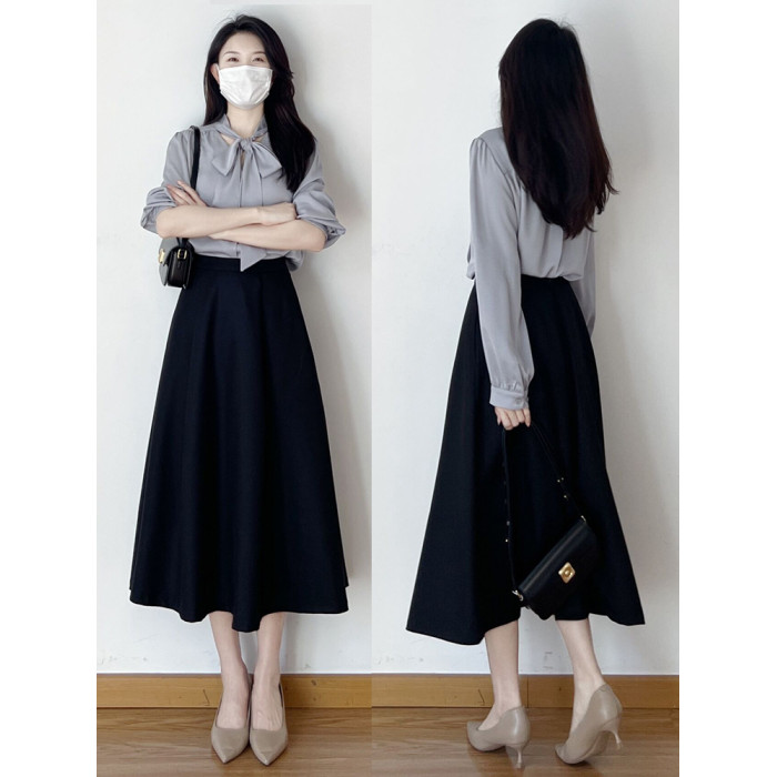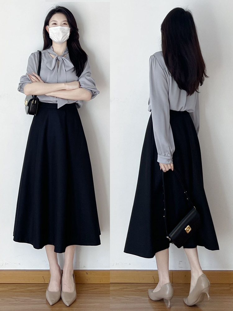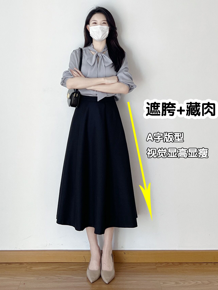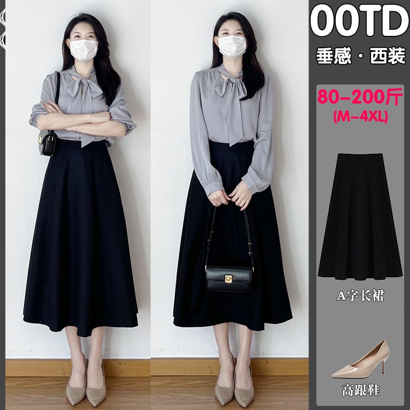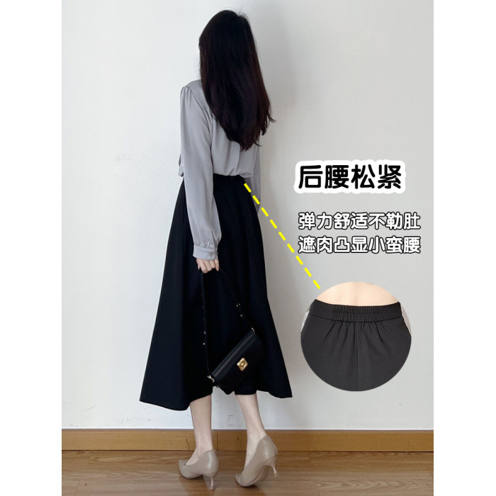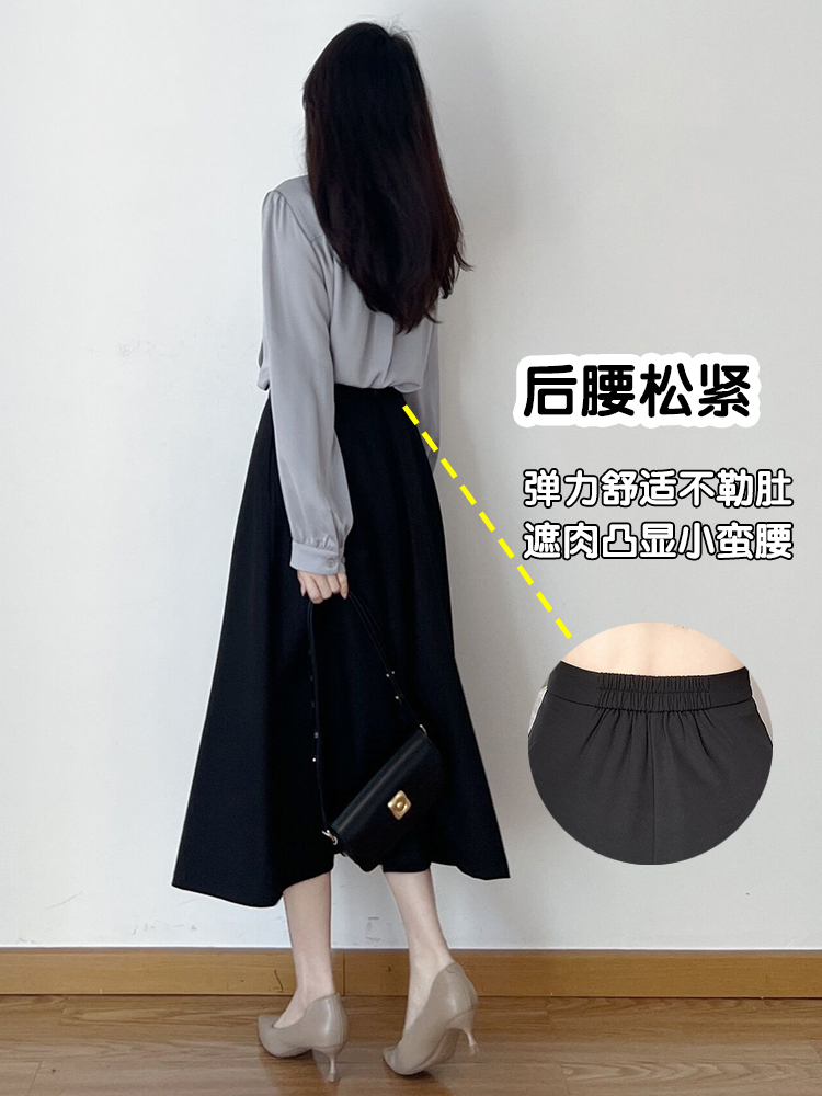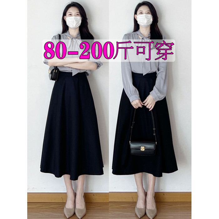黑色職業半身裙女夏中長款大碼高腰顯瘦薄款A字繖裙垂墜感大擺裙