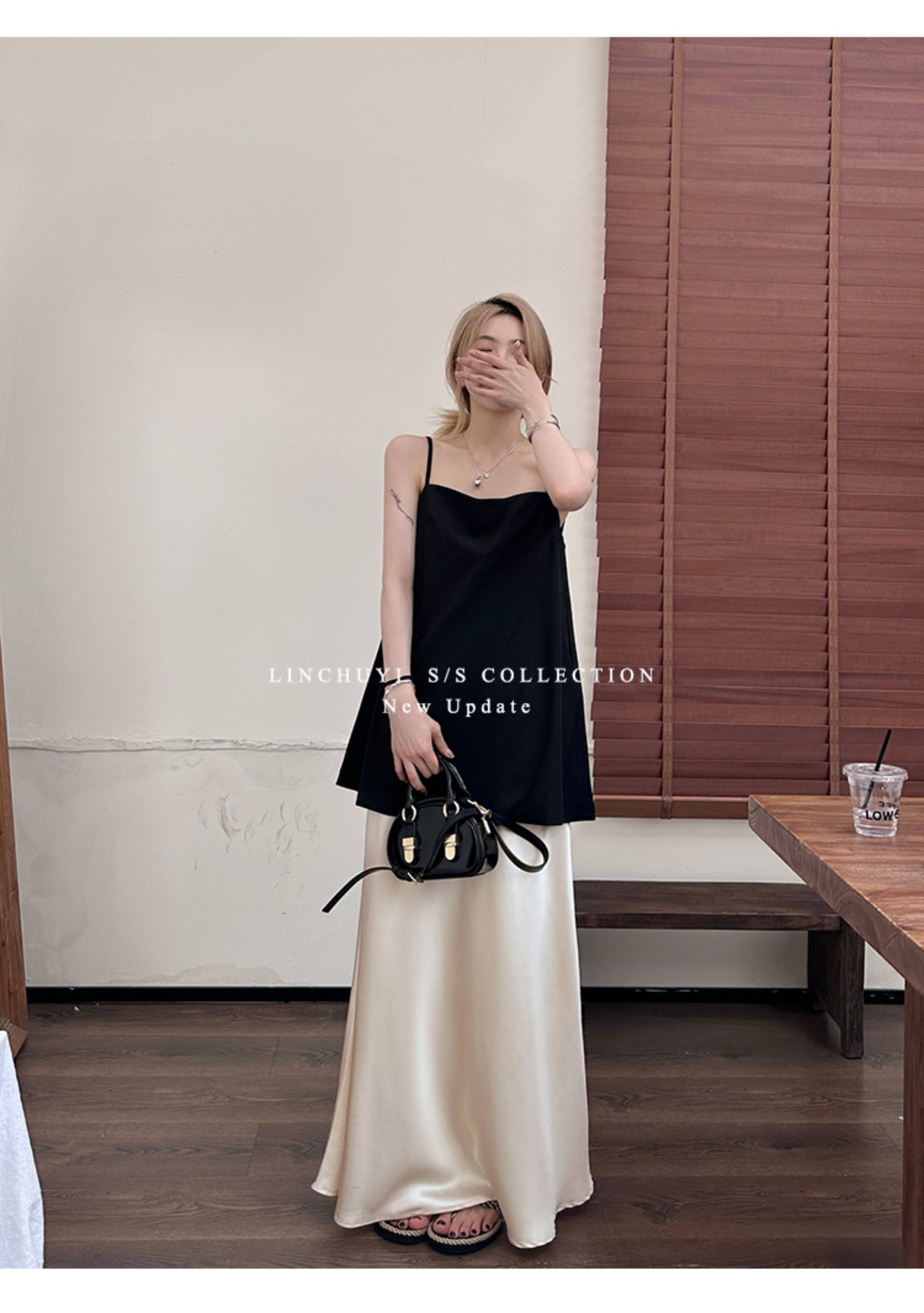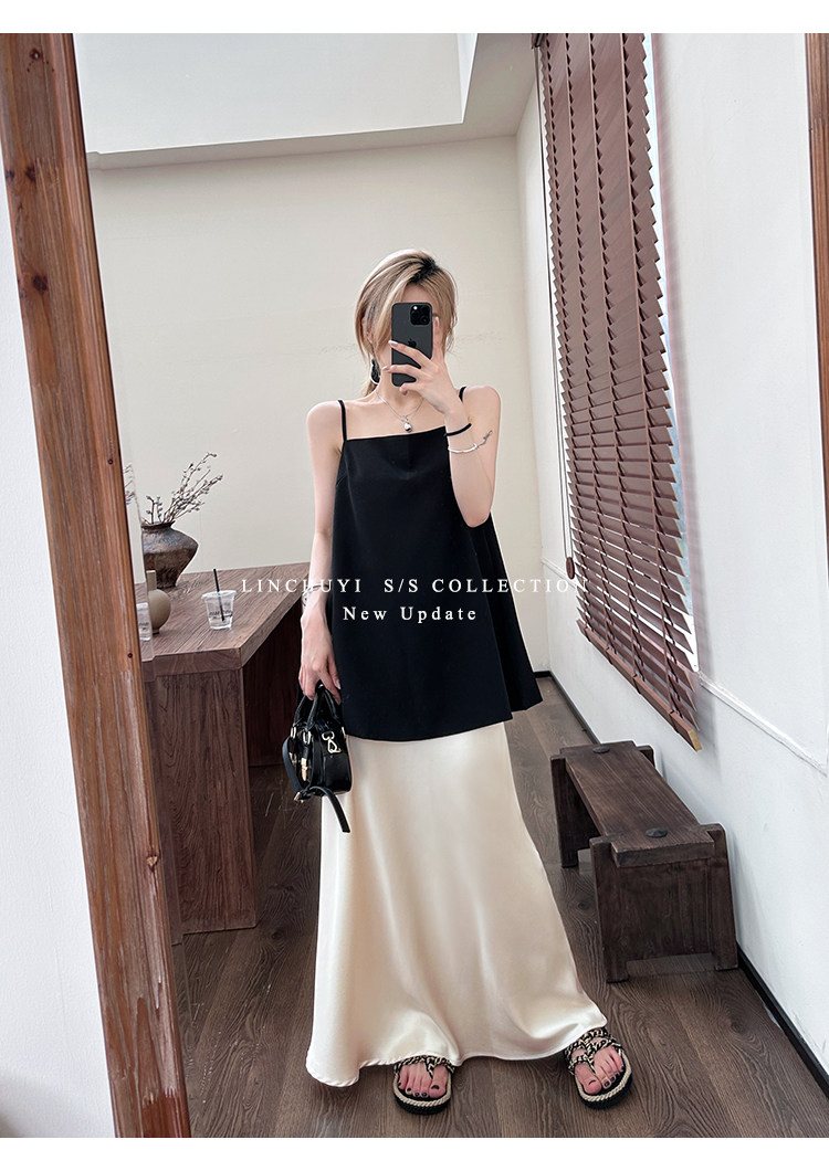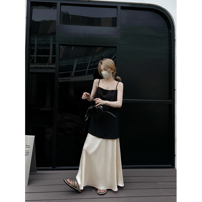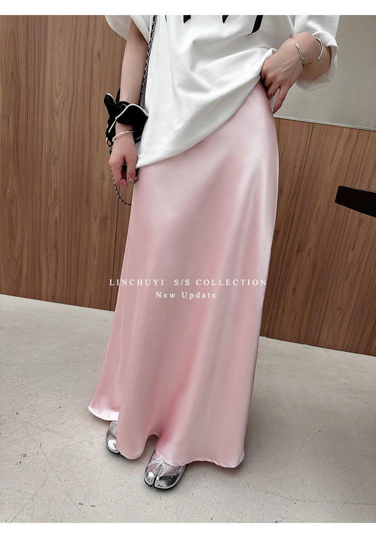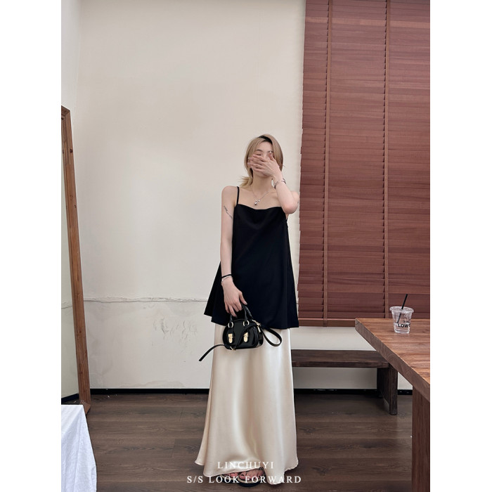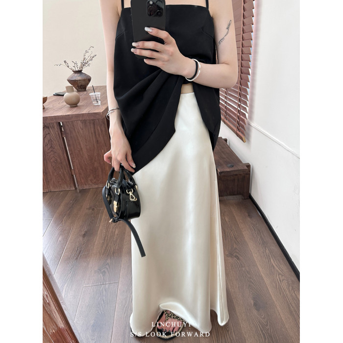 林初一 高級感超好看醋酸緞面半身長裙女夏氣質垂墜顯瘦a字魚尾裙