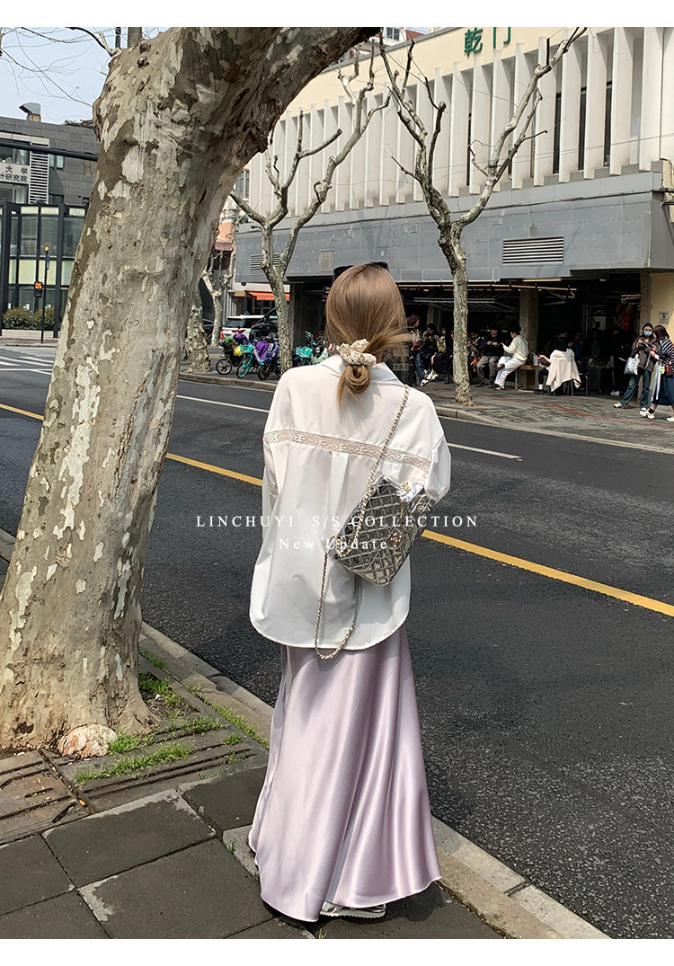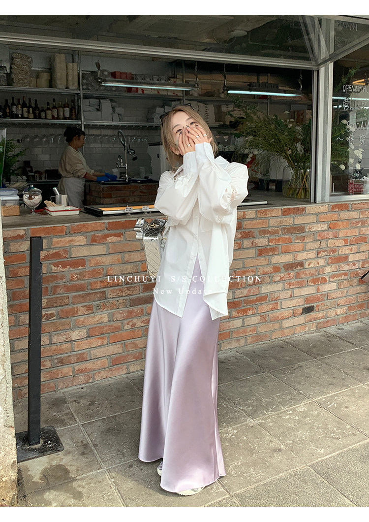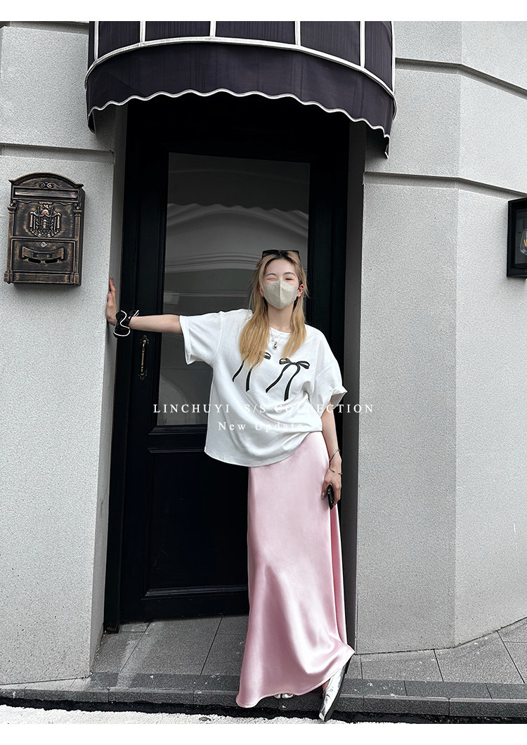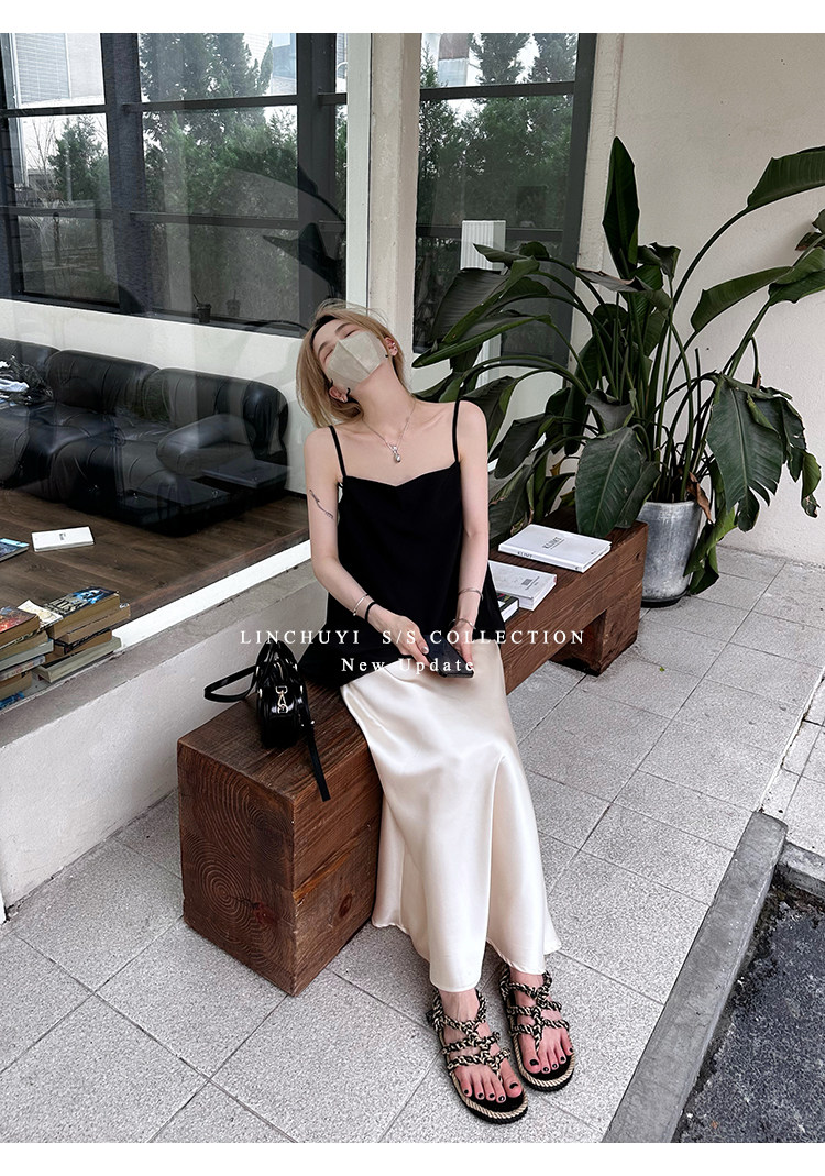 林初一 高級感超好看醋酸緞面半身長裙女夏氣質垂墜顯瘦a字魚尾裙