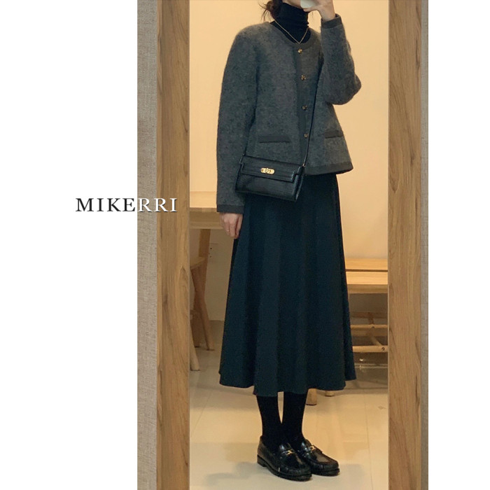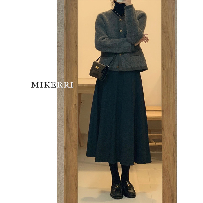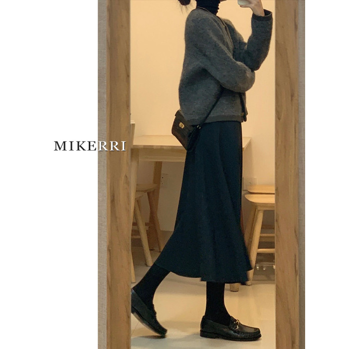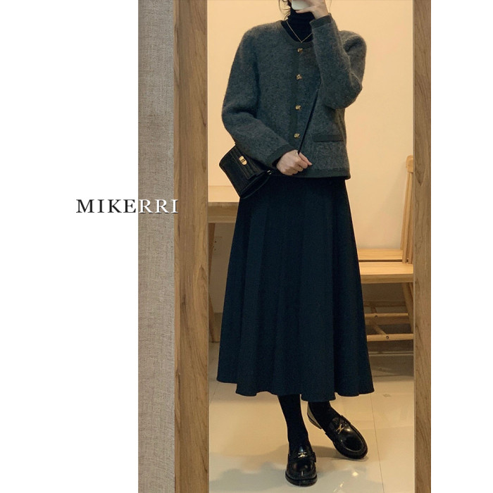 黑色毛呢半身裙女秋冬大碼胖mm遮肚顯瘦梨型身材中長款a字繖裙子