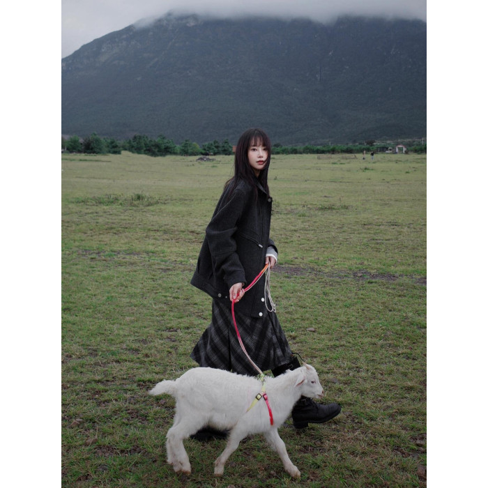 美式復古灰色格紋半身裙女2025春秋新款ins潮百搭休閒格子中長裙