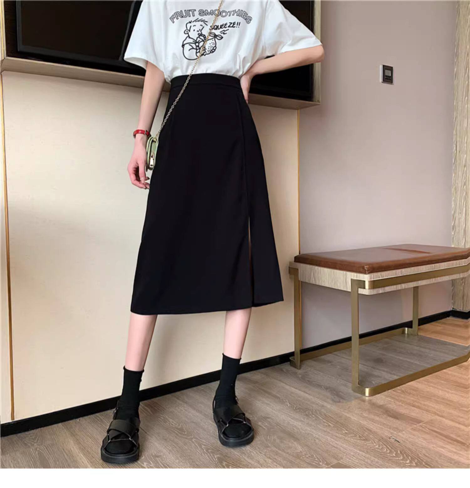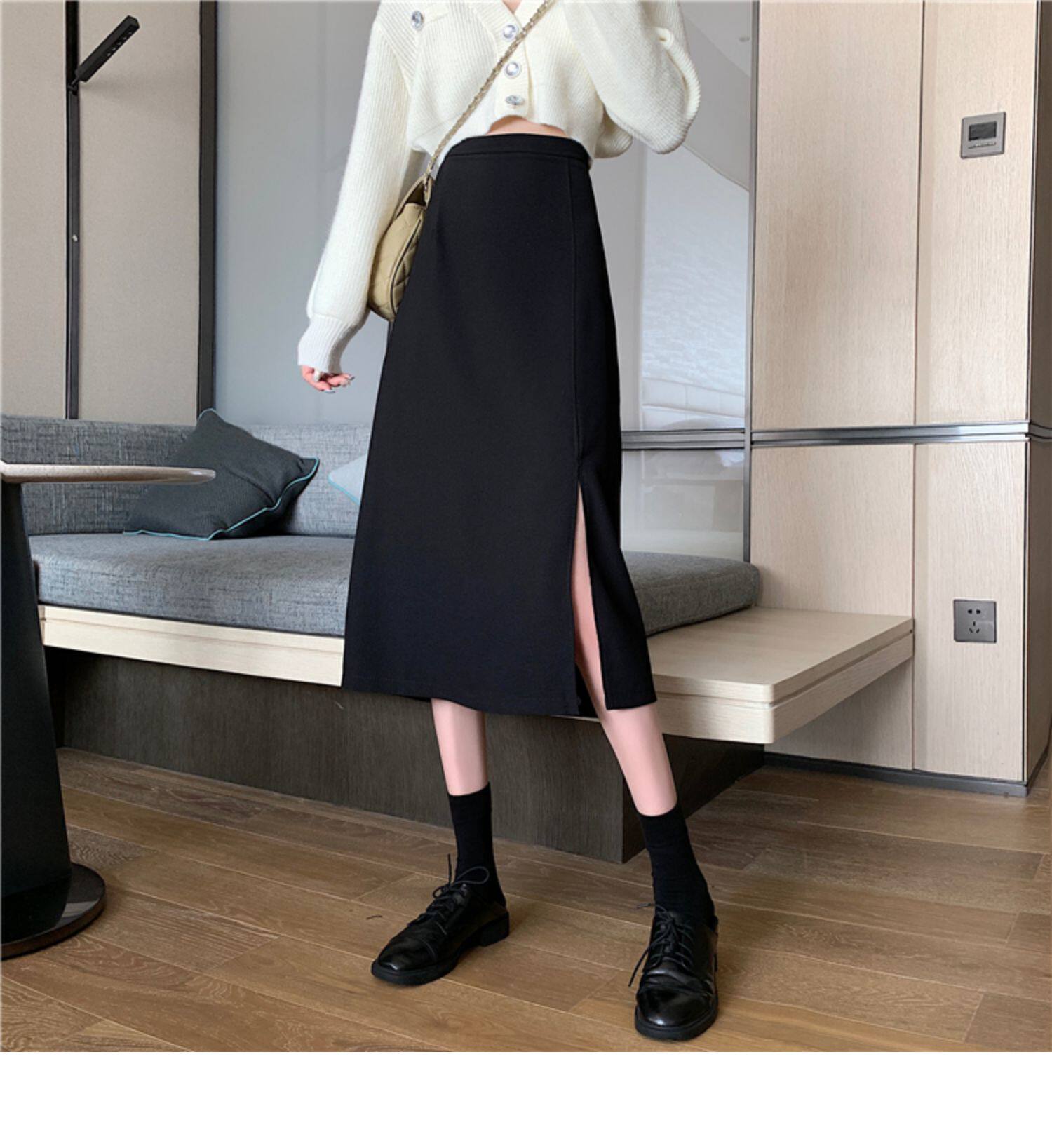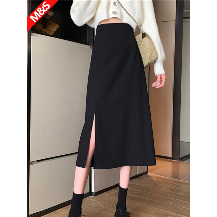黑色半身裙開叉夏裙子2025秋季職場包臀a字包臀筒裙西裝直筒長裙