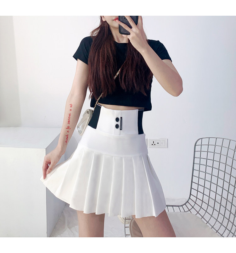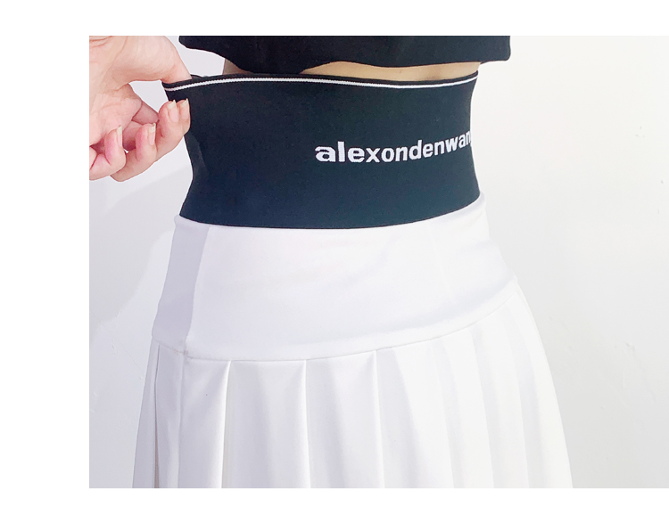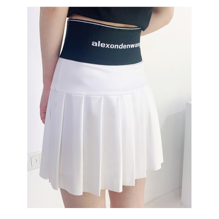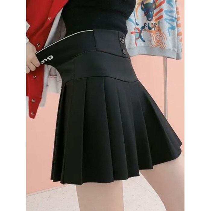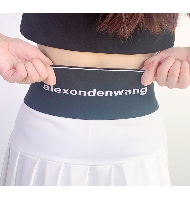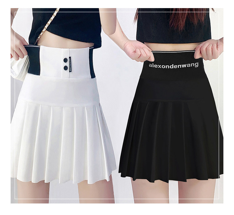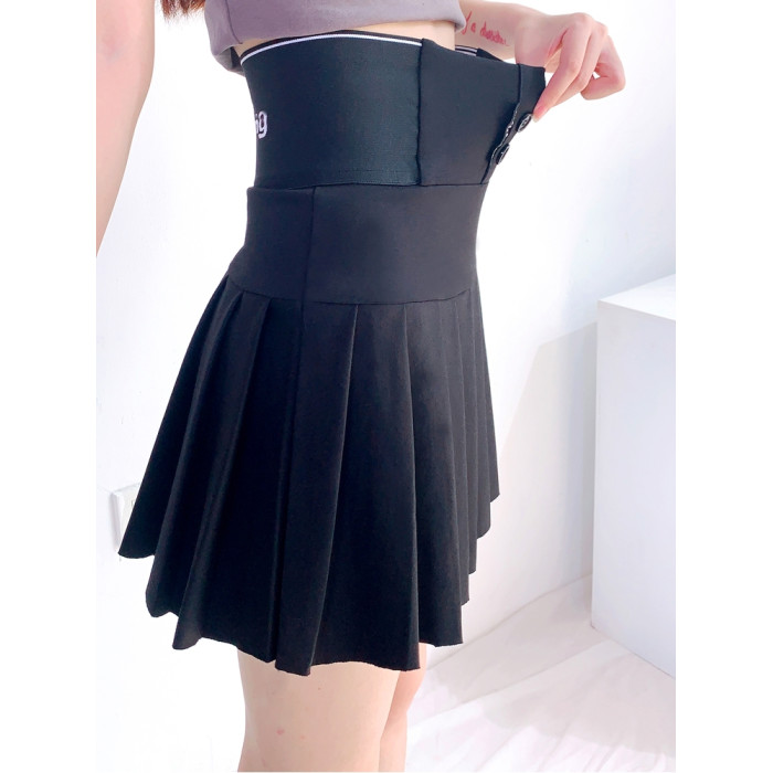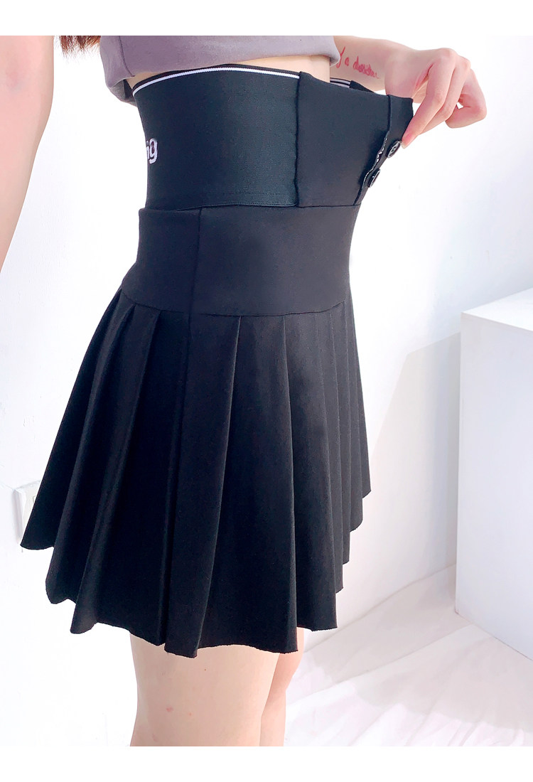 彈力松緊腰百褶裙女春夏字母收腹半身裙黑色高腰顯瘦a字抗皺短裙