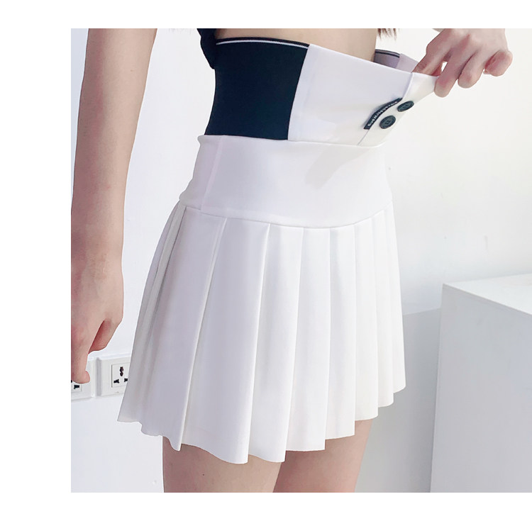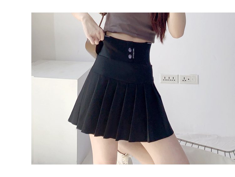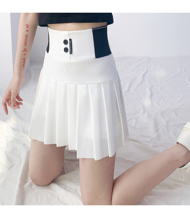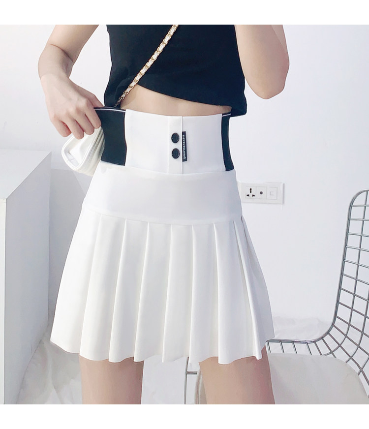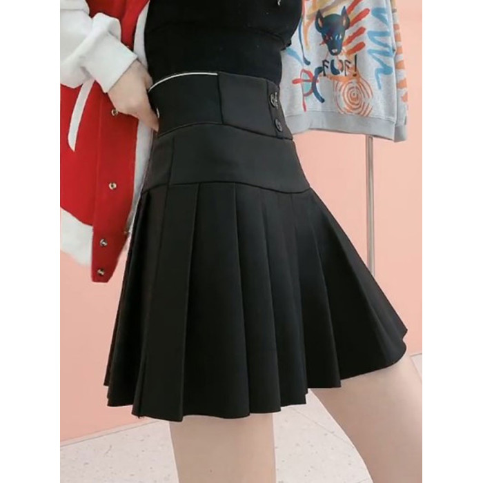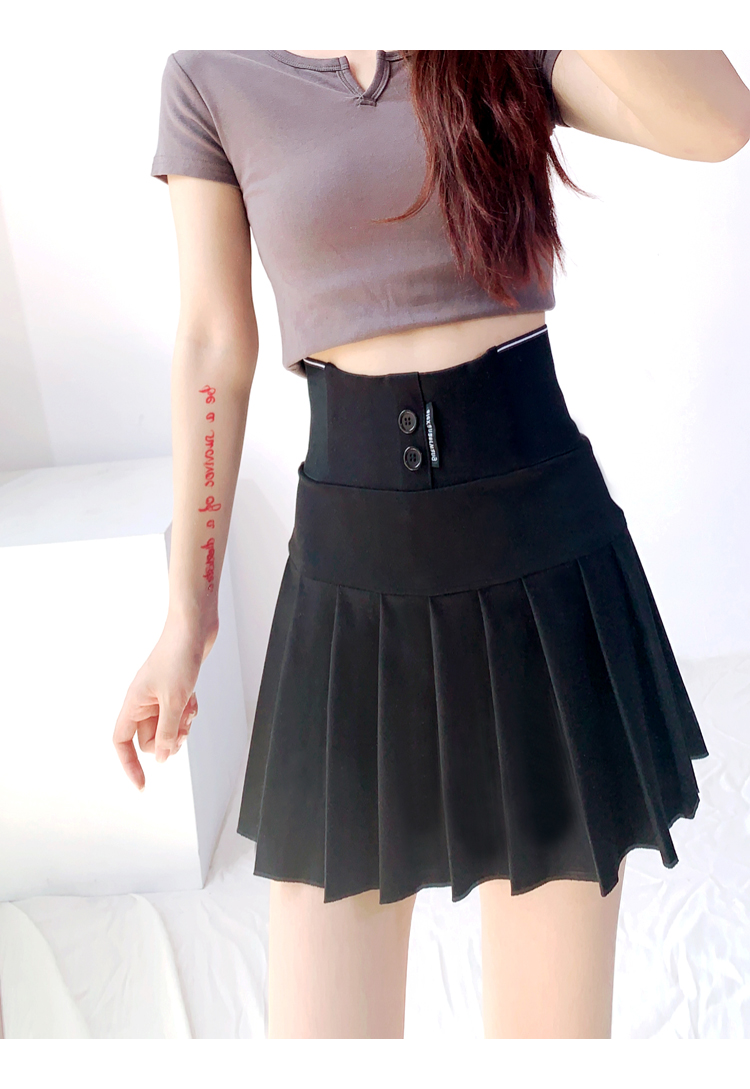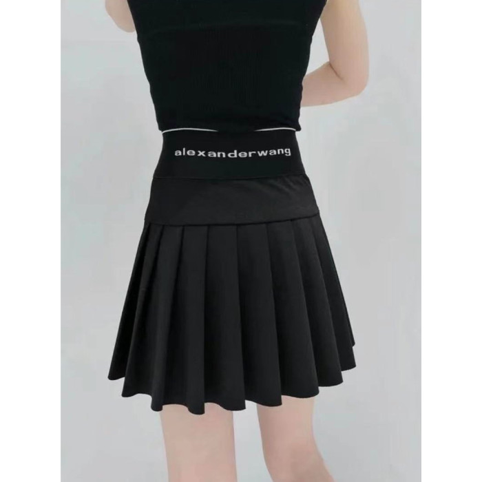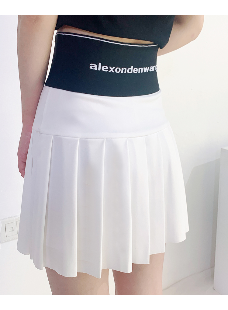彈力松緊腰百褶裙女春夏字母收腹半身裙黑色高腰顯瘦a字抗皺短裙
