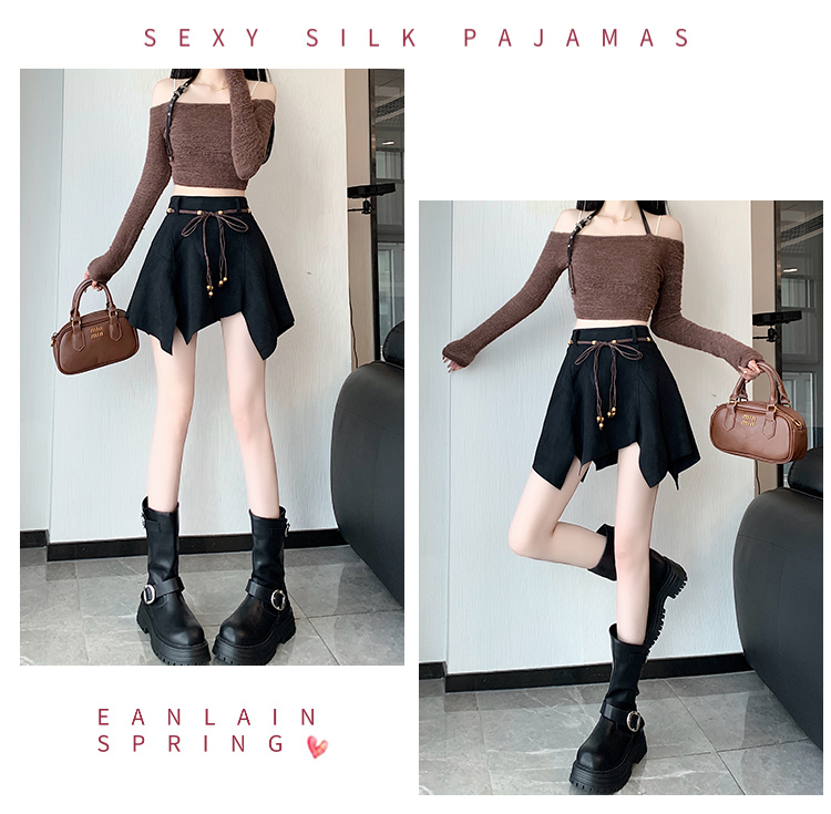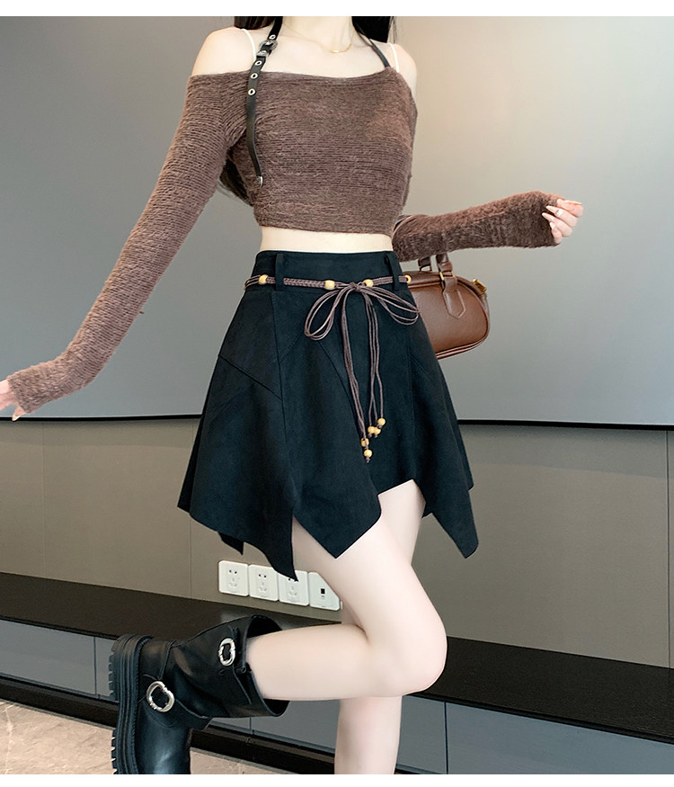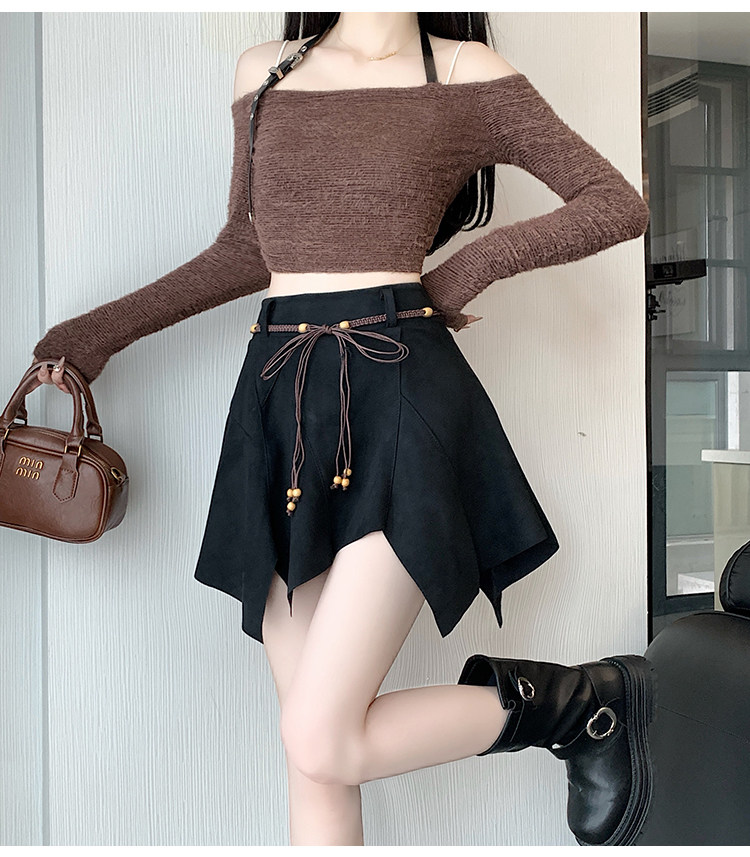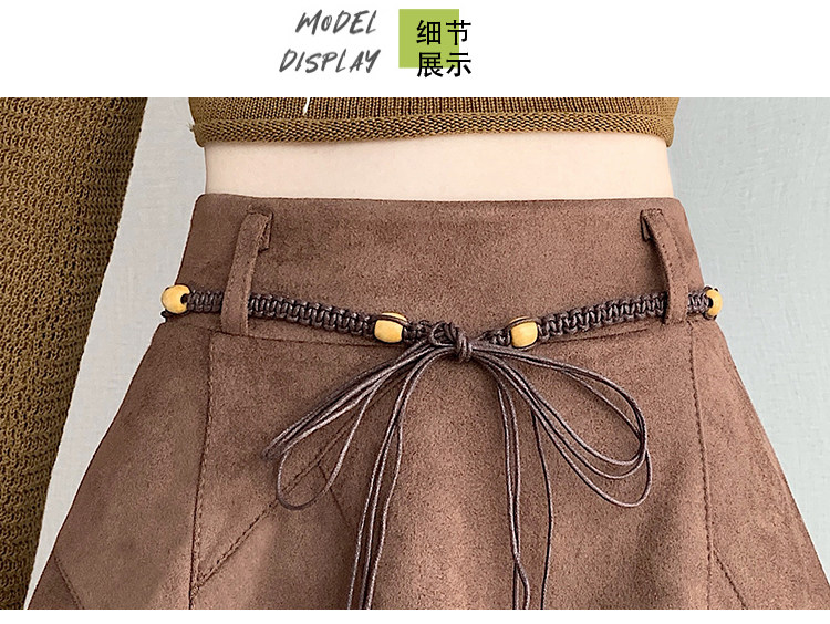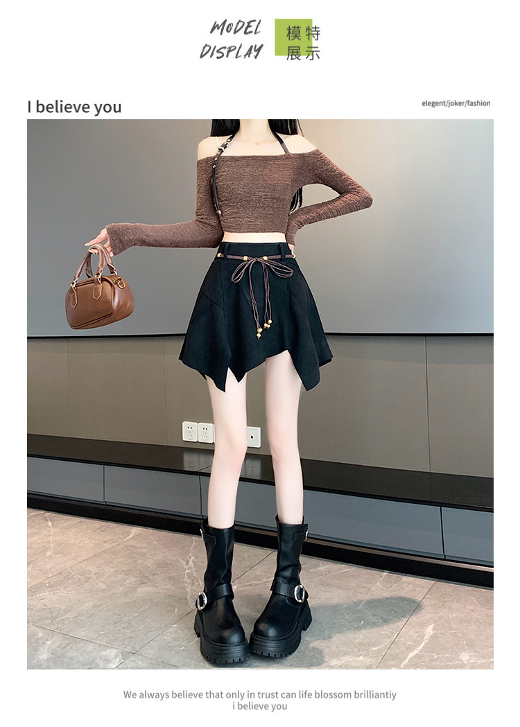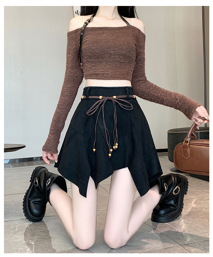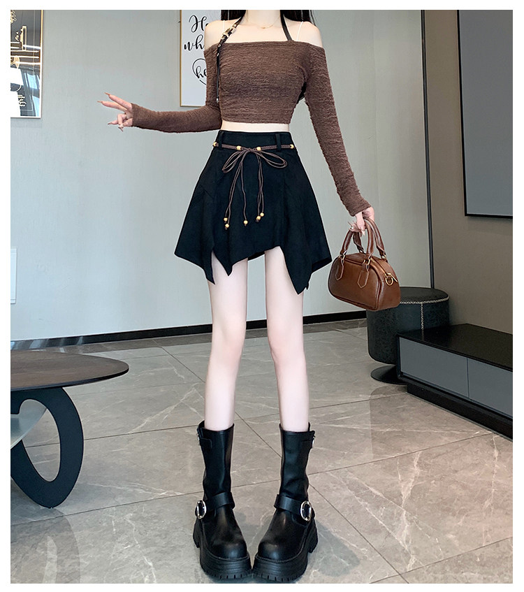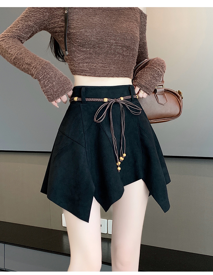 美式復古咖色麂皮高腰半身裙女早秋設計感不規則顯瘦a字包臀短裙