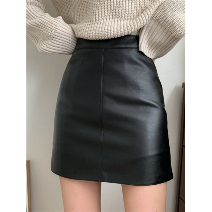 秋季2025辣妹黑色a字小皮裙半身裙女高腰包臀設計感修身pu短裙子