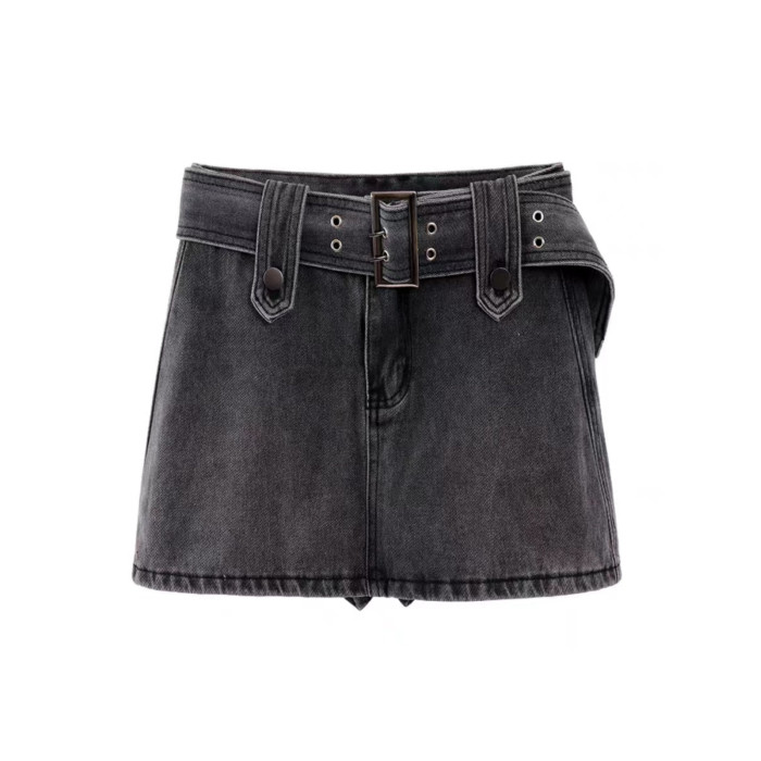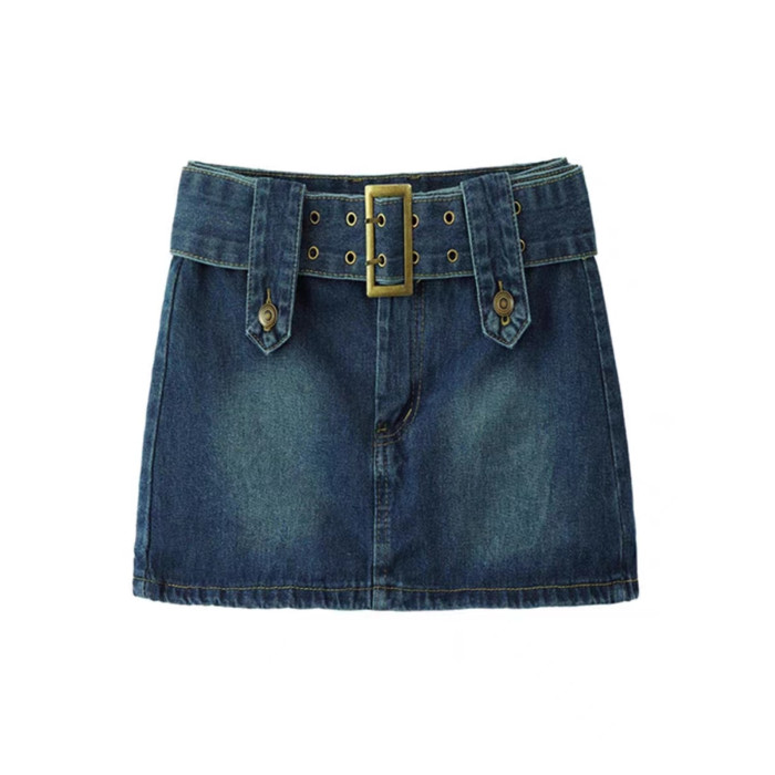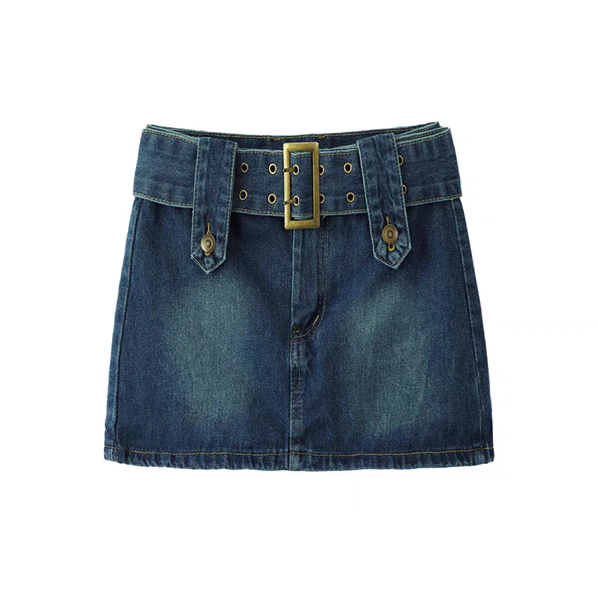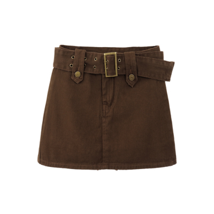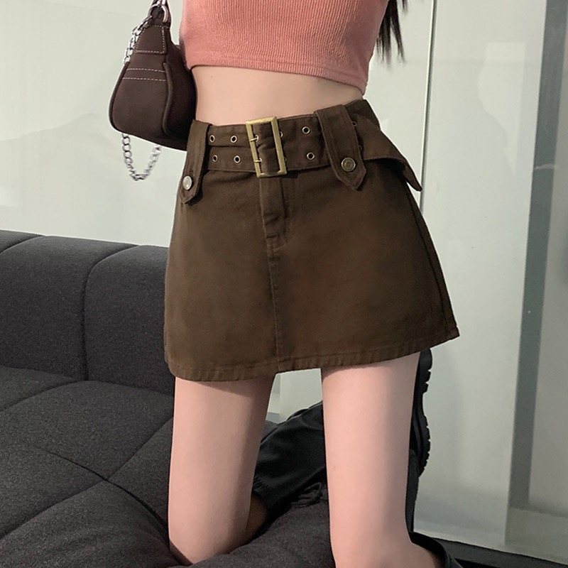 大胖妹妹美式復古棕色半身裙牛仔短裙褲女春夏設計感顯瘦包臀裙子