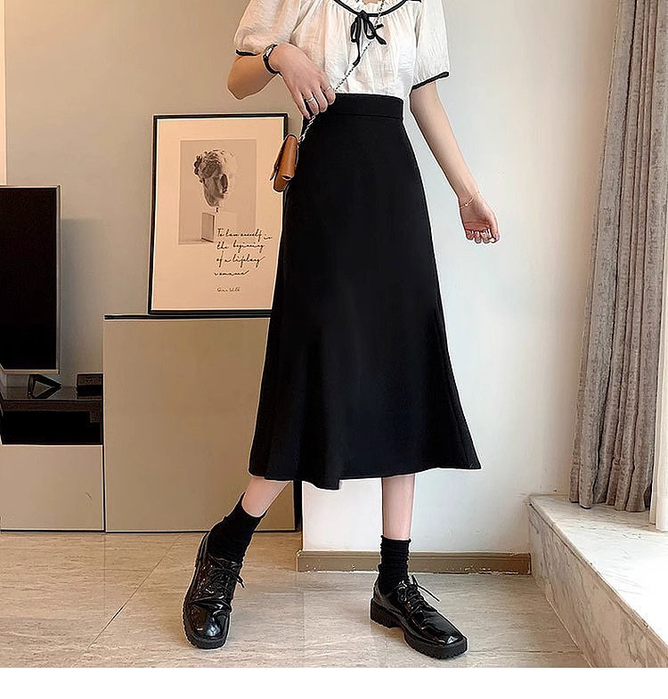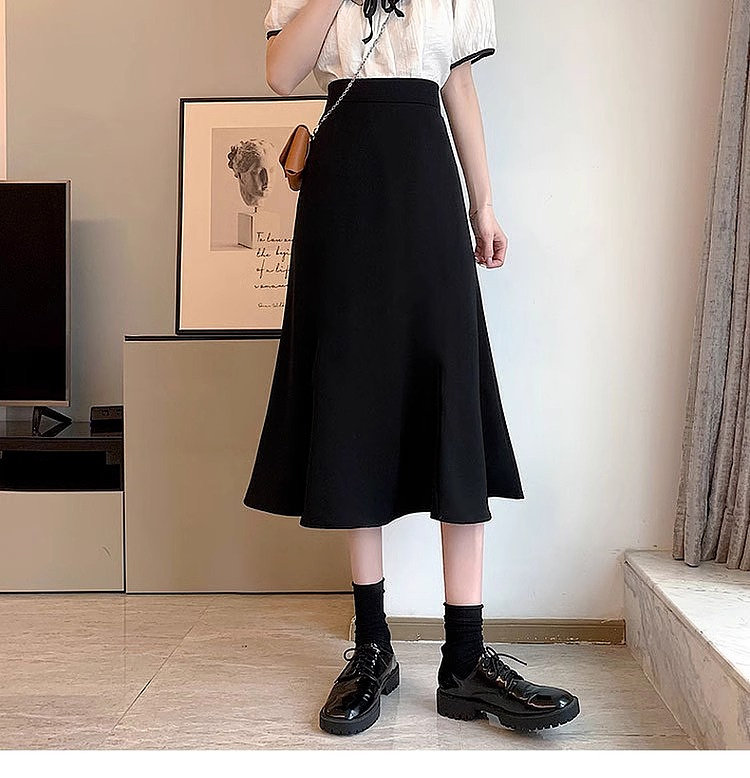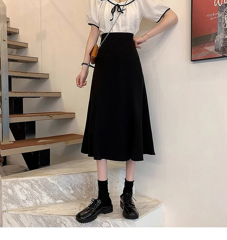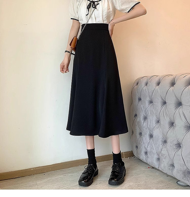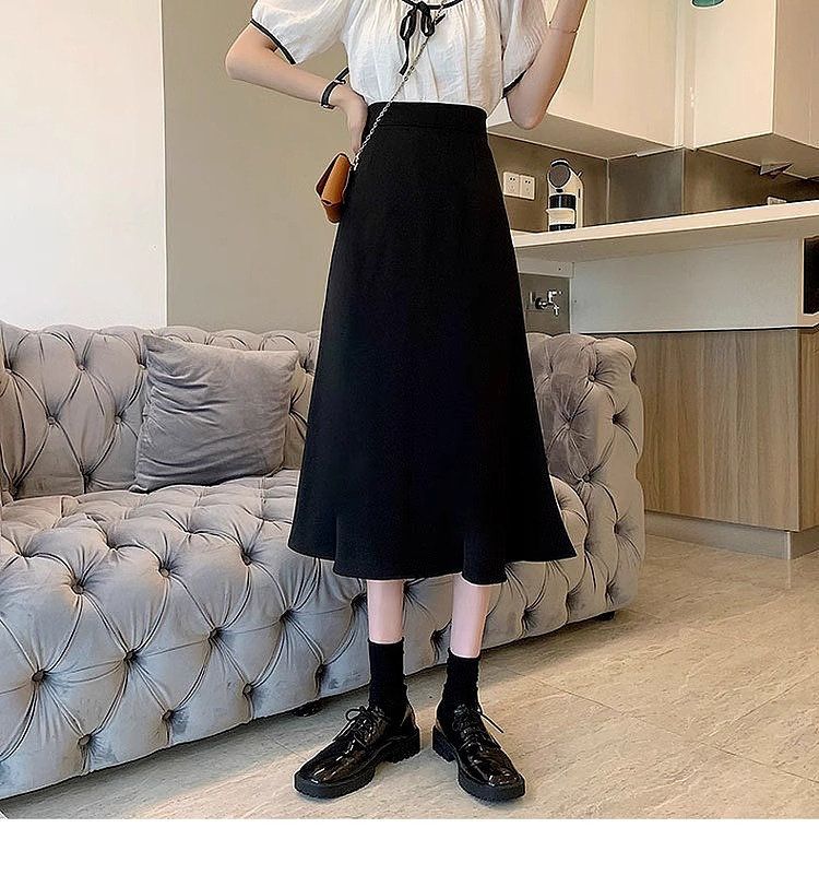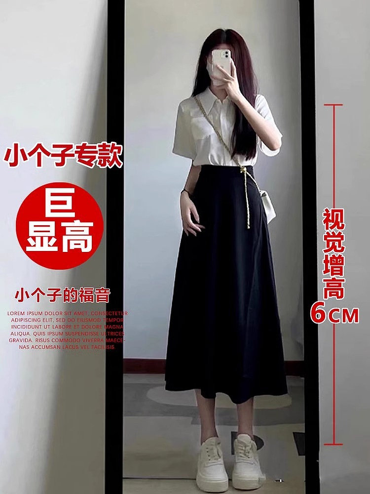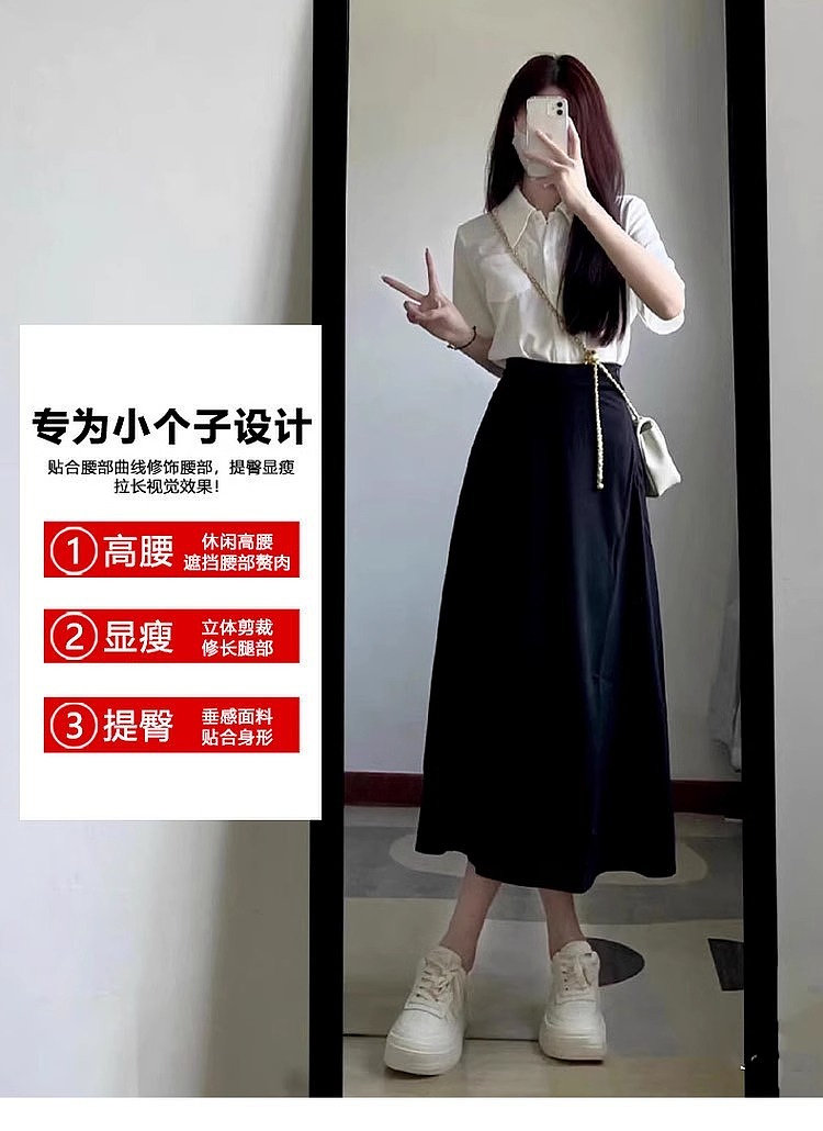 黑色西裝半身裙145xxs矮小個子高腰顯瘦大擺裙a字繖裙百搭中長款