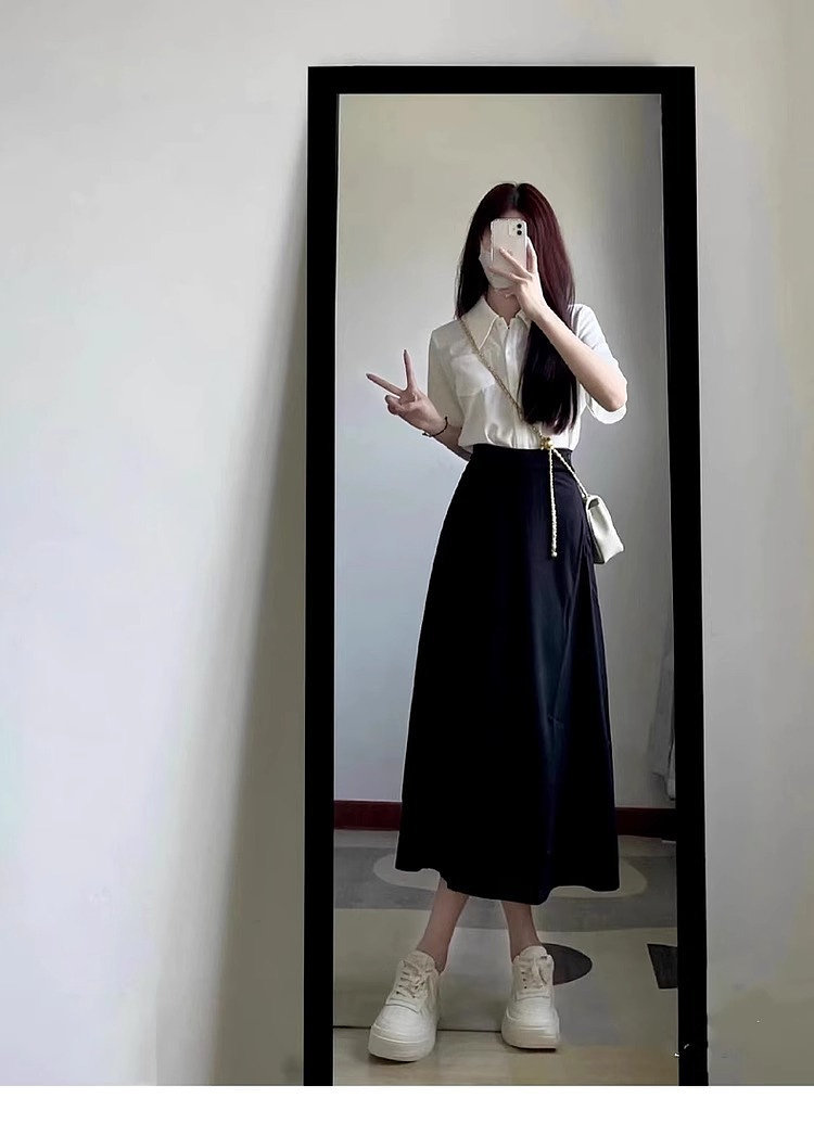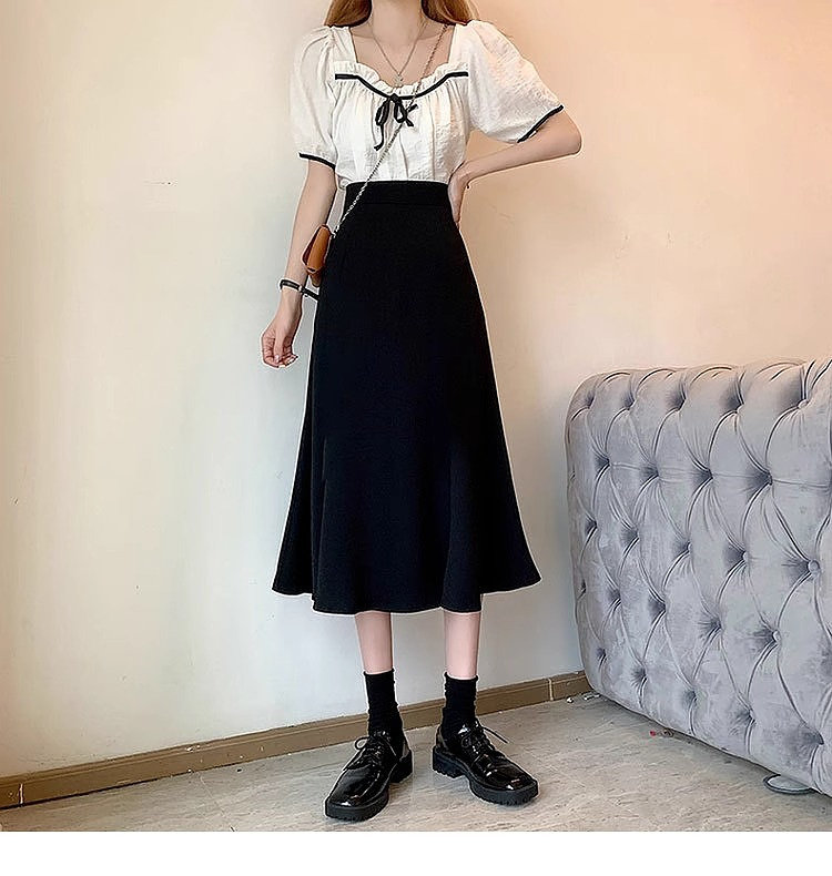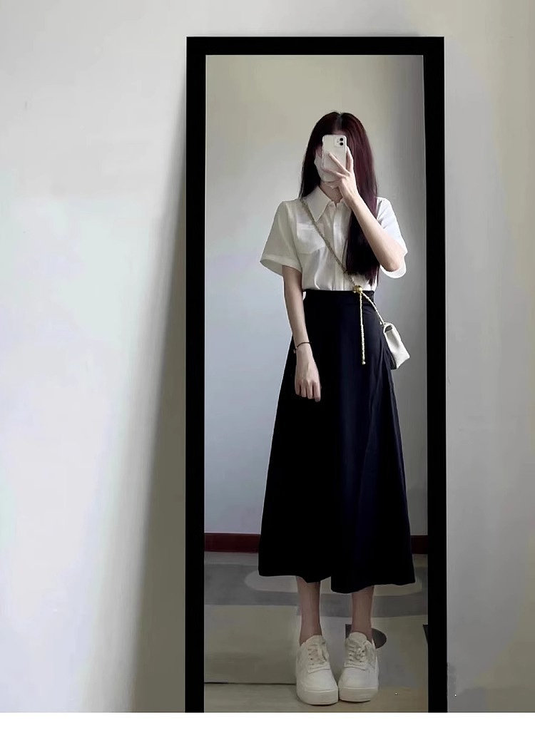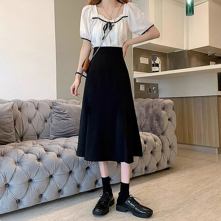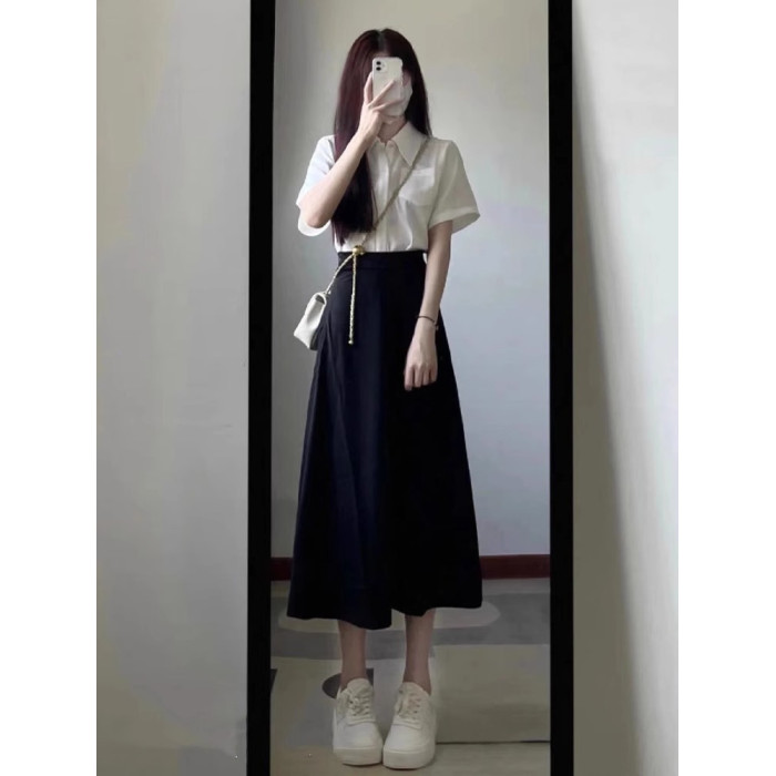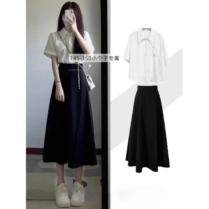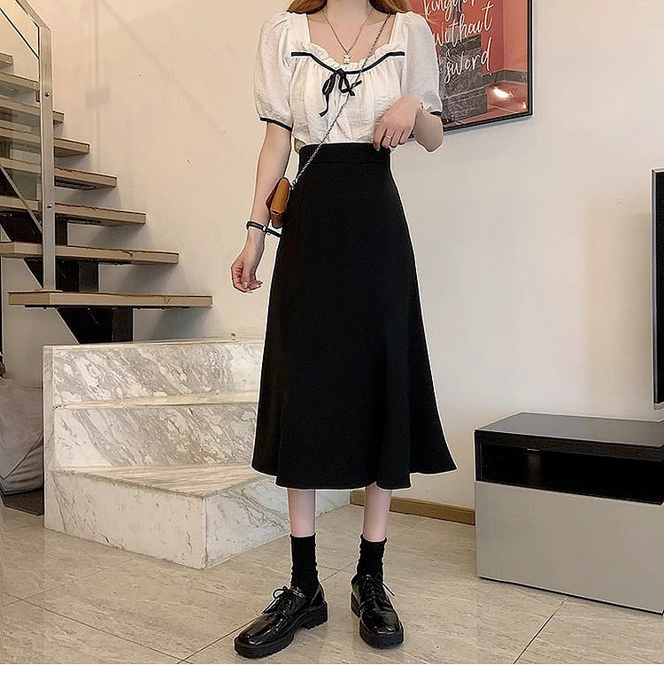 黑色西裝半身裙145xxs矮小個子高腰顯瘦大擺裙a字繖裙百搭中長款