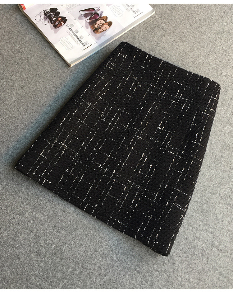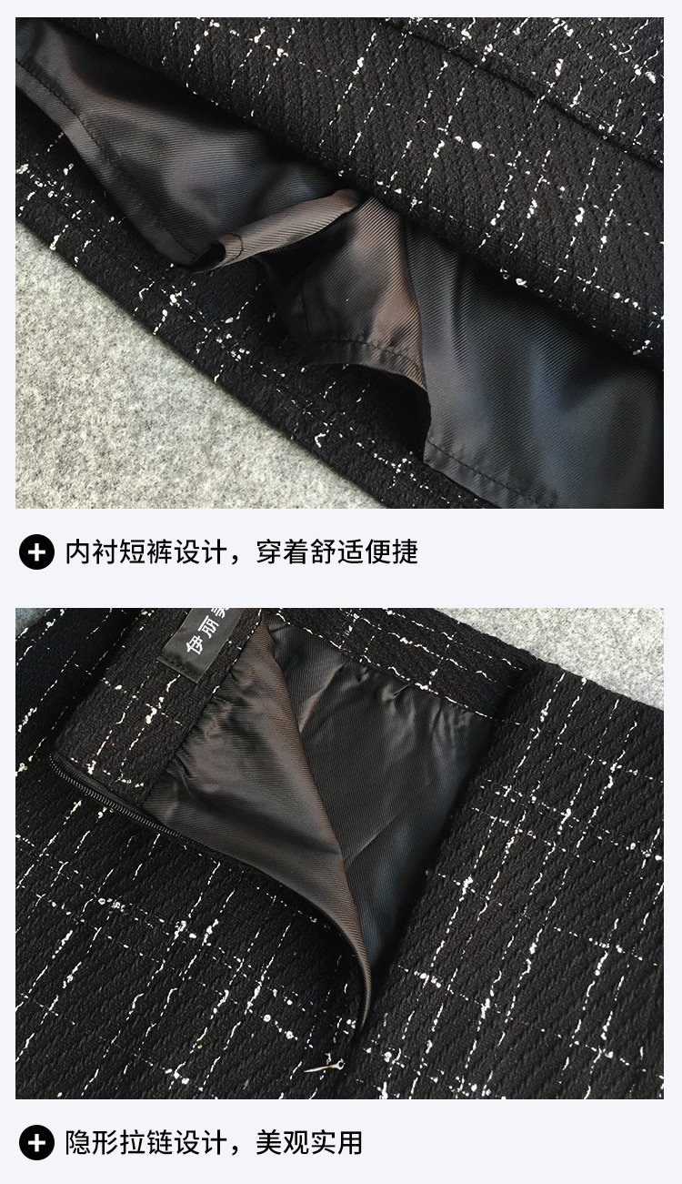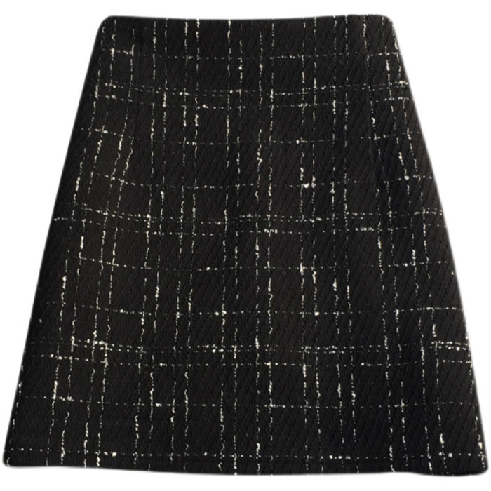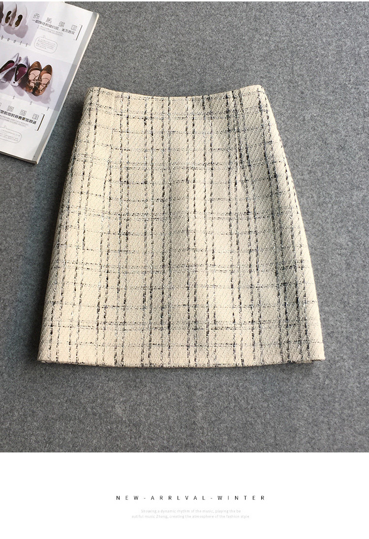 高腰小香風金絲格子毛呢短裙秋冬新顯瘦a字包臀裙大碼遮肉半身裙