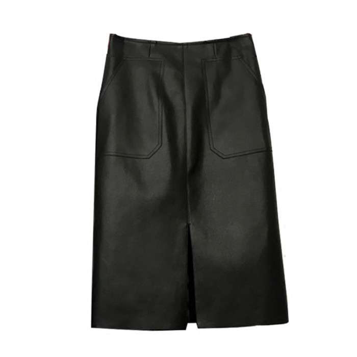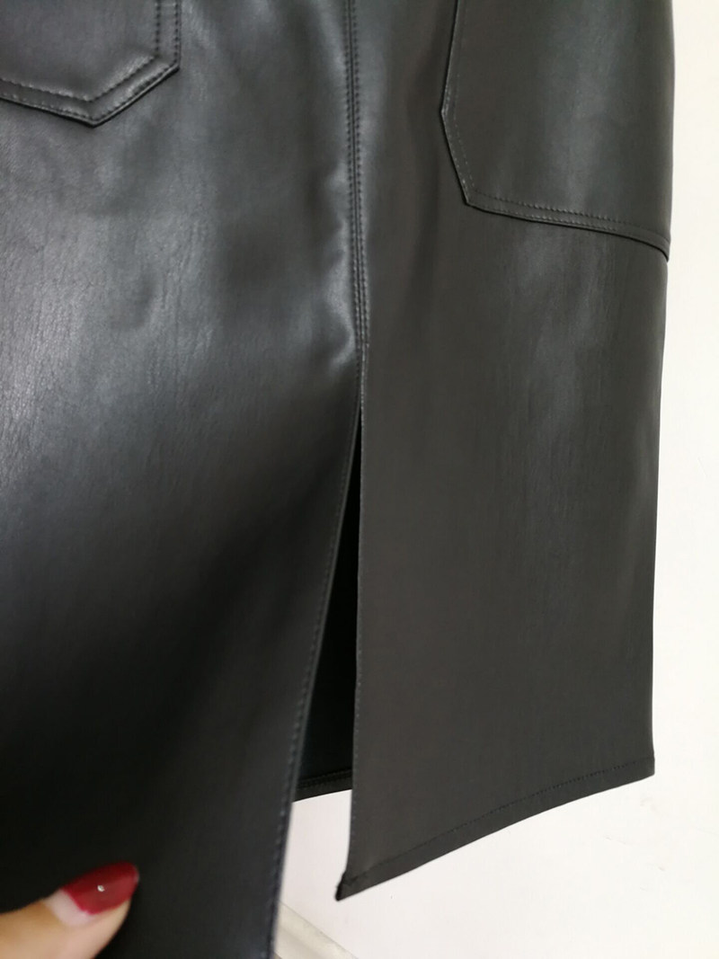 2025秋季爆款小衆設計高腰裙前開叉皮裙顯瘦包臀裙中裙半身裙大碼