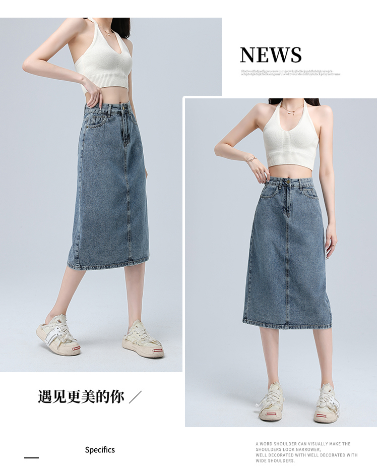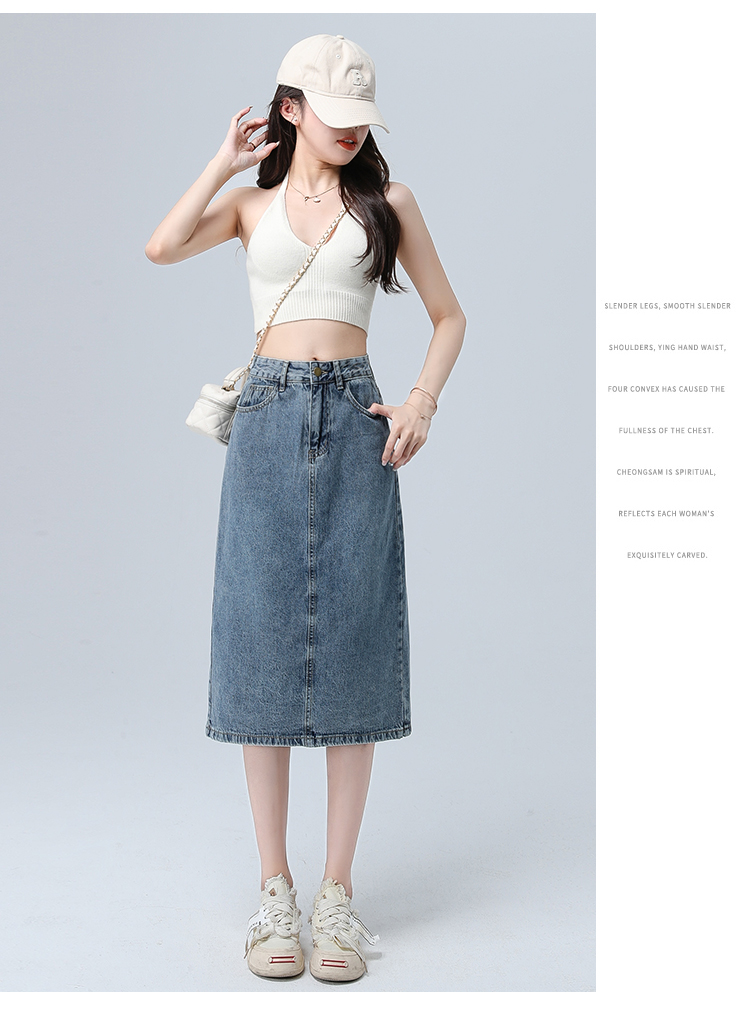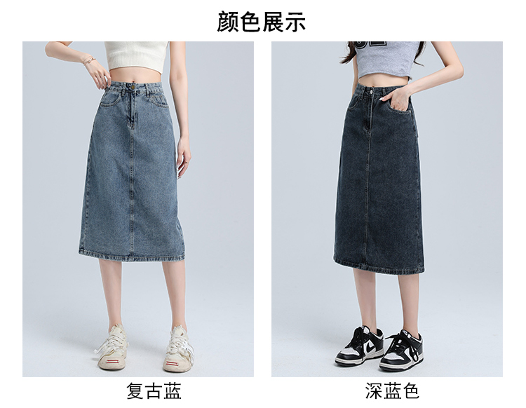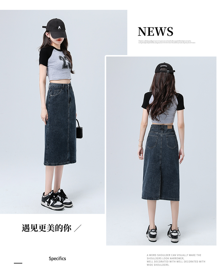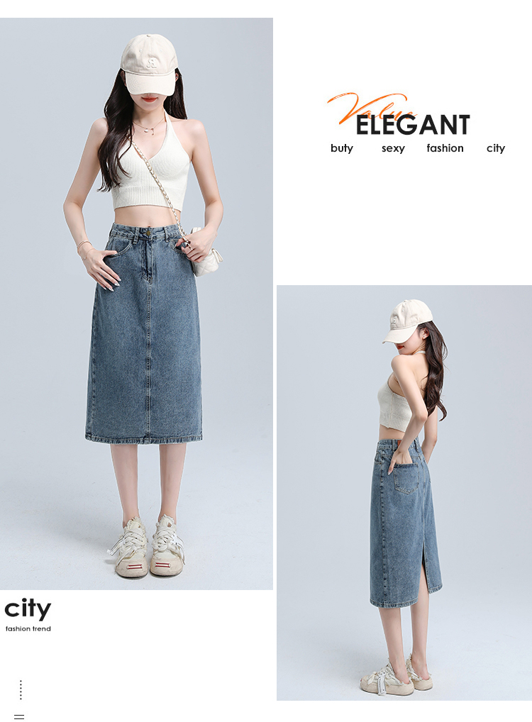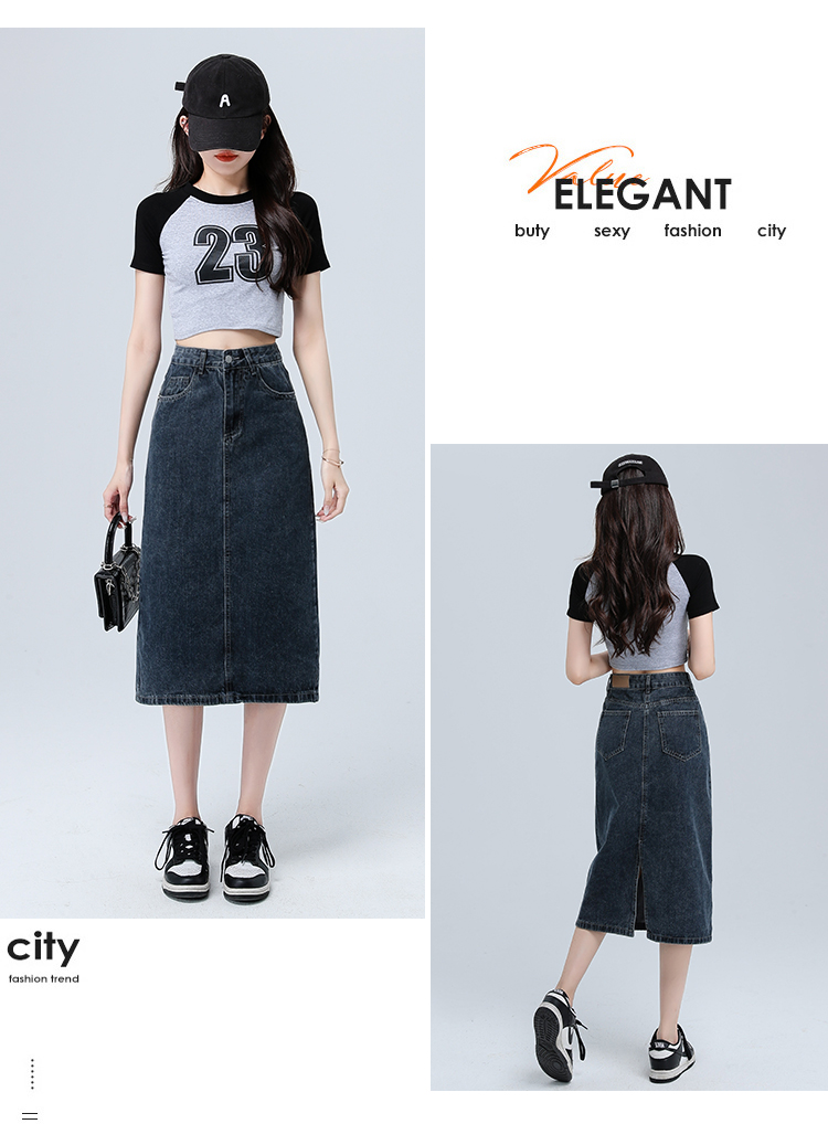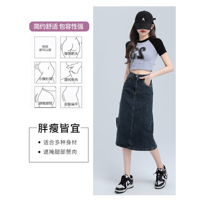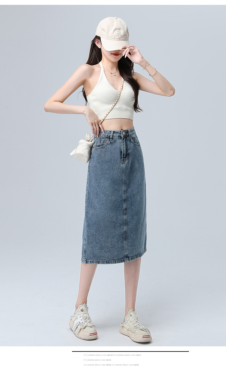 後開叉牛仔半身裙女小個子夏裝搭配顯高中長款a字包臀裙子145xxs