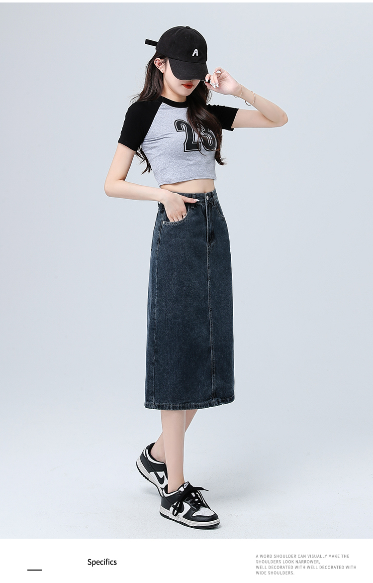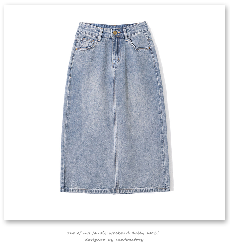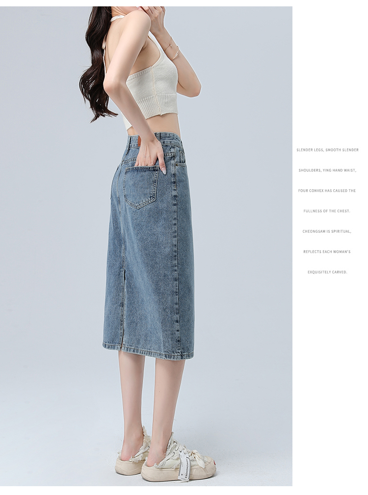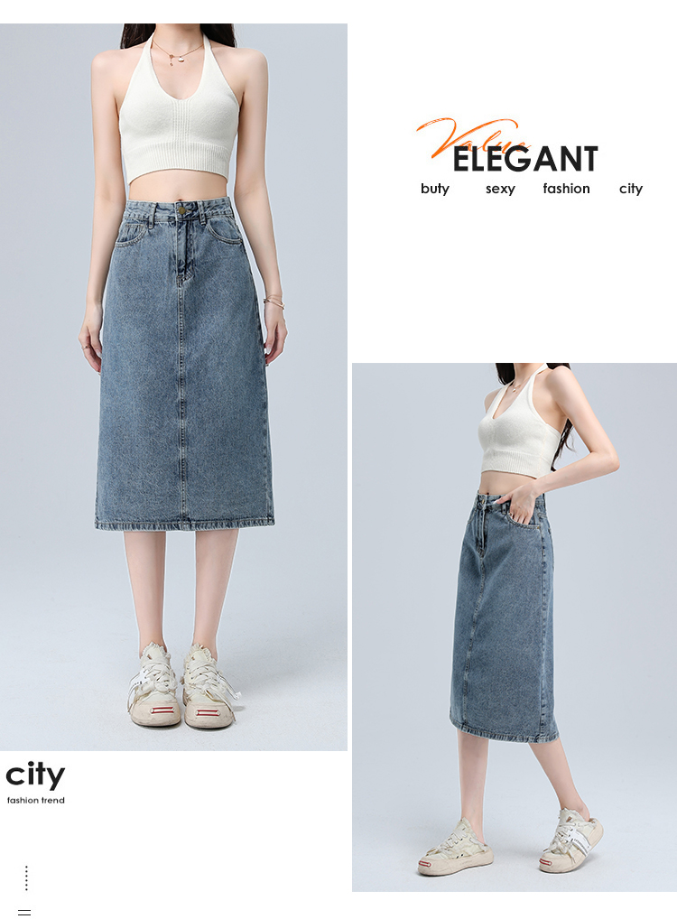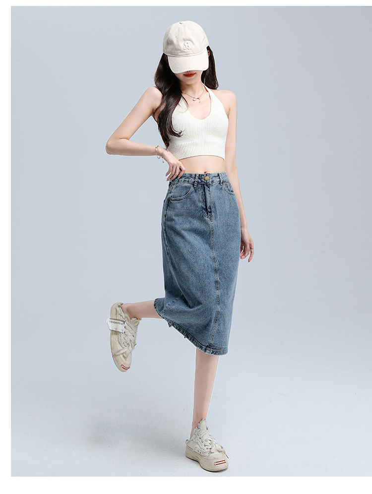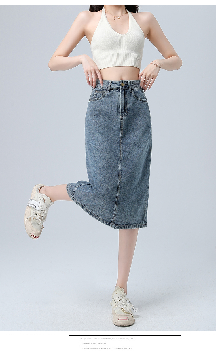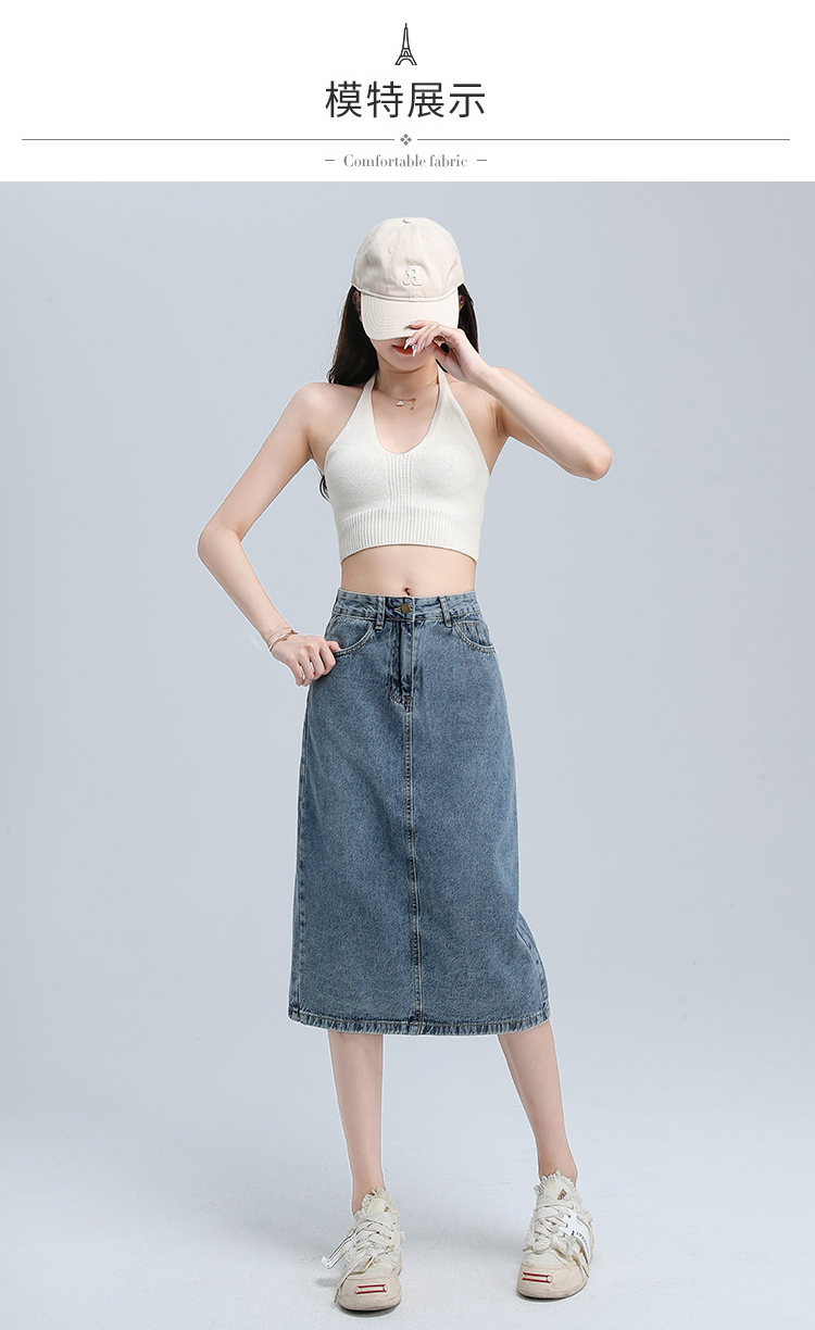 後開叉牛仔半身裙女小個子夏裝搭配顯高中長款a字包臀裙子145xxs