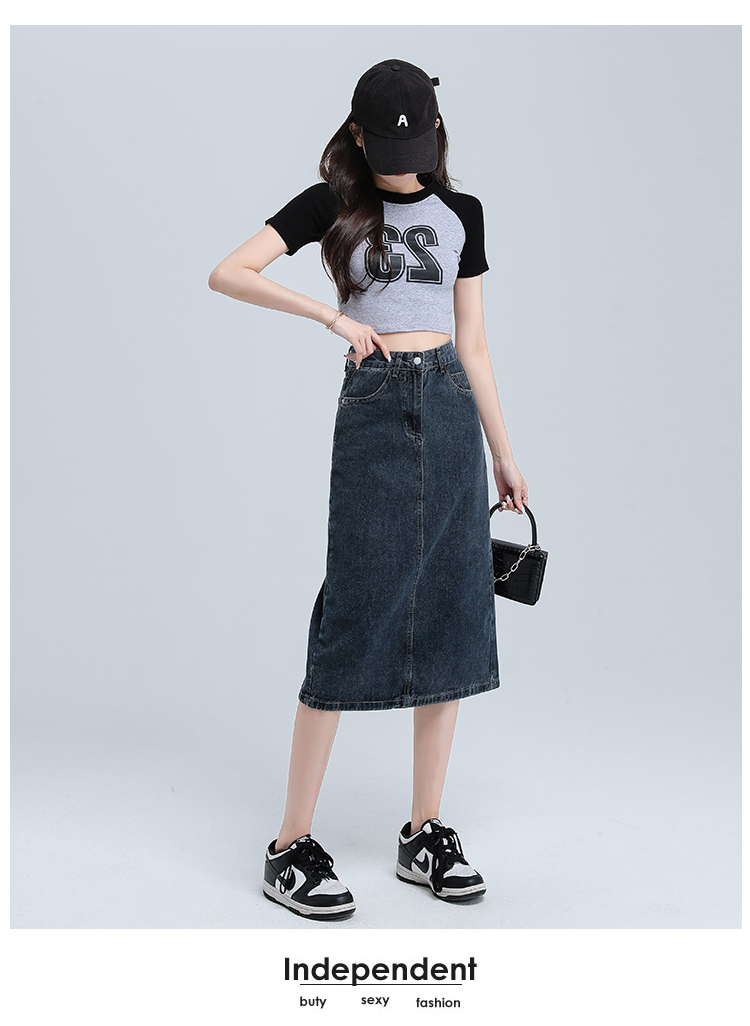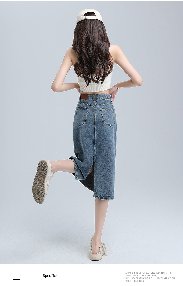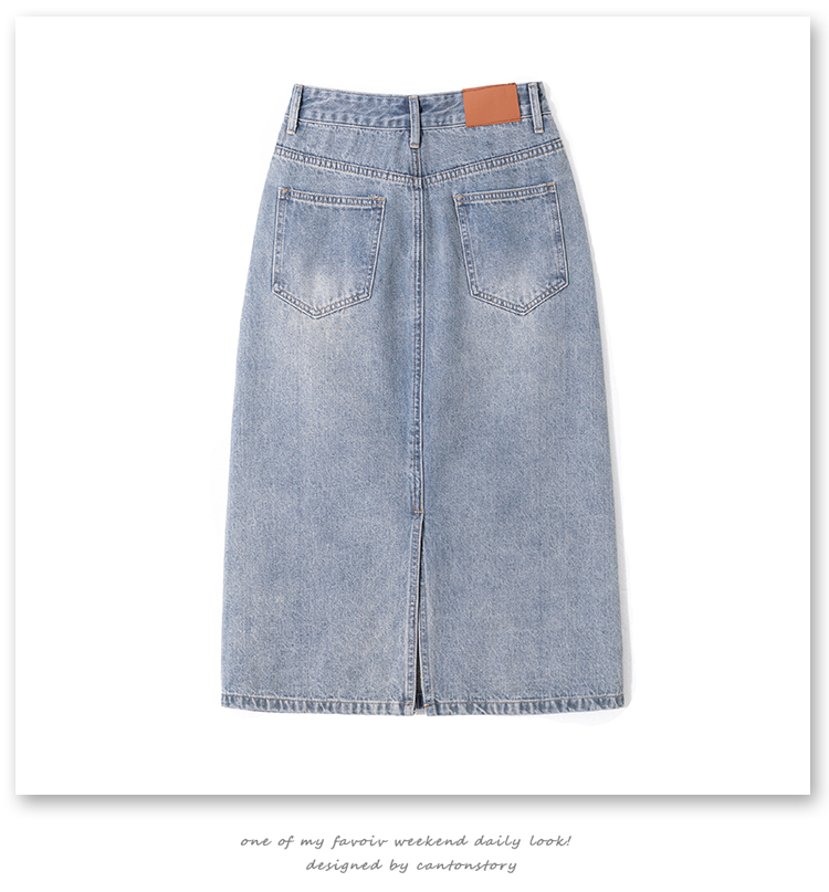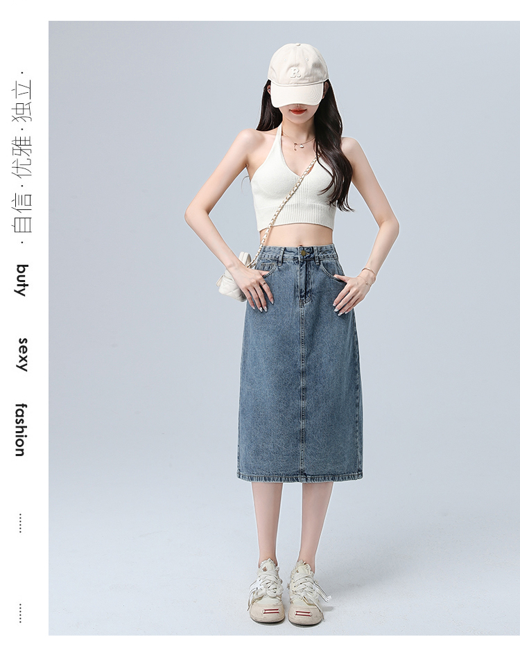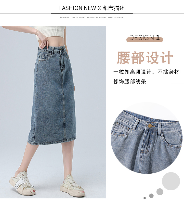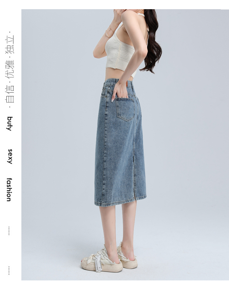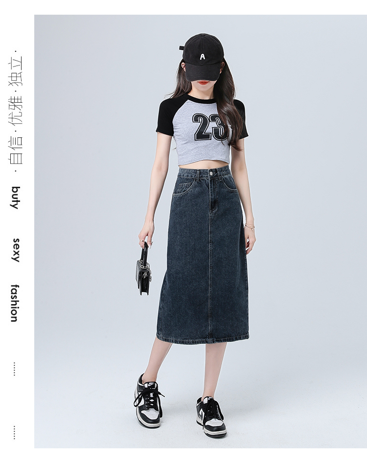 後開叉牛仔半身裙女小個子夏裝搭配顯高中長款a字包臀裙子145xxs