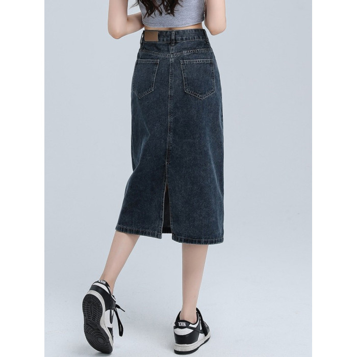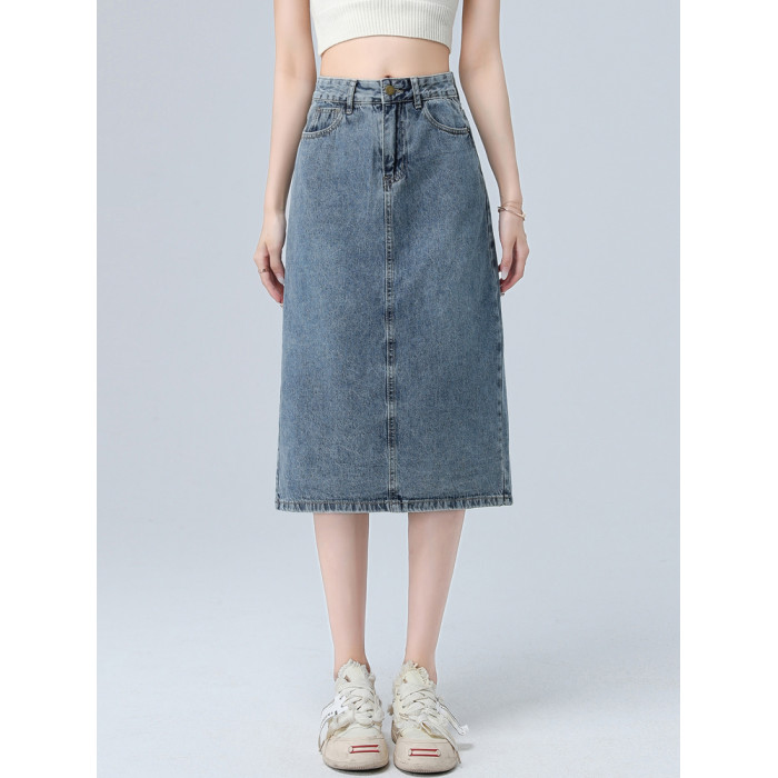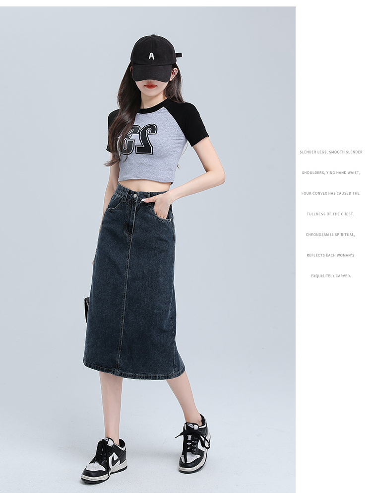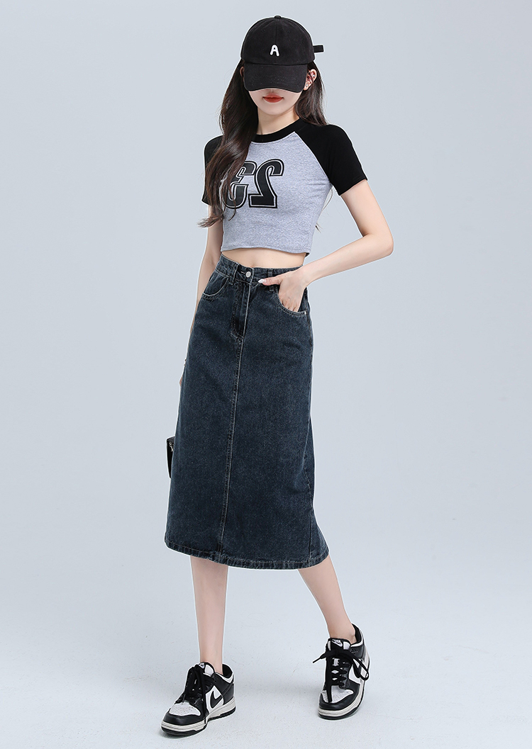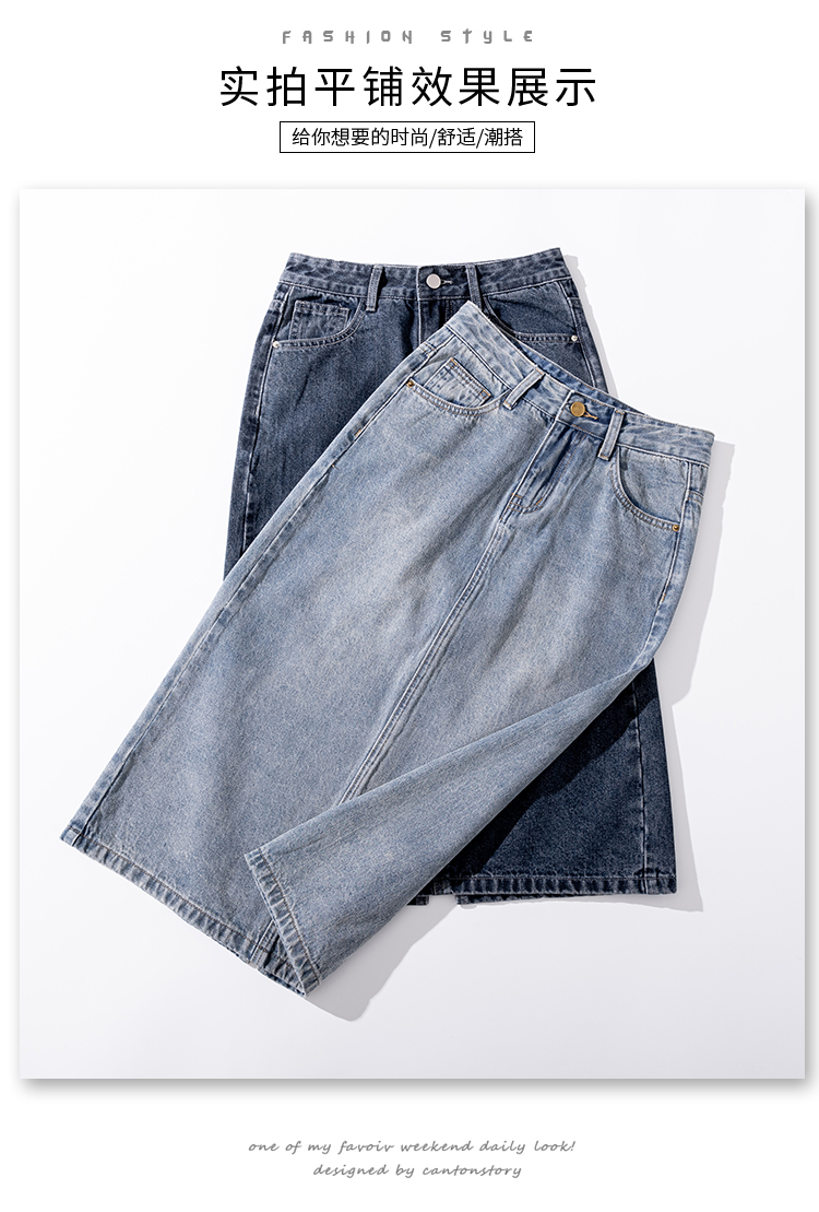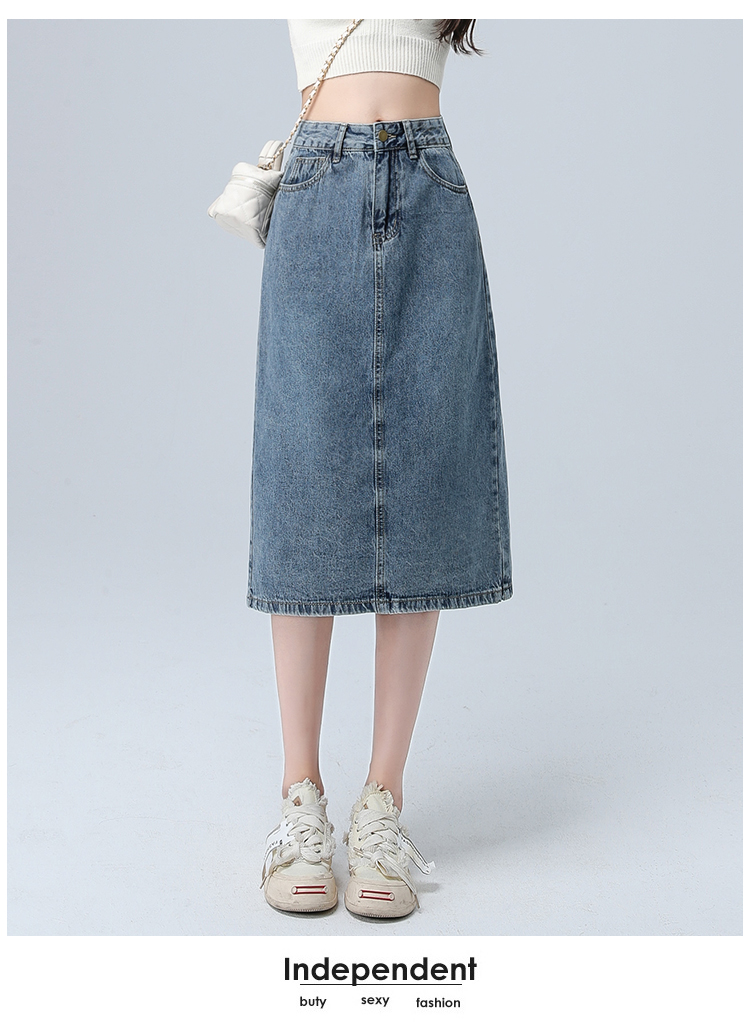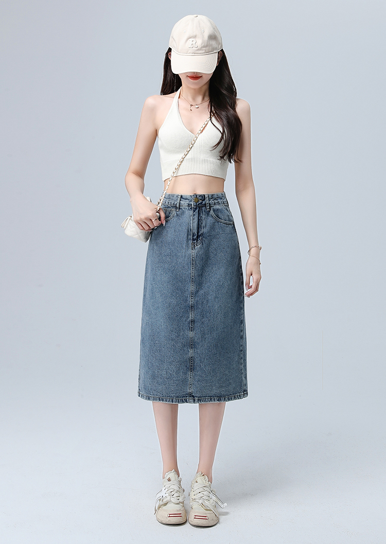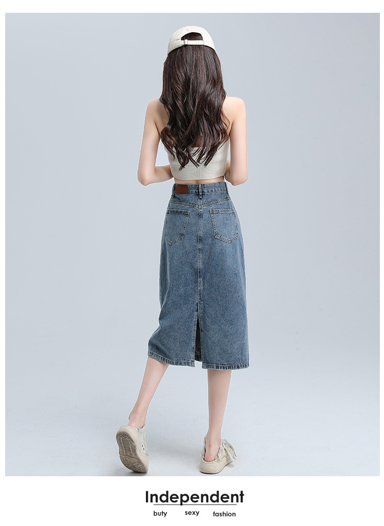 後開叉牛仔半身裙女小個子夏裝搭配顯高中長款a字包臀裙子145xxs
